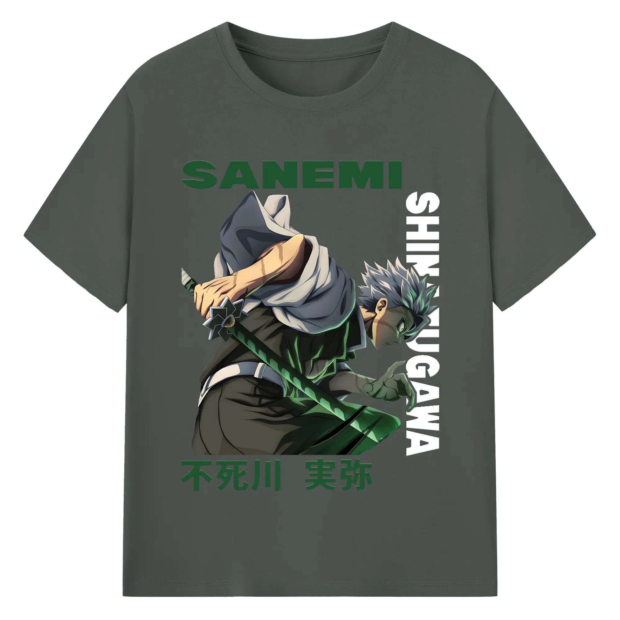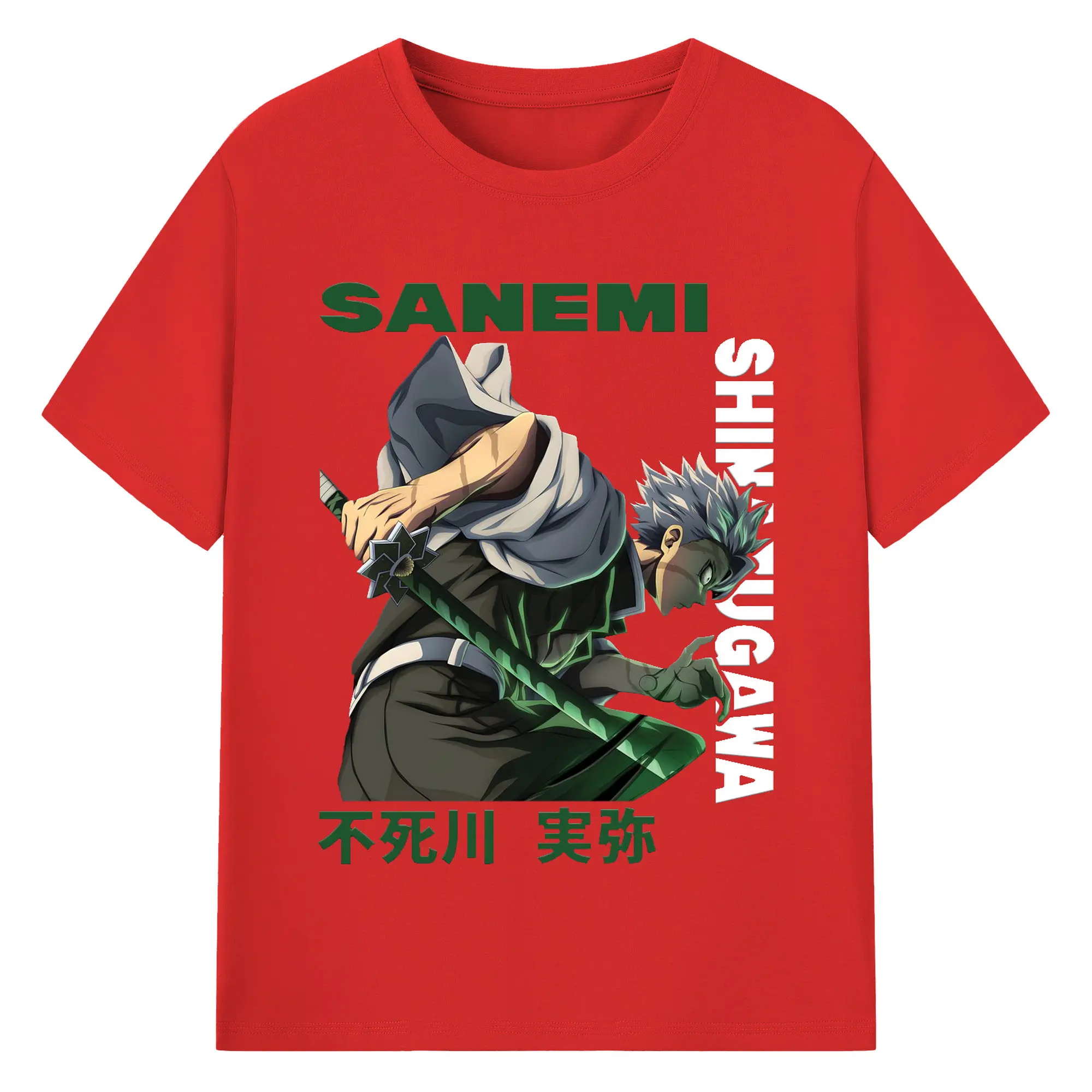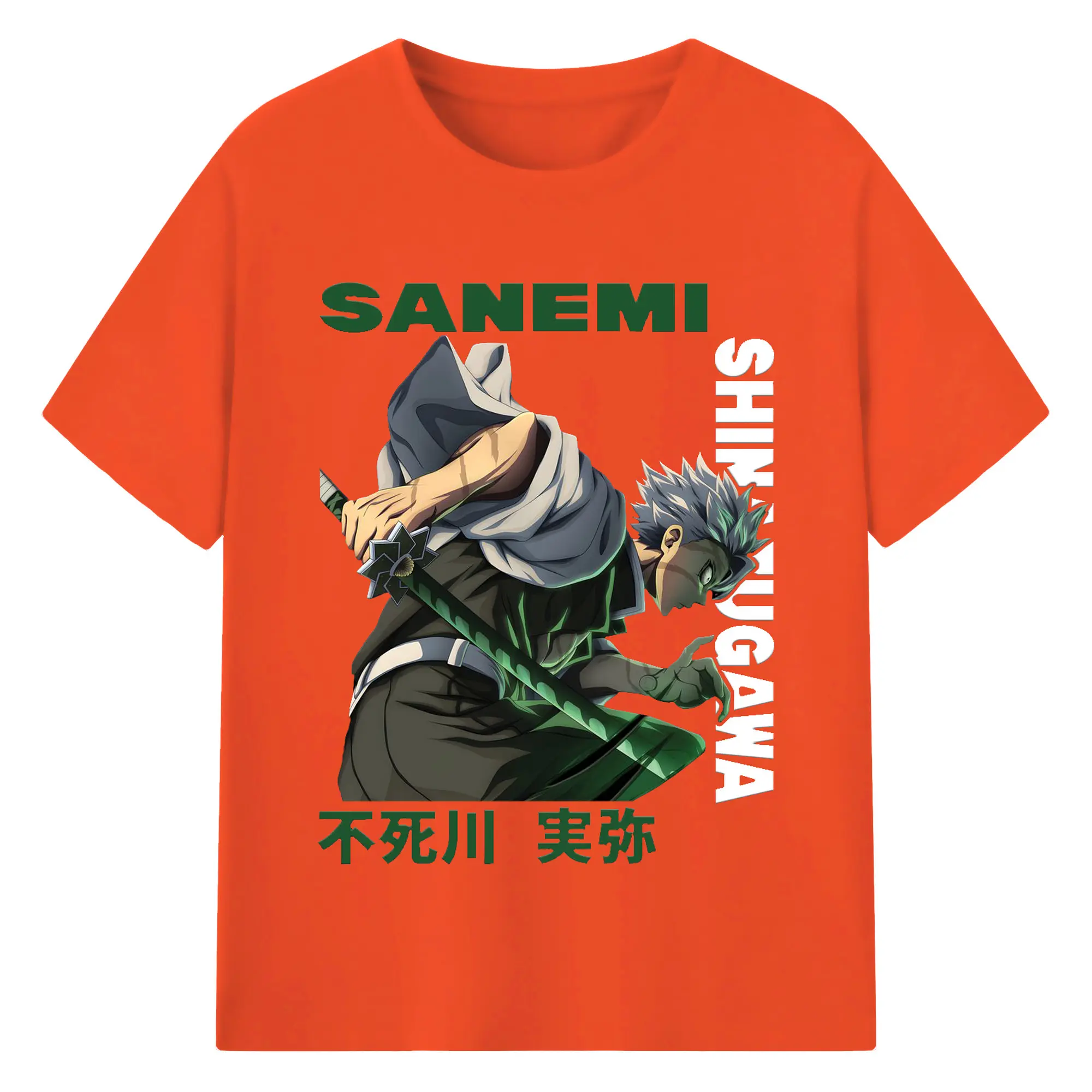 鬼滅の刃 不死川実弥 - 綿100% 半袖Tシャツ ・ フロントプリント ・ 快適 通気性 ・ 日常使い 散歩 スポーツ用