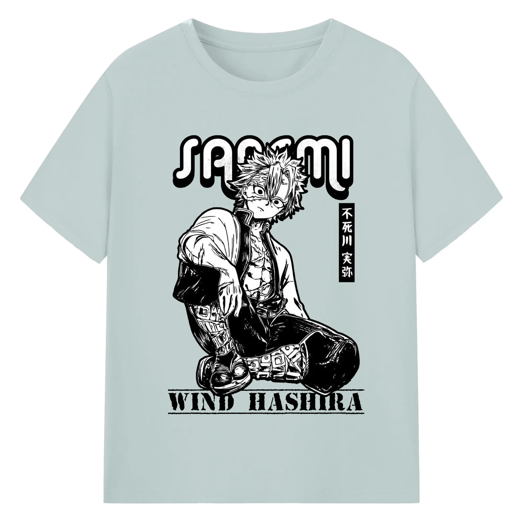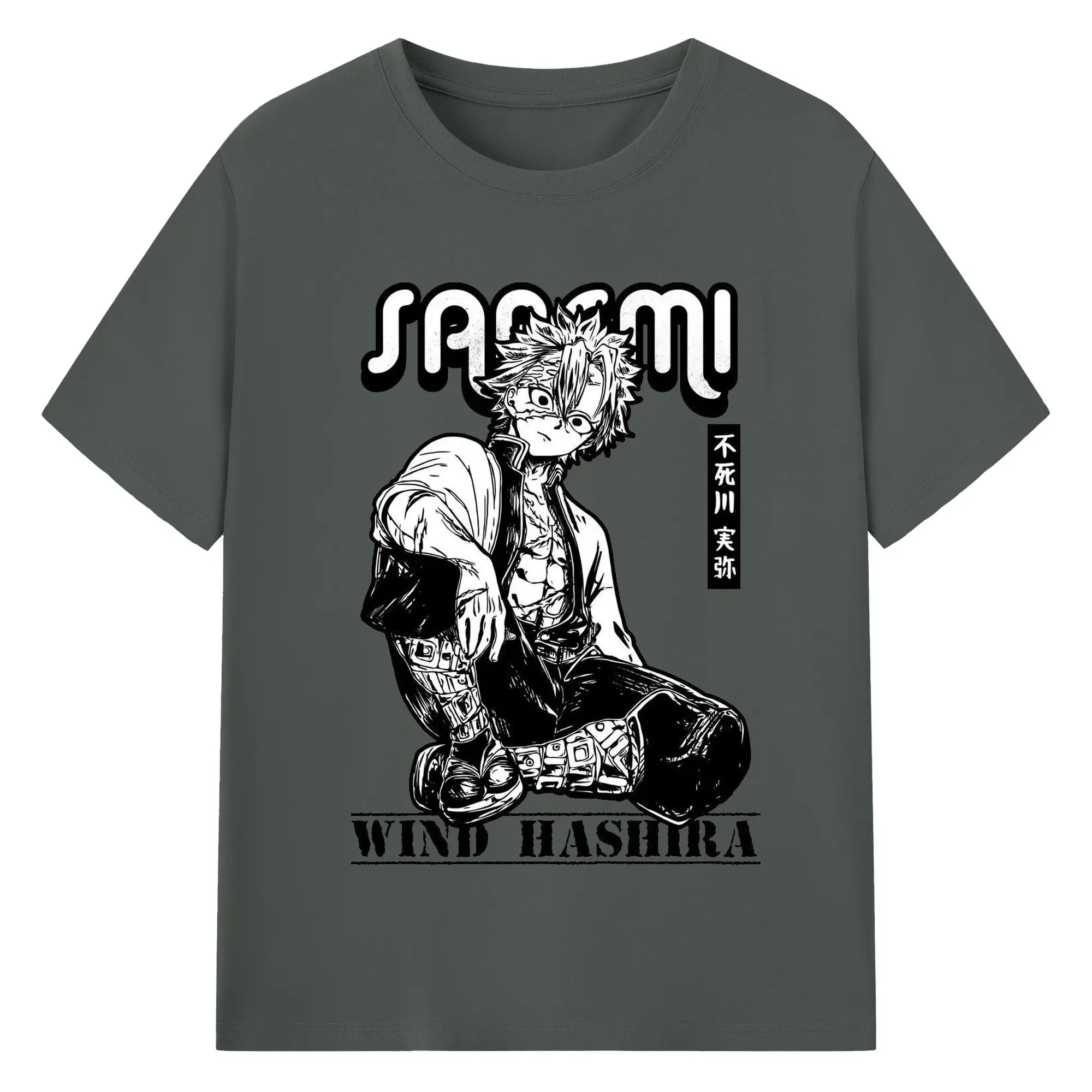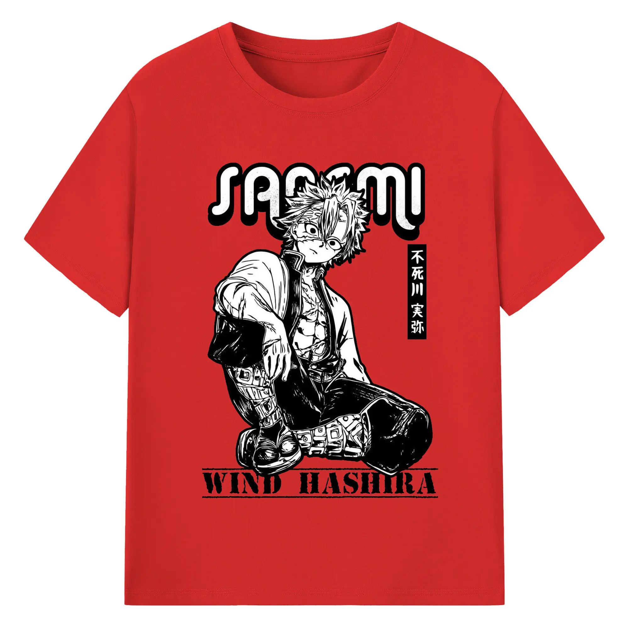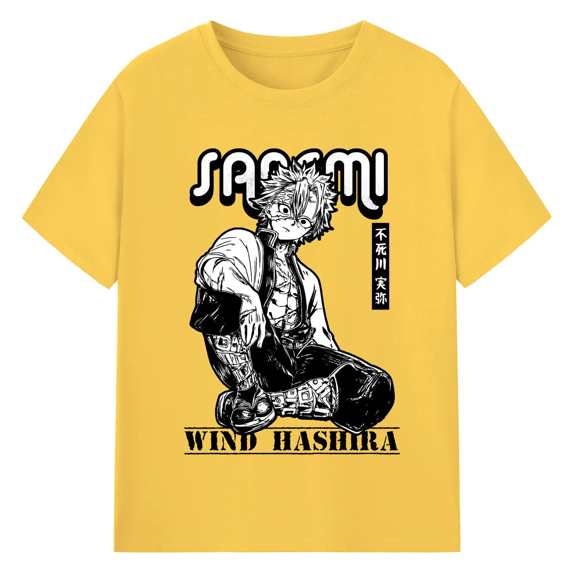 鬼滅の刃 不死川実弥 - 綿100% 半袖Tシャツ ・ フロントプリント ・ 快適 通気性 ・ 日常使い 散歩 スポーツ用