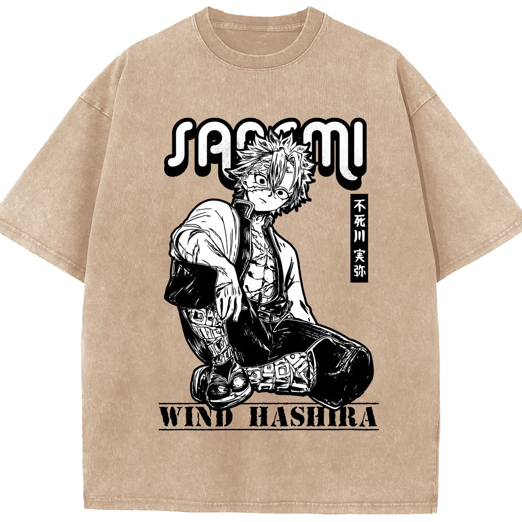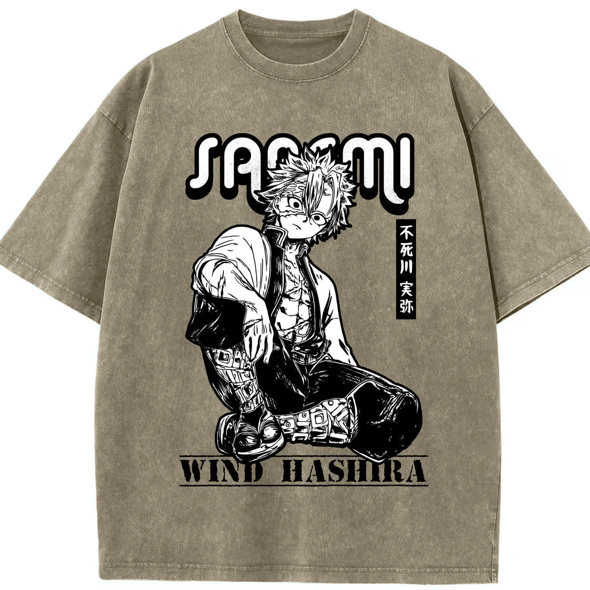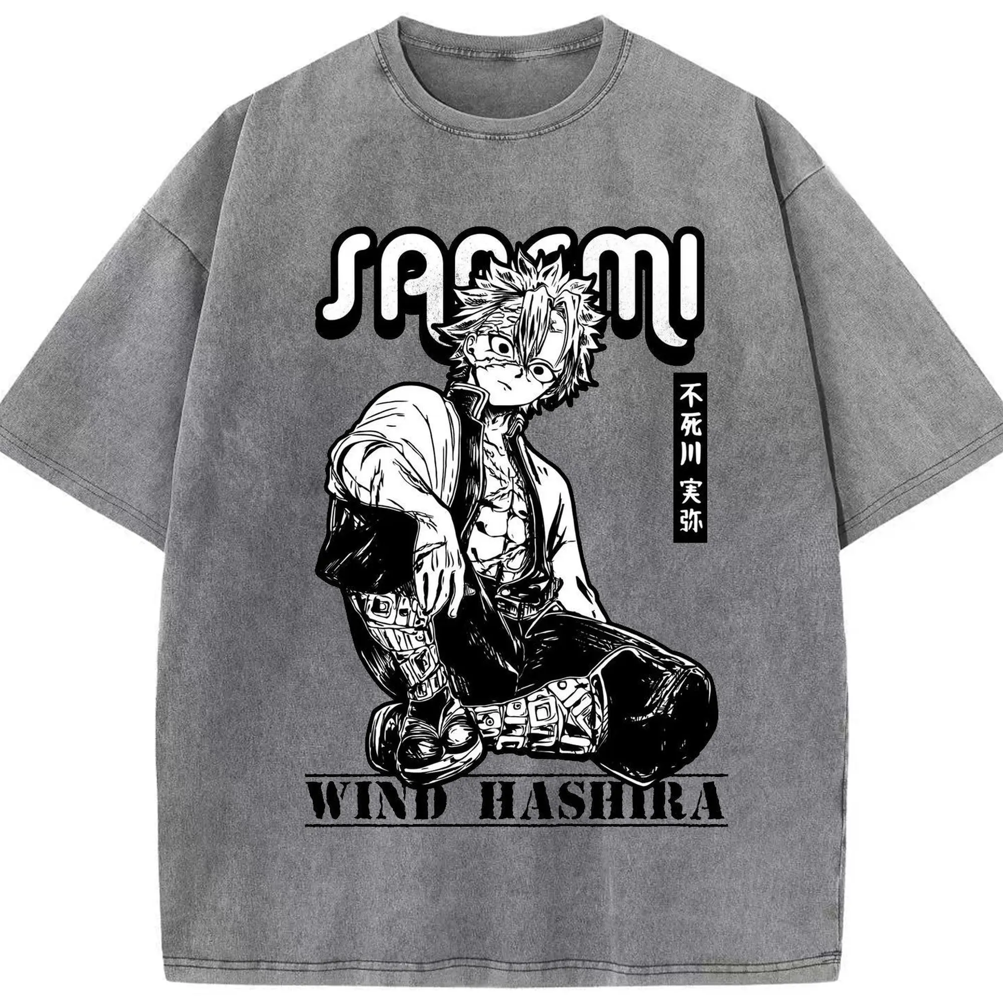 鬼滅の刃 不死川実弥 - 綿100% ヴィンテージ風 半袖Tシャツ ・ フロントプリント ・ 柔らか肌触り ・ 通気性 快適 ・ スポーツ カジュアル 外出用