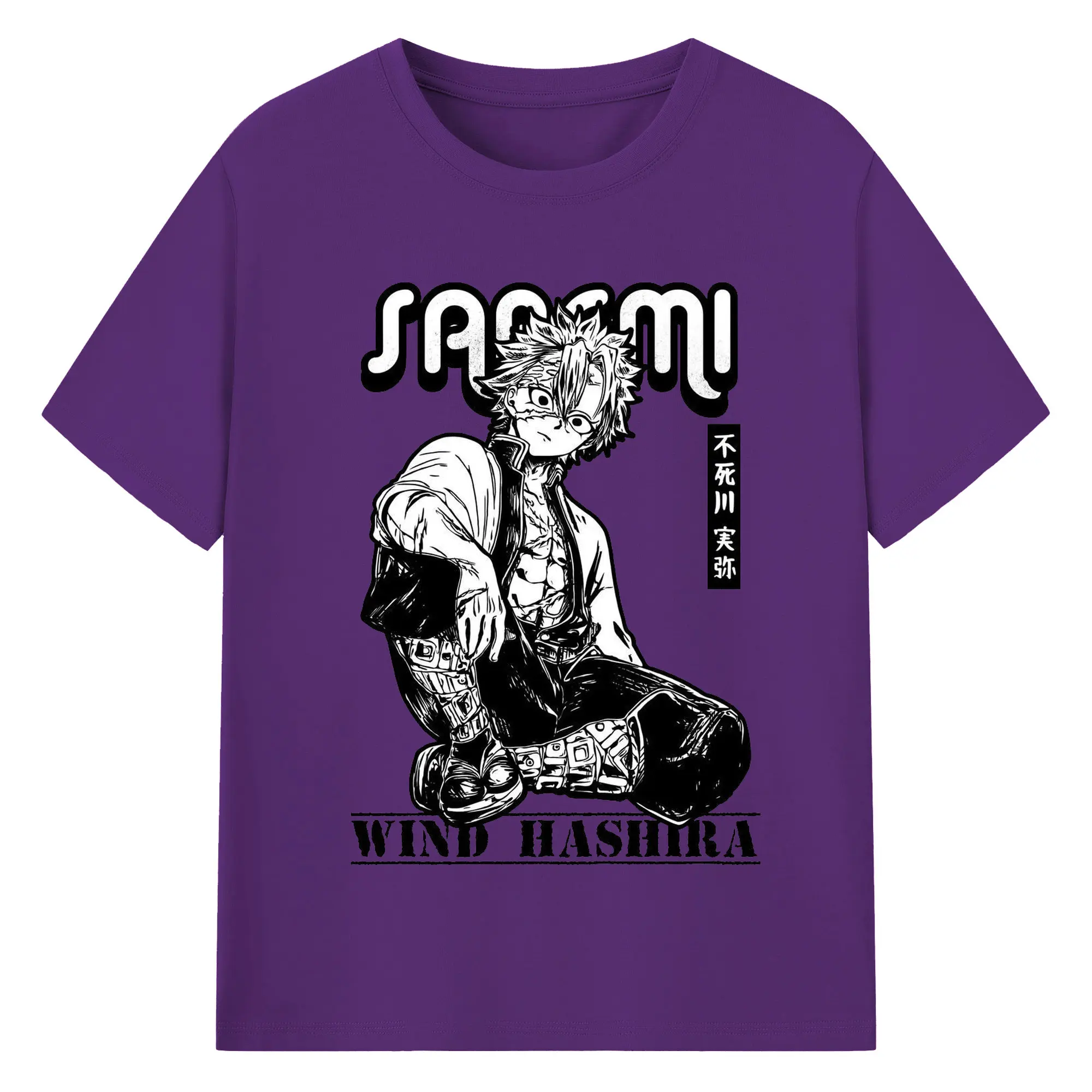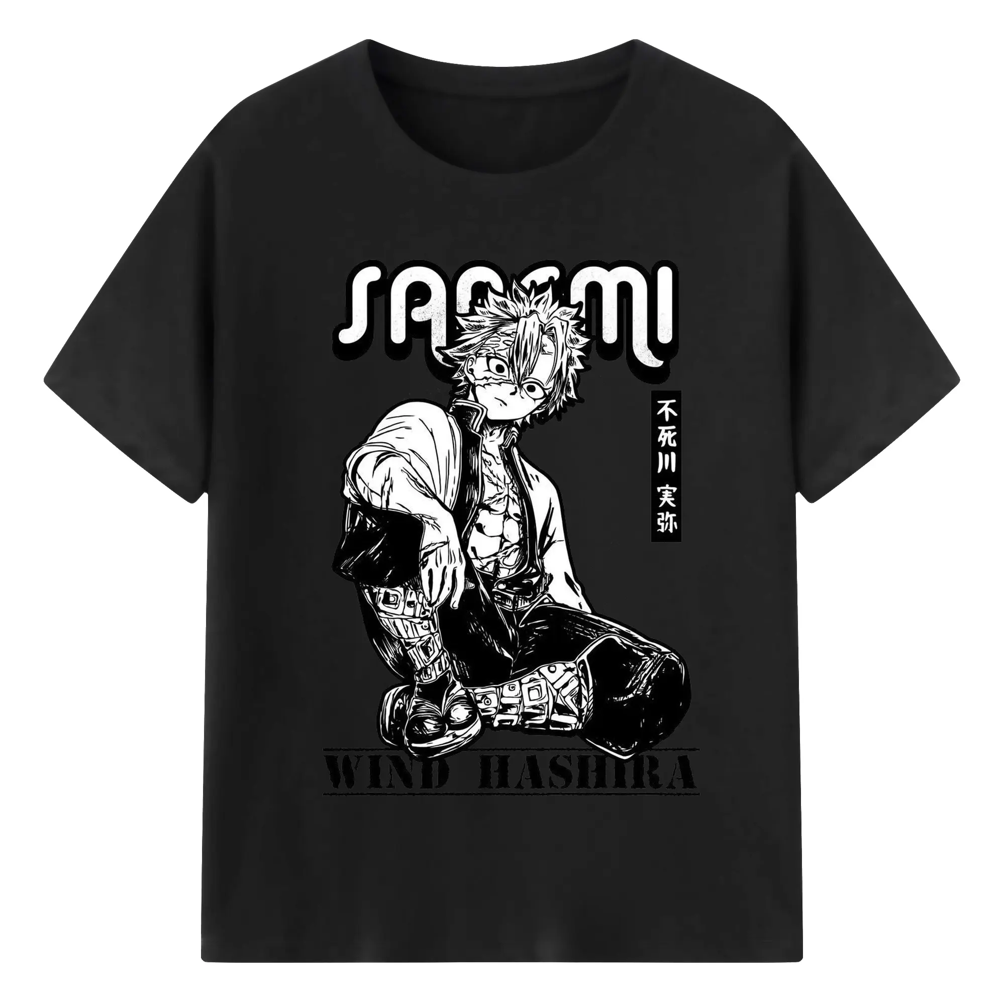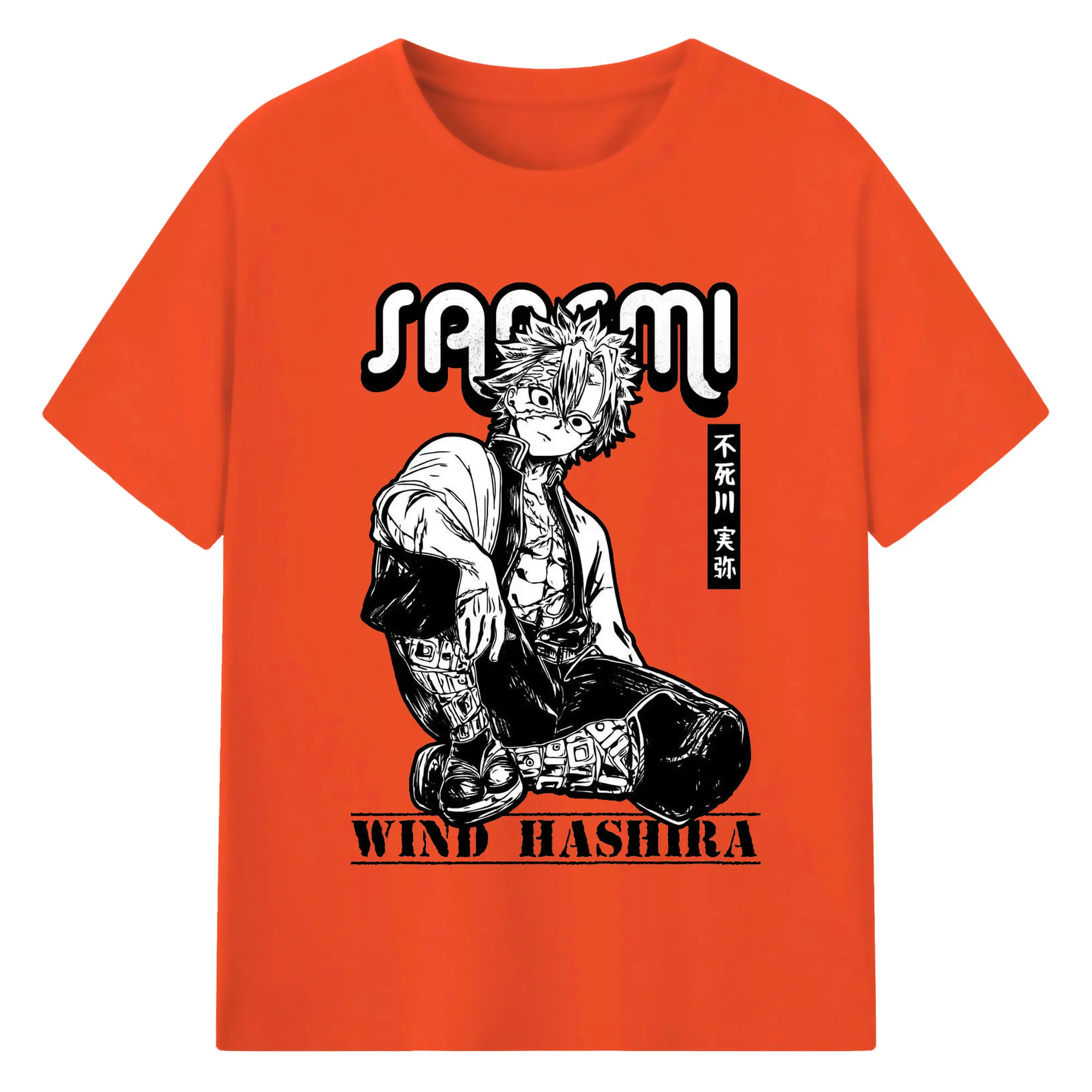 鬼滅の刃 不死川実弥 - 綿100% 半袖Tシャツ ・ フロントプリント ・ 快適 通気性 ・ 日常使い 散歩 スポーツ用