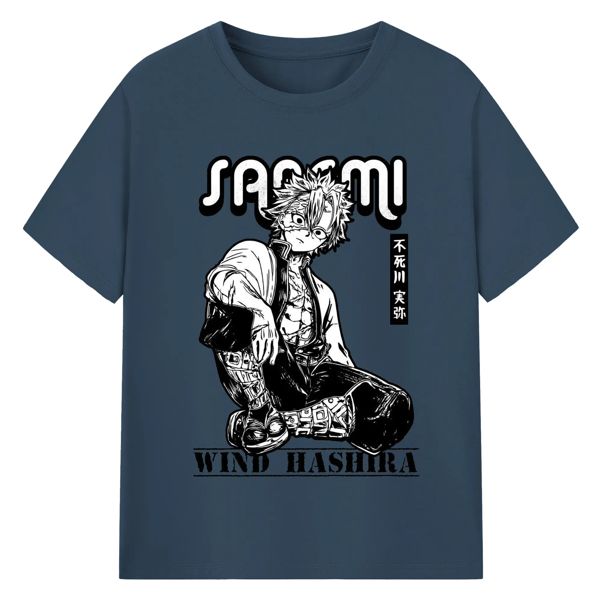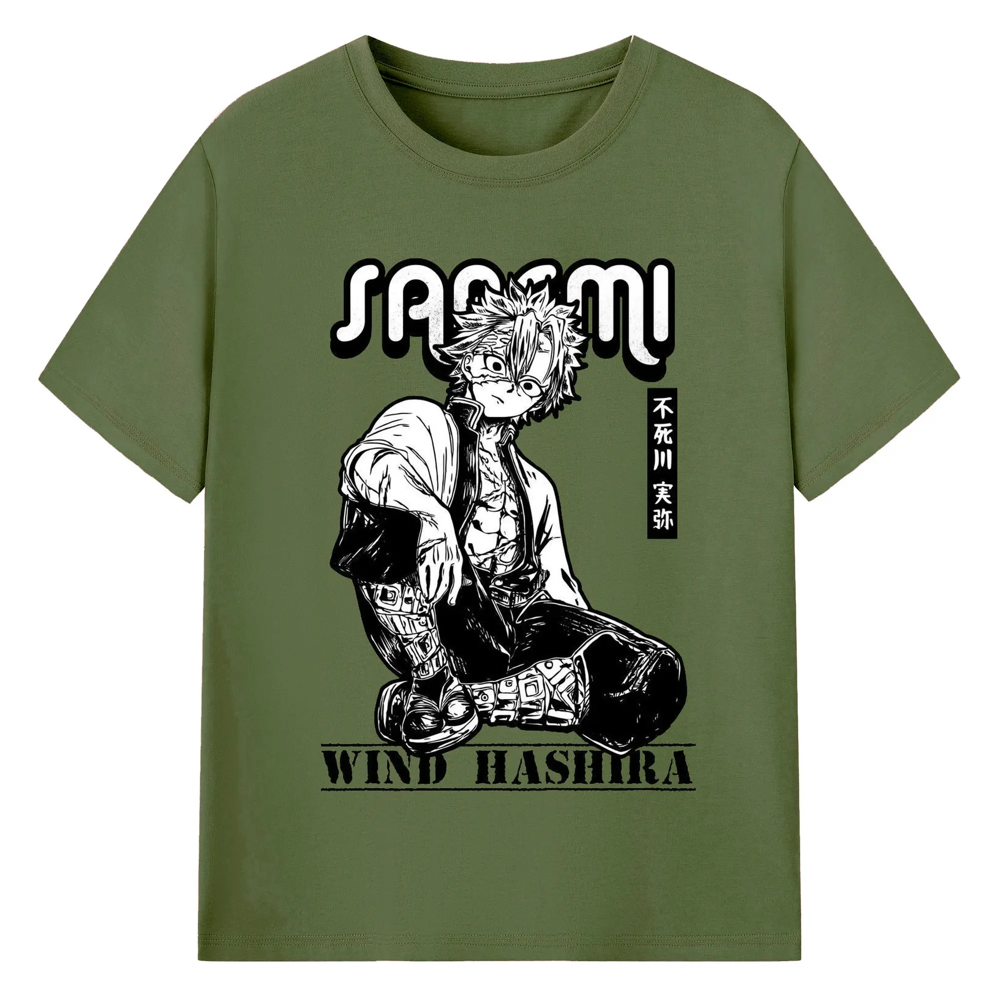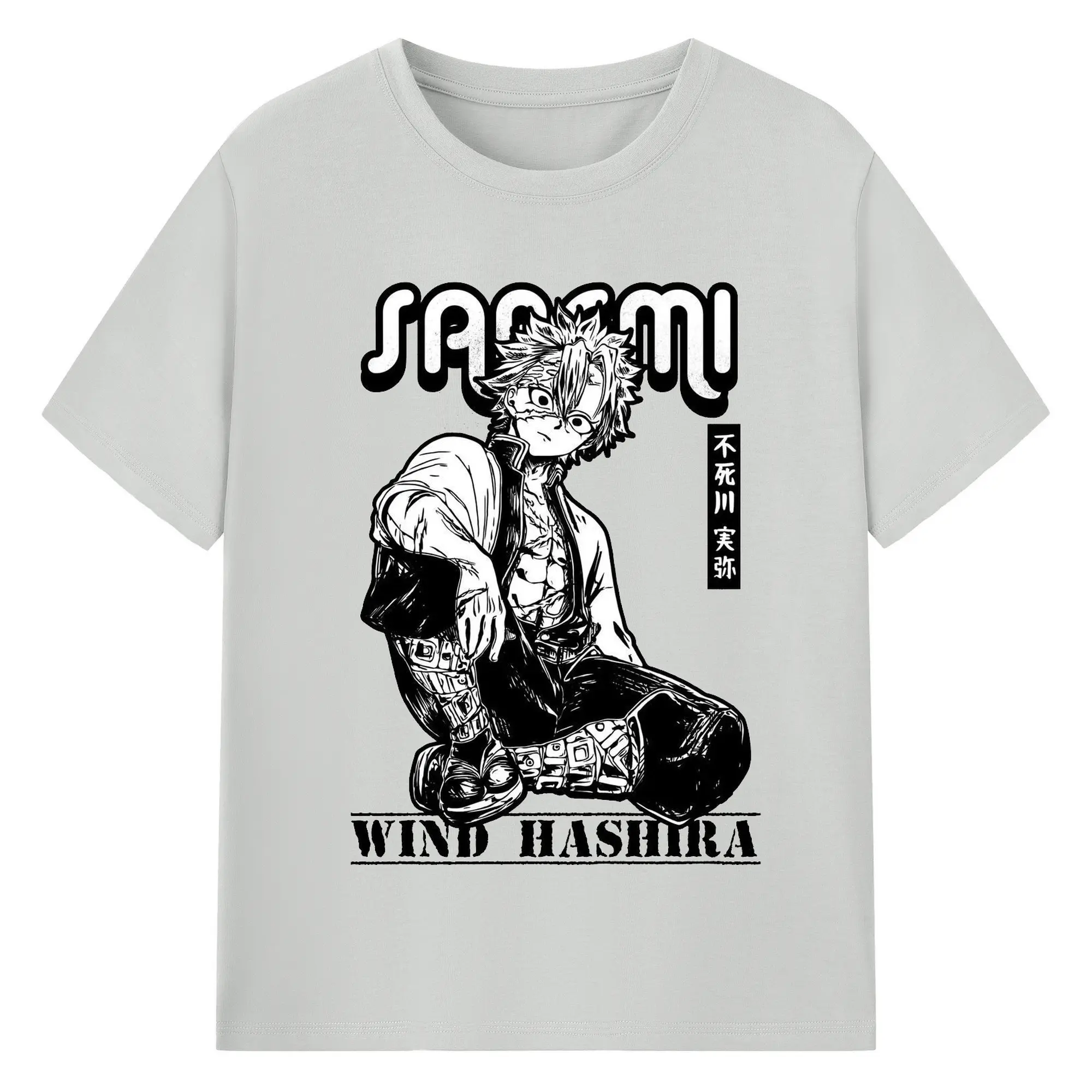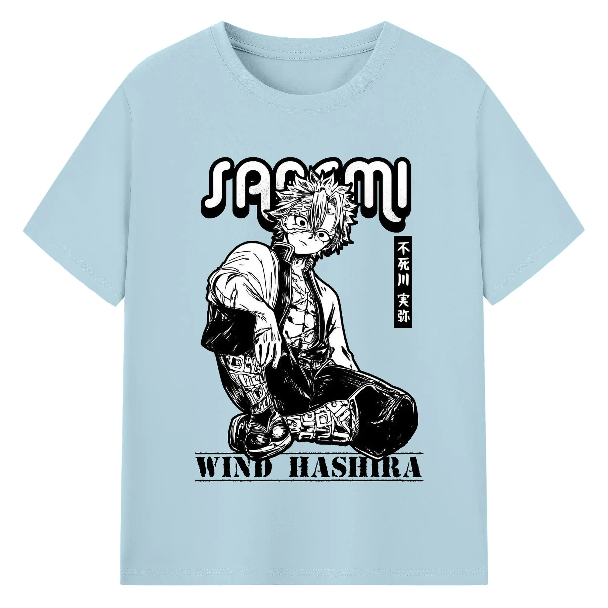 鬼滅の刃 不死川実弥 - 綿100% 半袖Tシャツ ・ フロントプリント ・ 快適 通気性 ・ 日常使い 散歩 スポーツ用