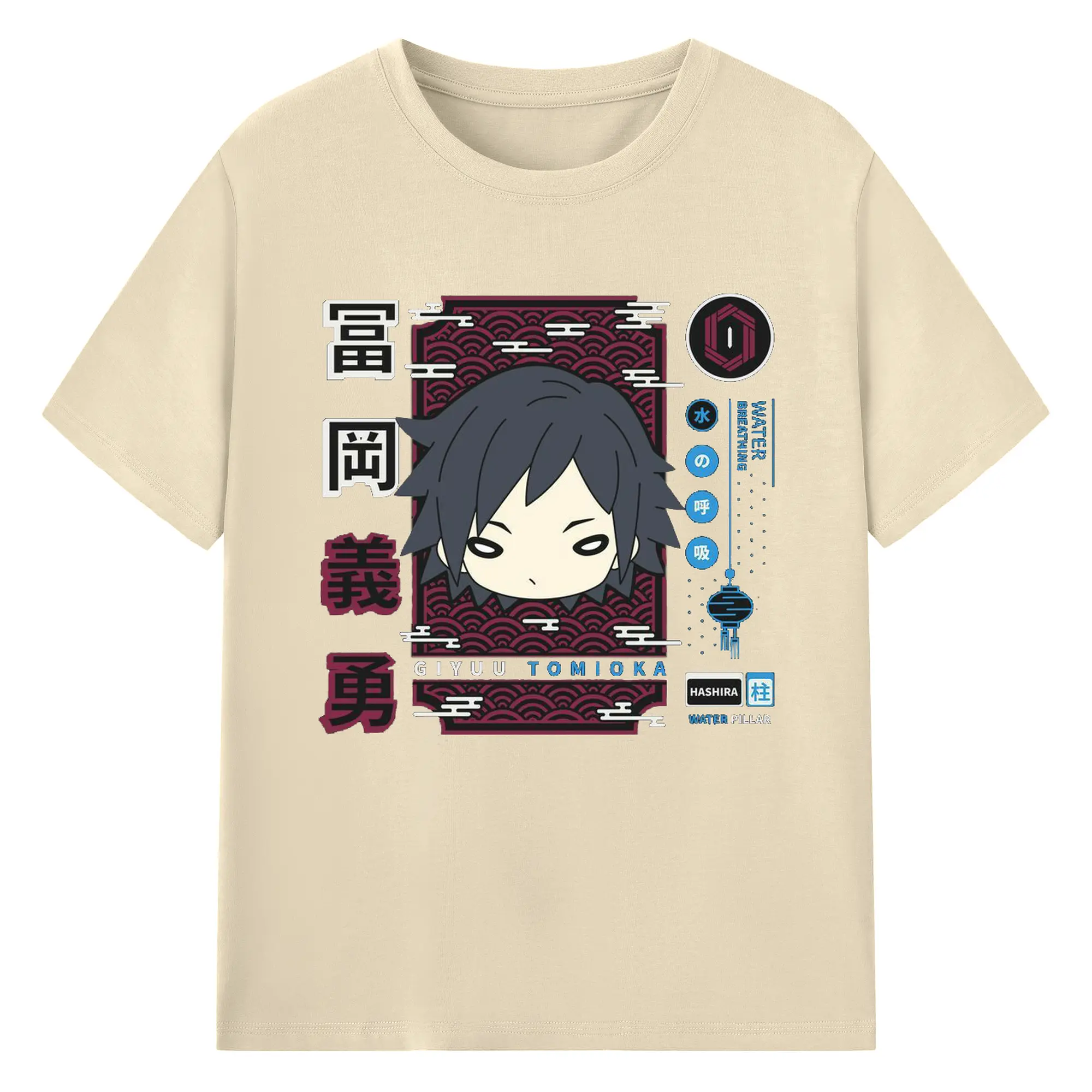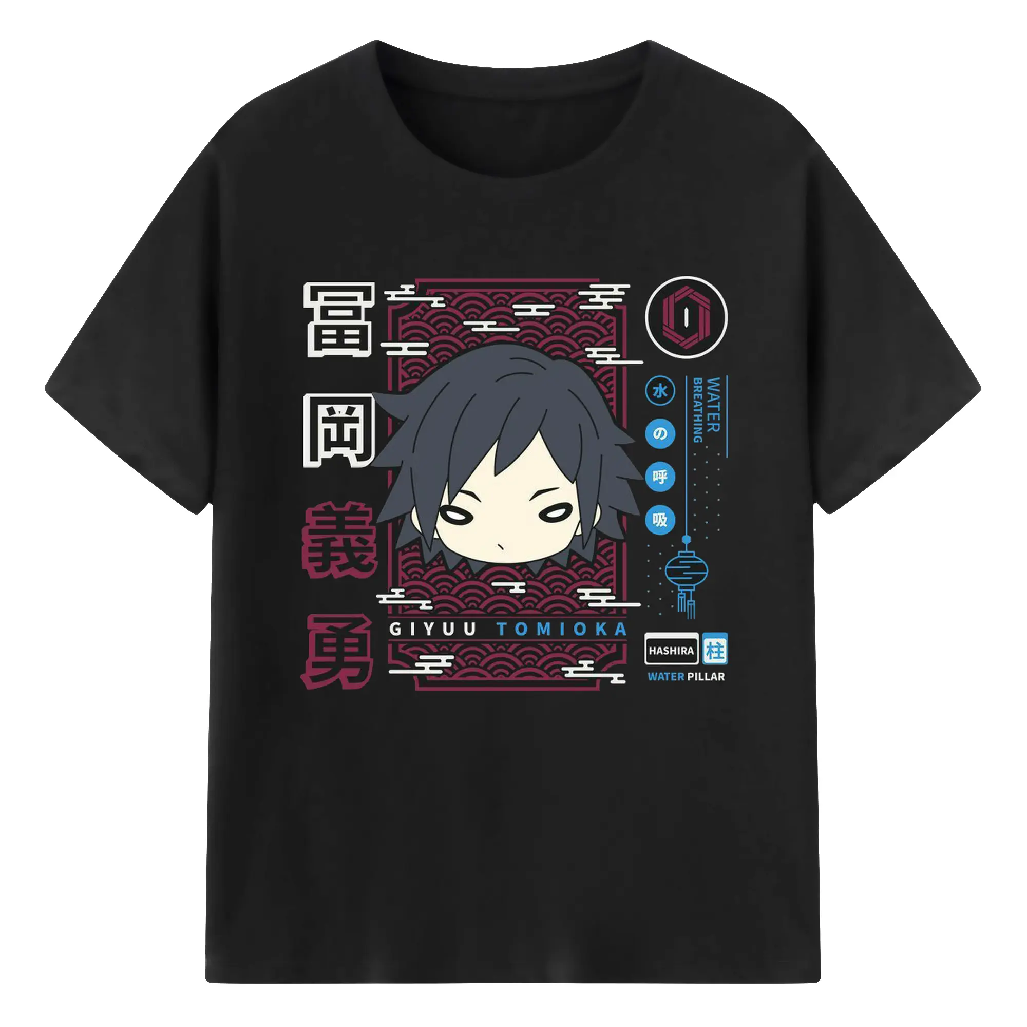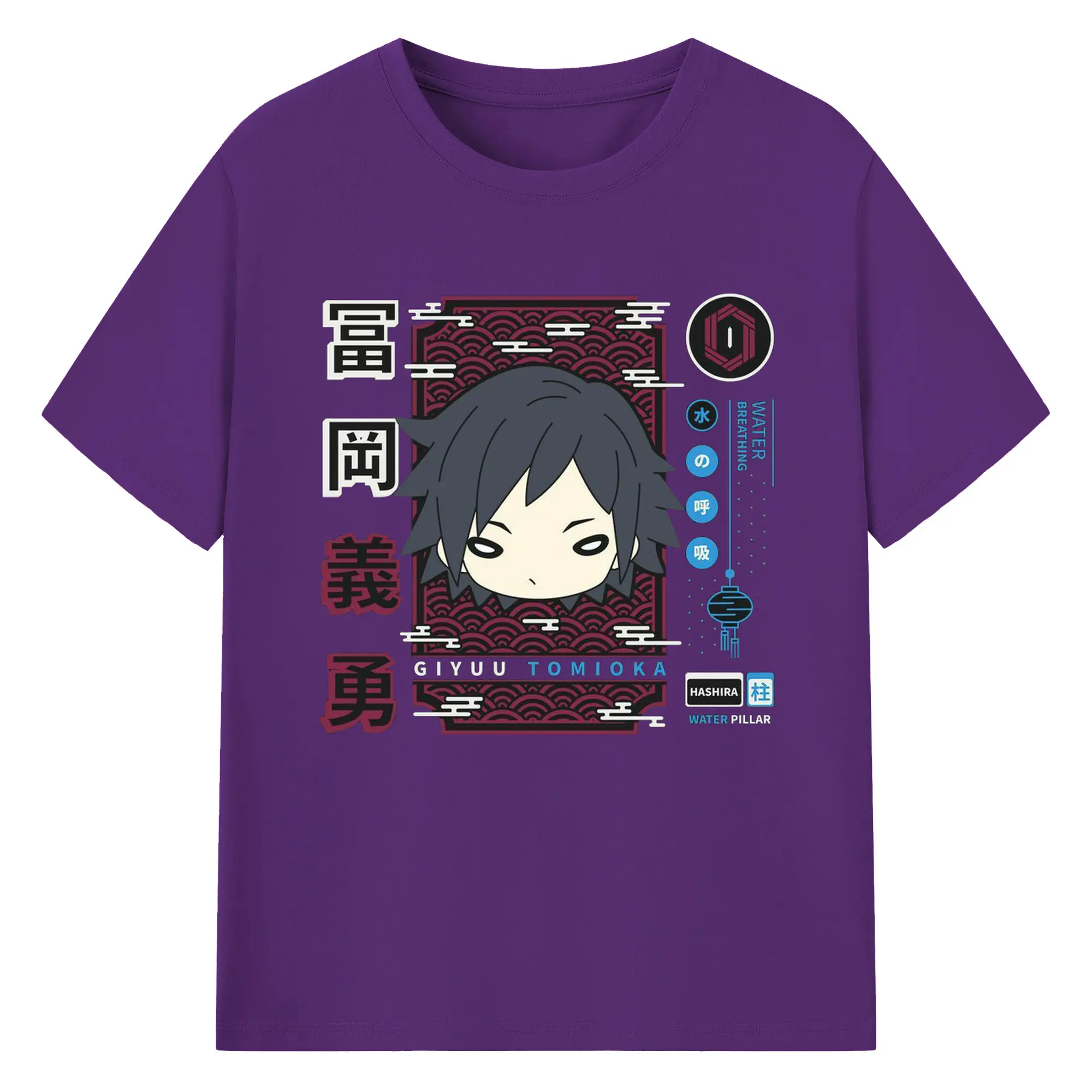 鬼滅の刃 冨岡義勇 - 綿100% 半袖Tシャツ ・ フロントプリント ・ 快適 通気性 ・ 日常使い 散歩 スポーツ用