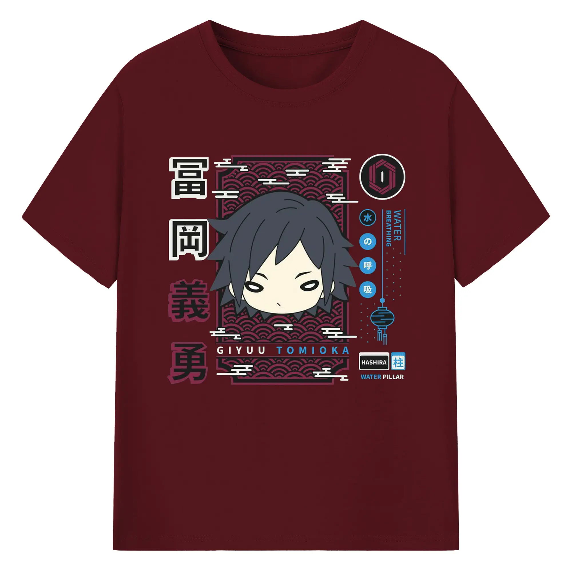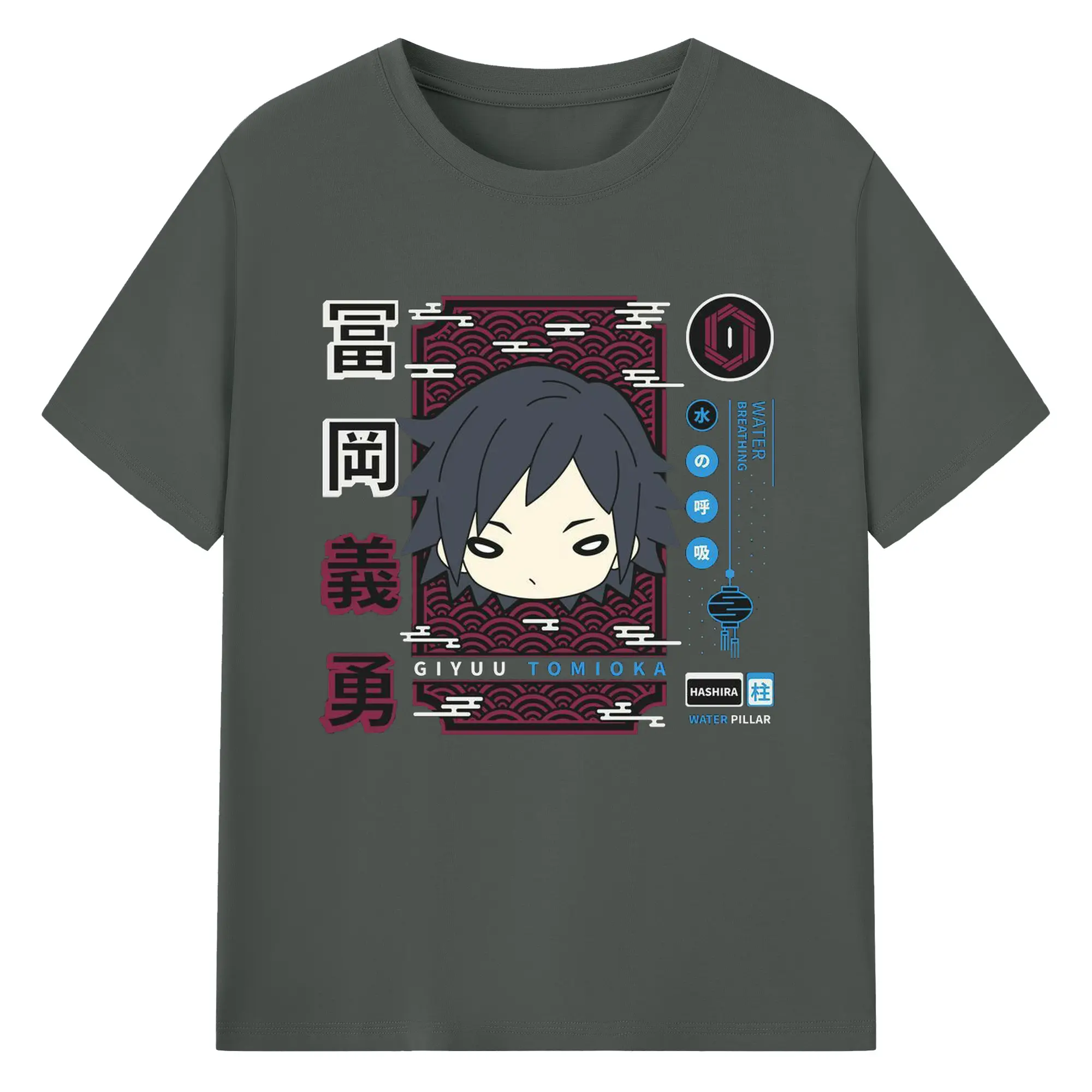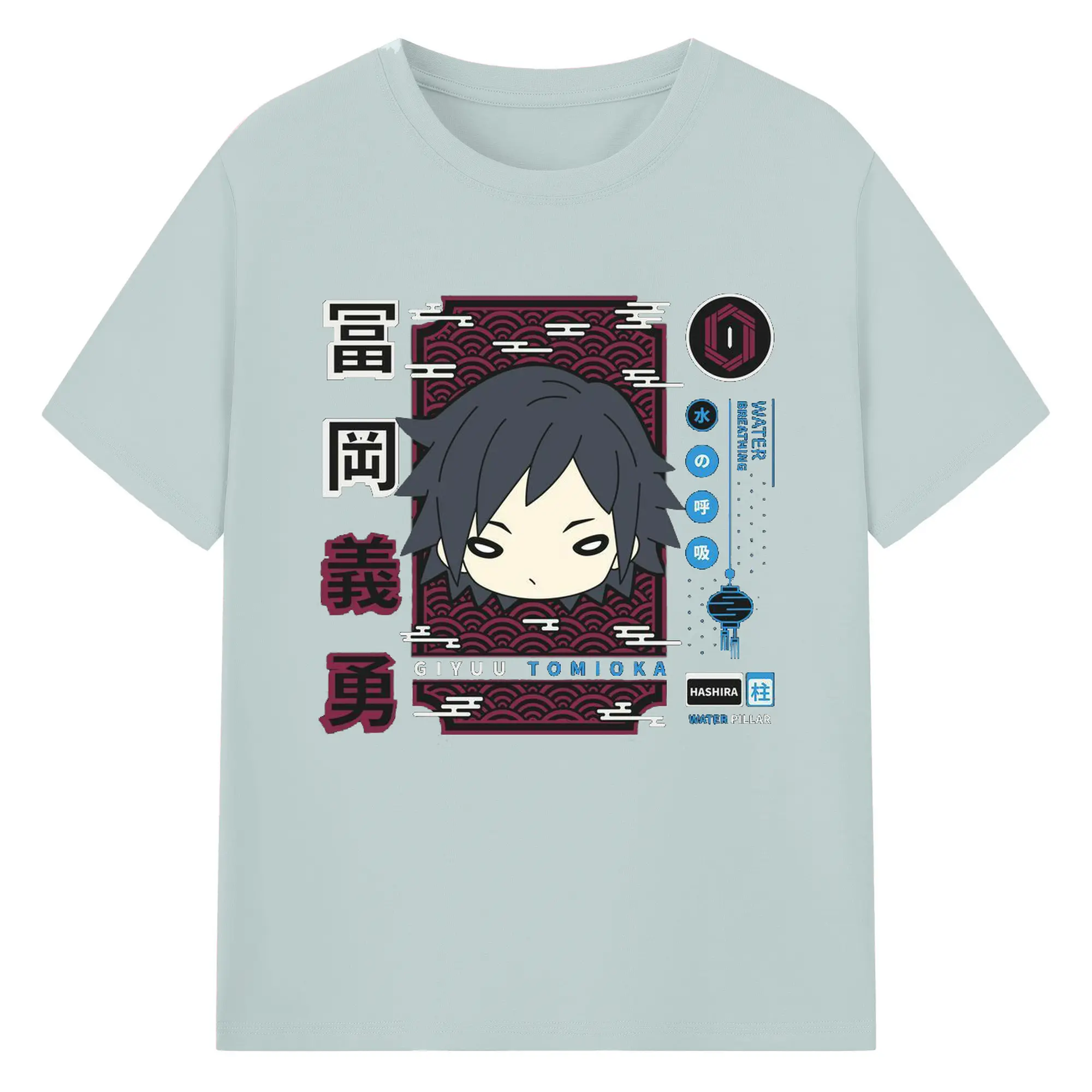 鬼滅の刃 冨岡義勇 - 綿100% 半袖Tシャツ ・ フロントプリント ・ 快適 通気性 ・ 日常使い 散歩 スポーツ用