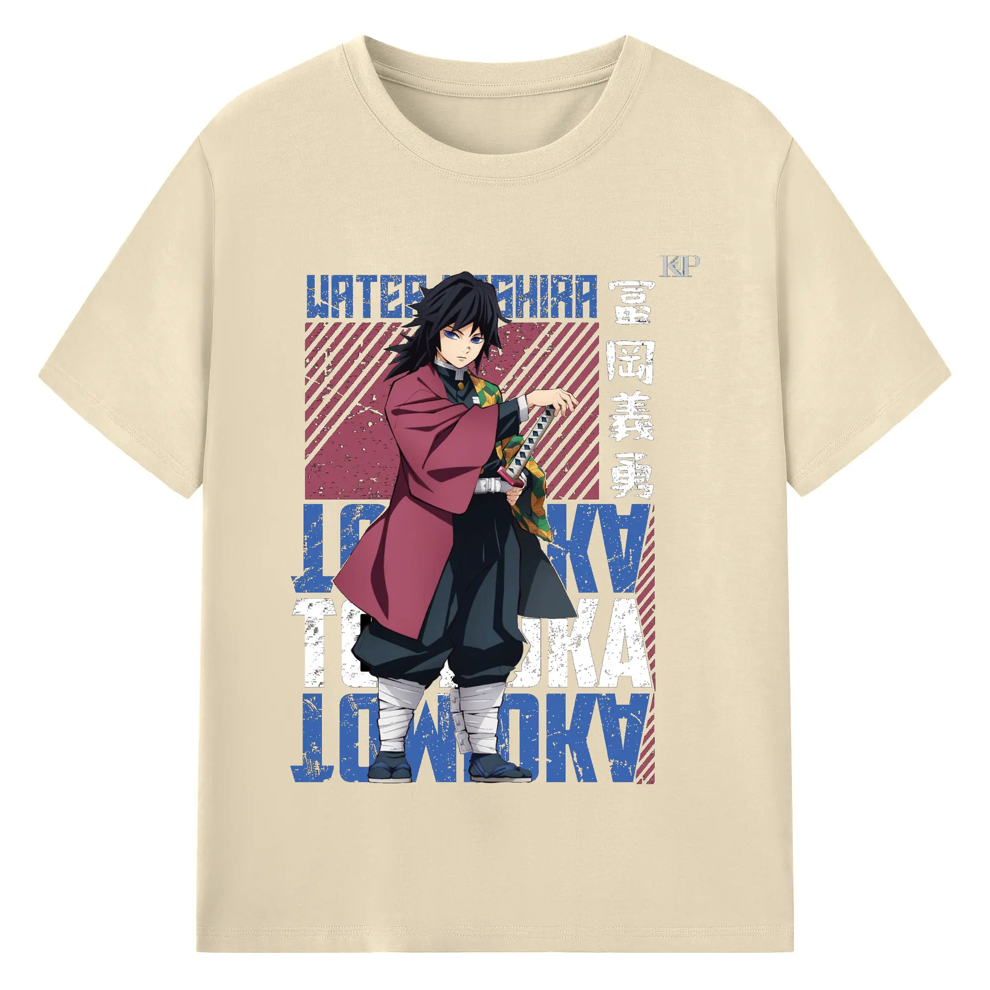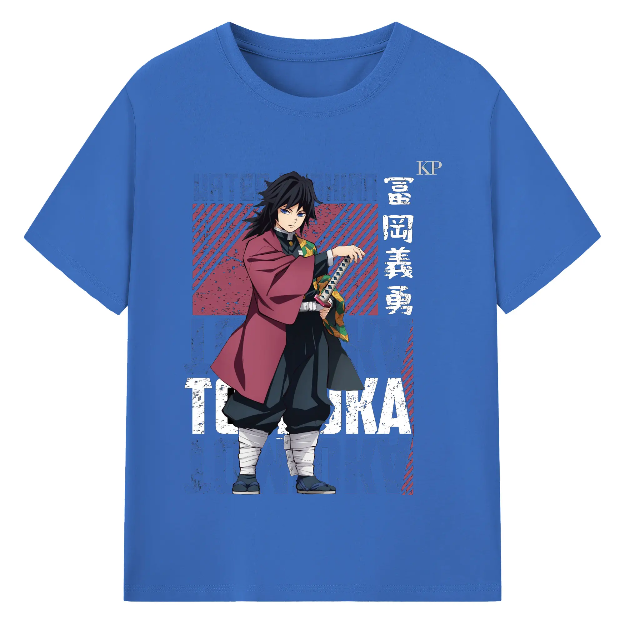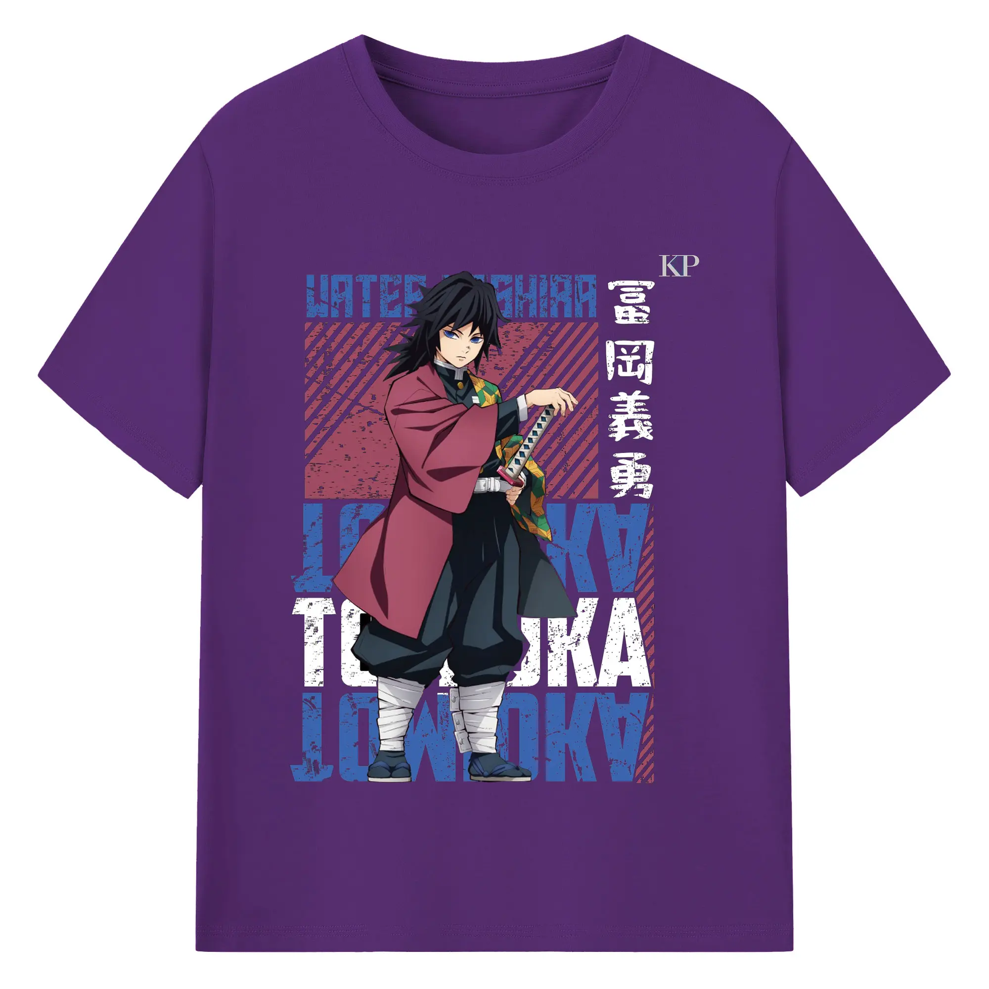 鬼滅の刃 冨岡義勇 - 綿100% 半袖Tシャツ ・ フロントプリント ・ 快適 通気性 ・ 日常使い 散歩 スポーツ用