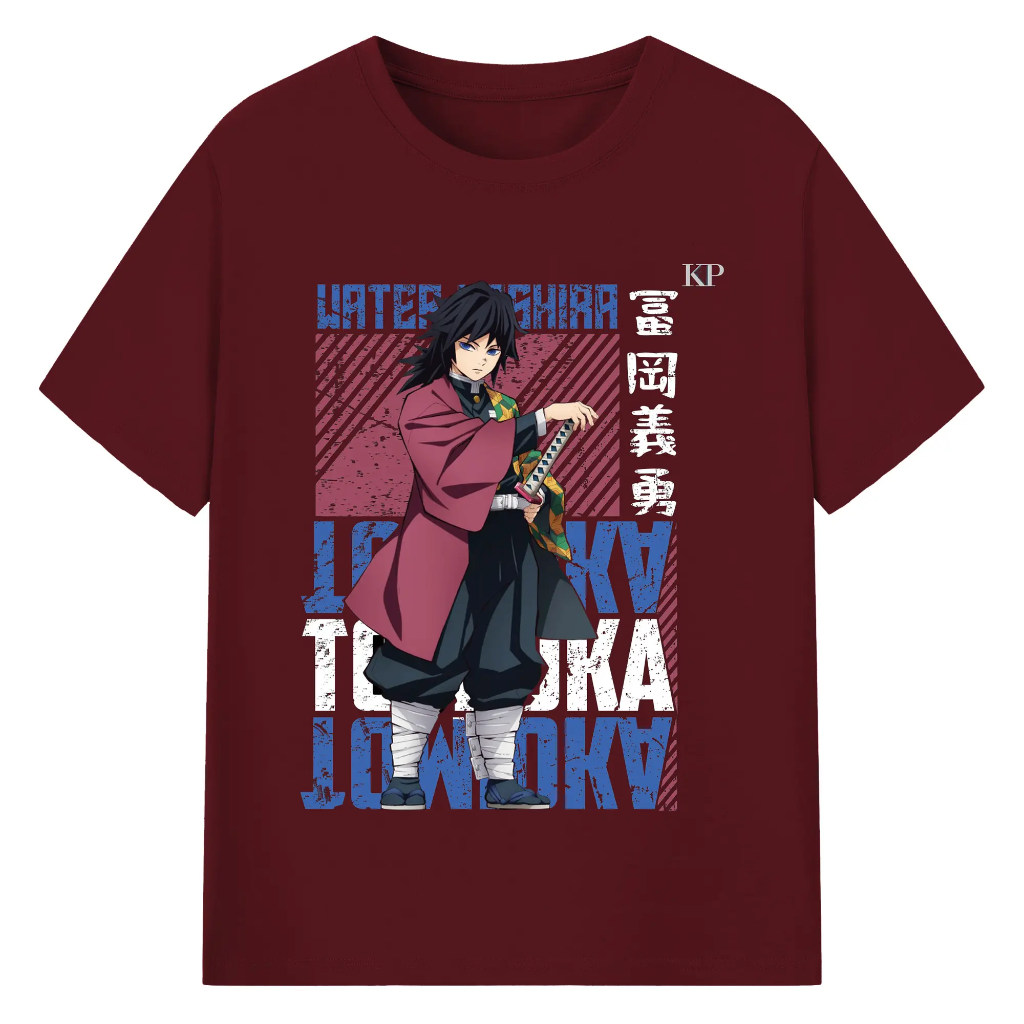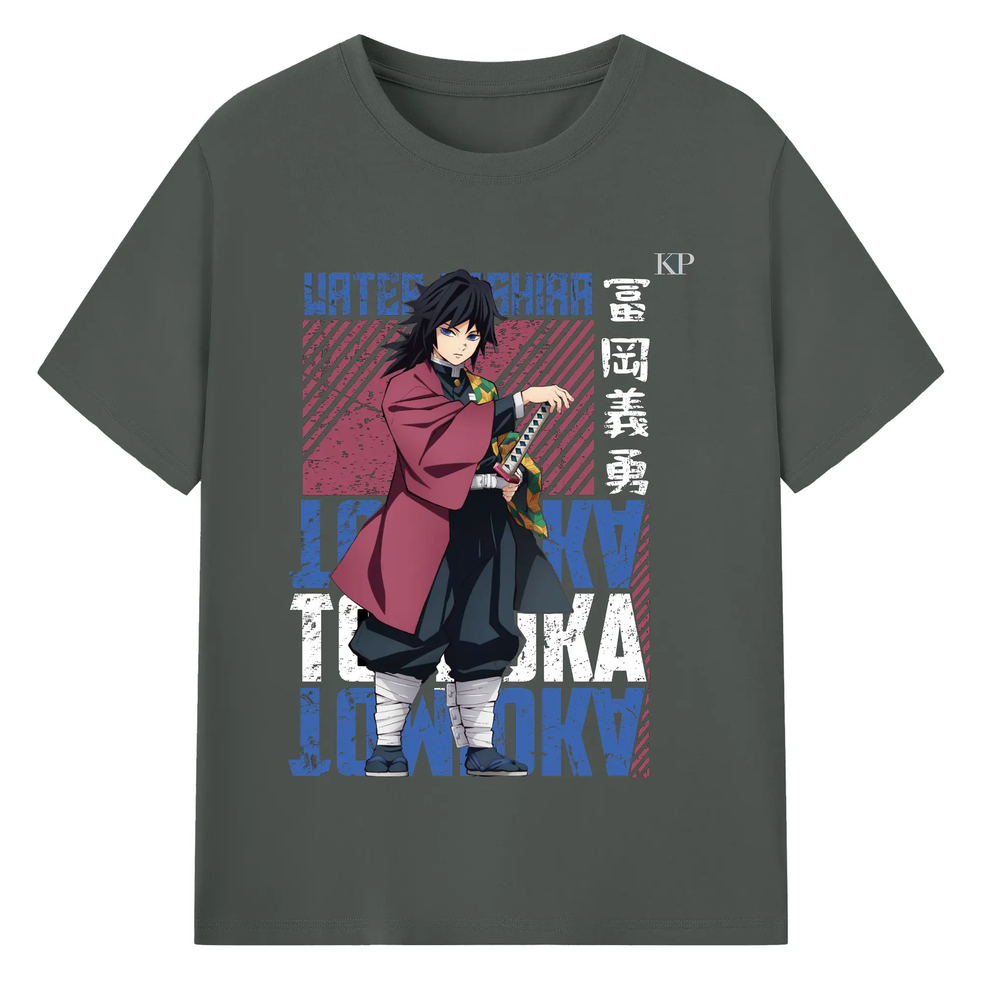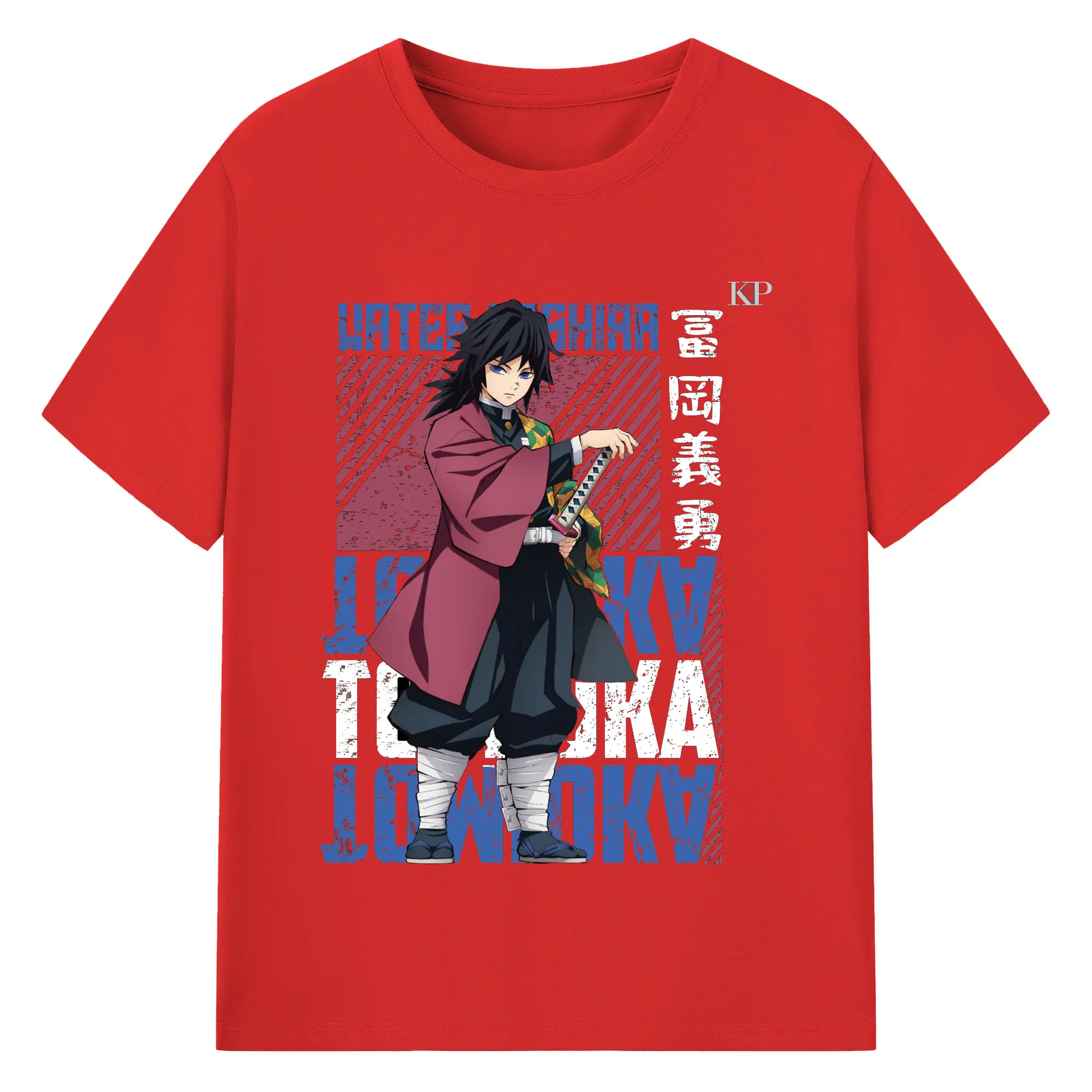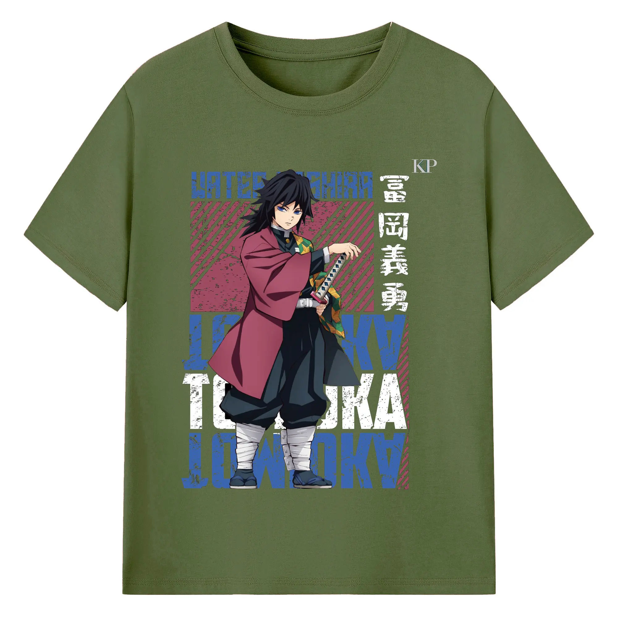 鬼滅の刃 冨岡義勇 - 綿100% 半袖Tシャツ ・ フロントプリント ・ 快適 通気性 ・ 日常使い 散歩 スポーツ用