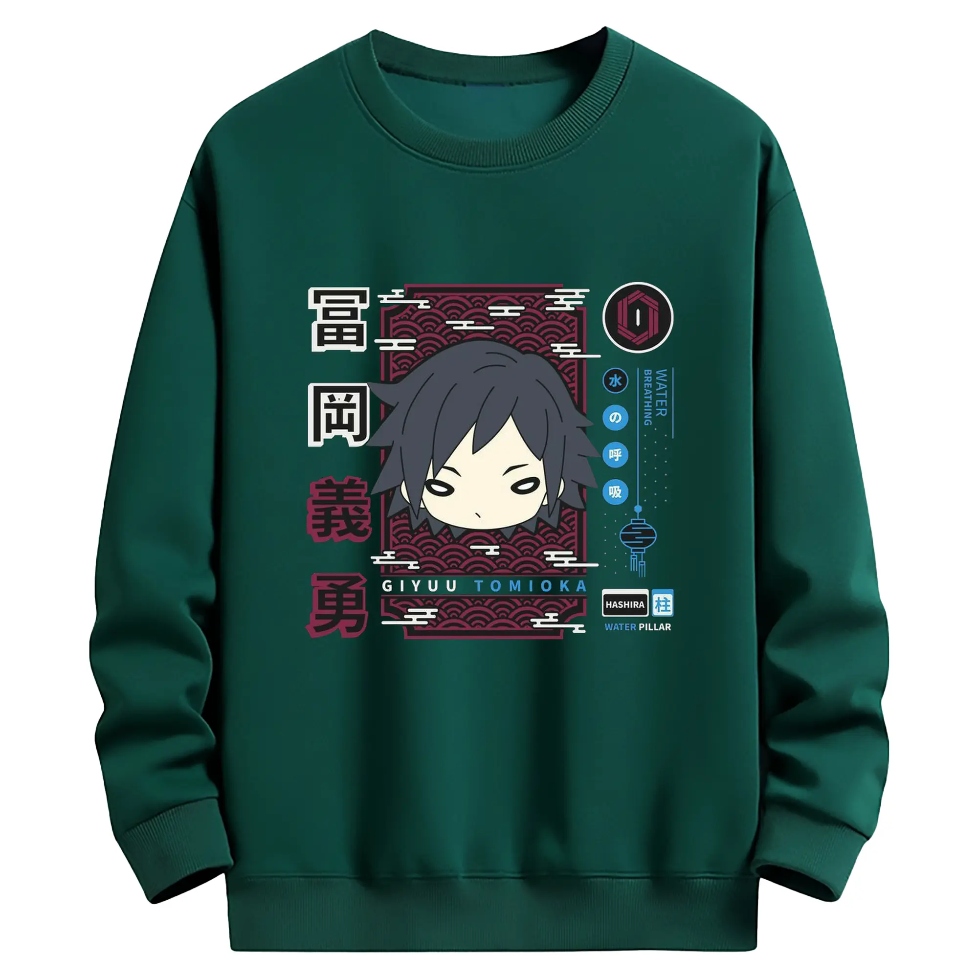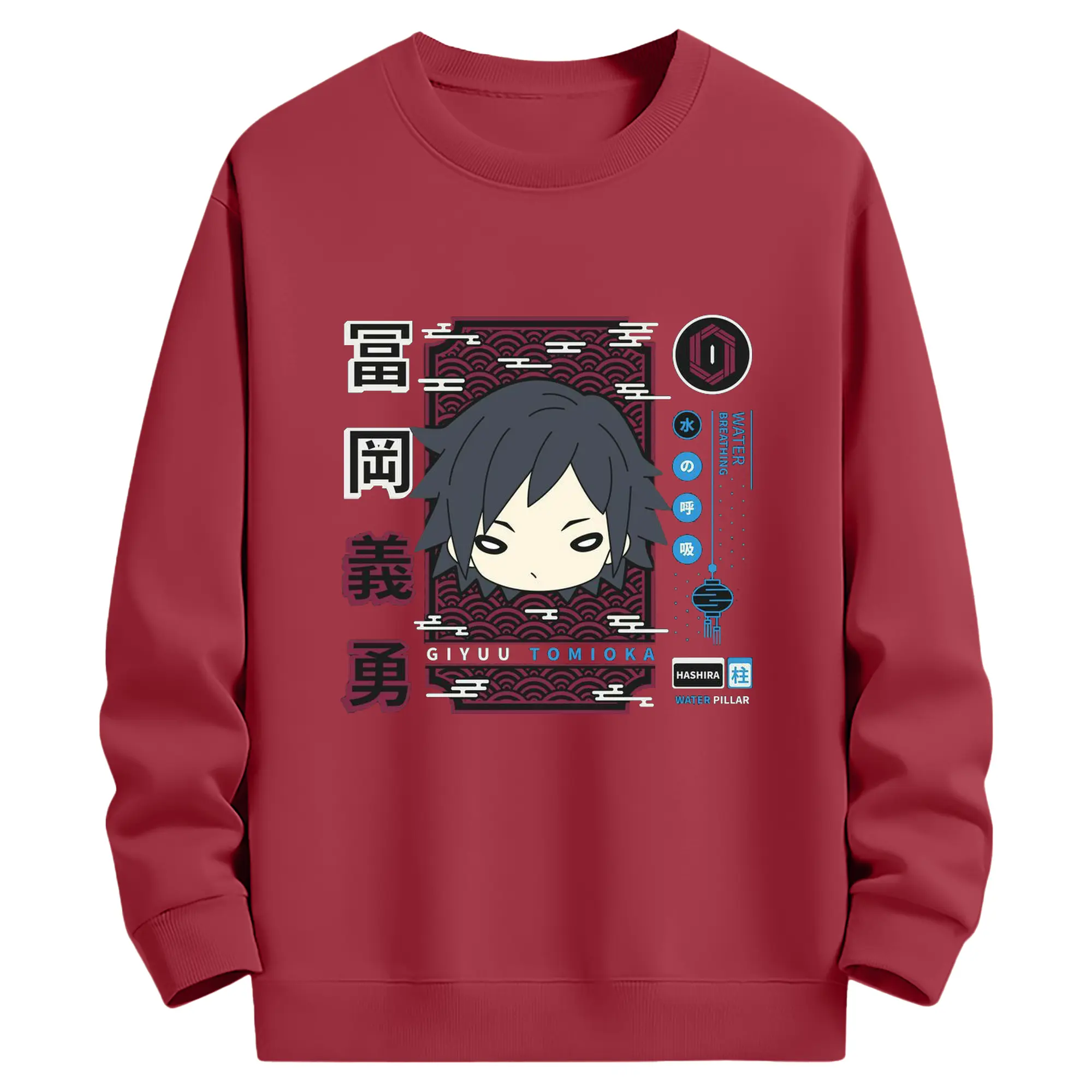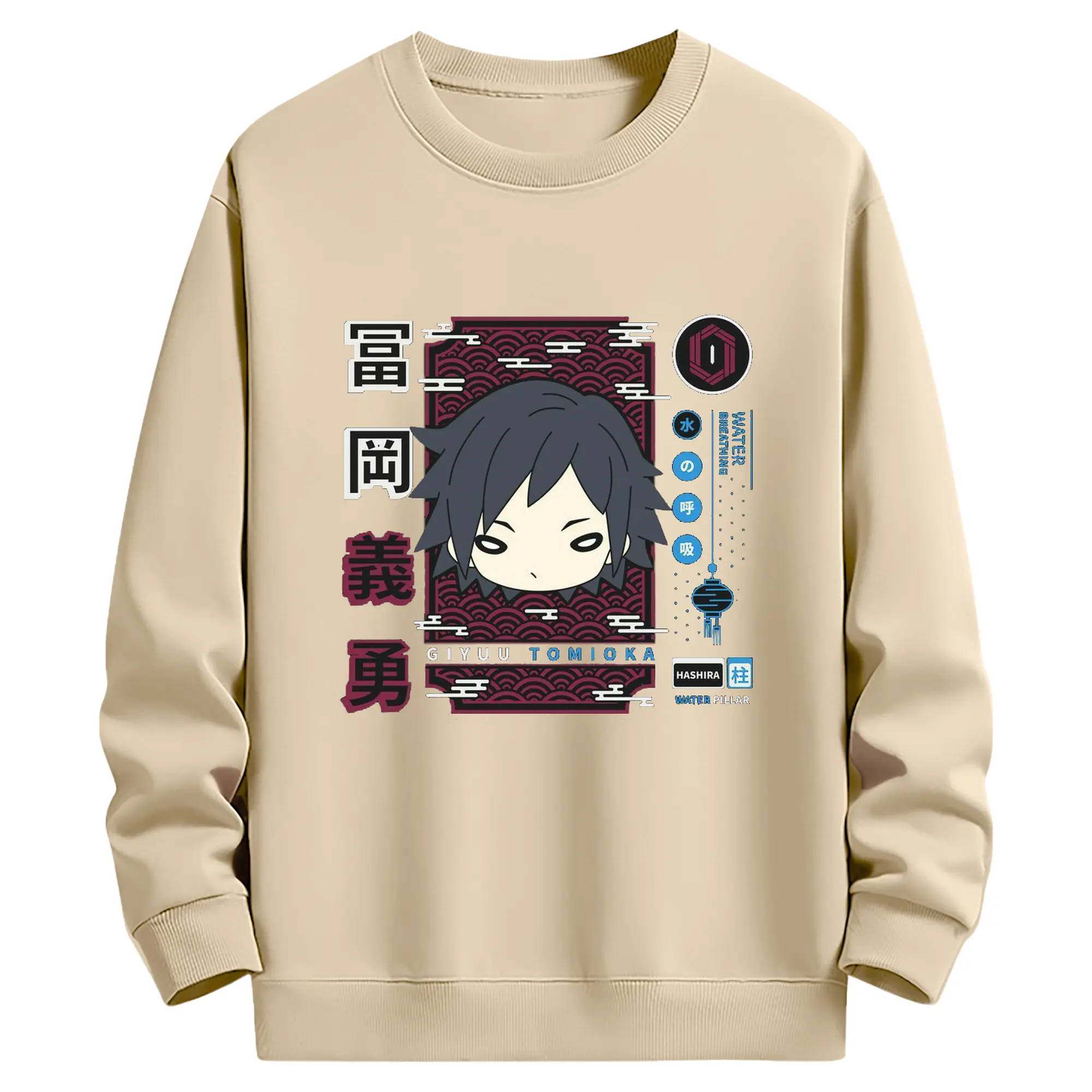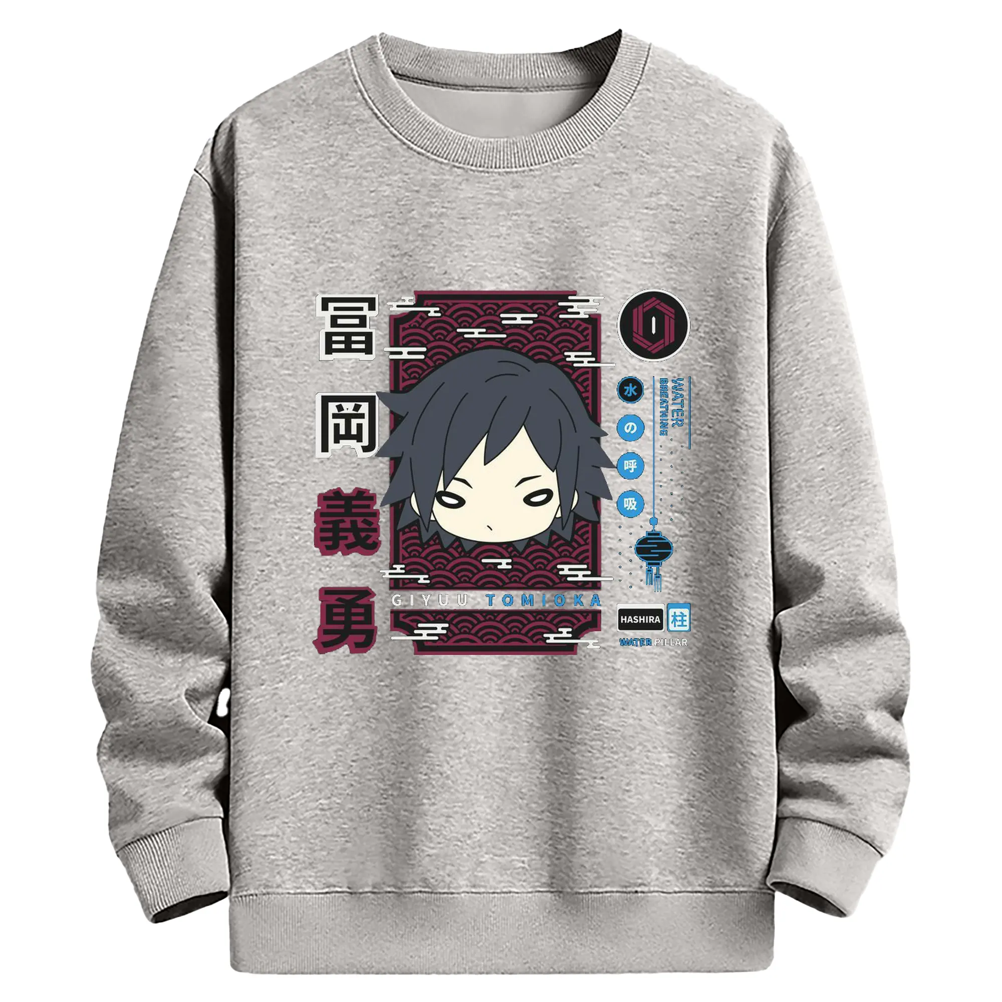 鬼滅の刃 冨岡義勇 - 高品質 クルーネック スウェット ・ コットン59% ポリエステル41% ・ ユニセックス 長袖 トレーナー ・ カジュアル デイリー スポーツ 散歩用
