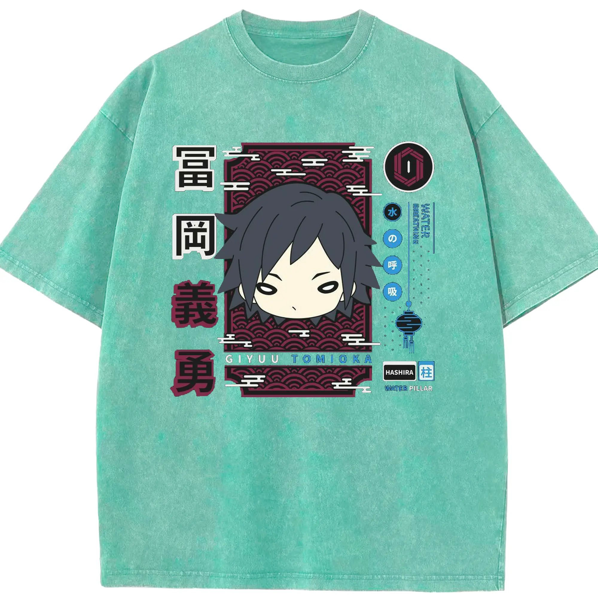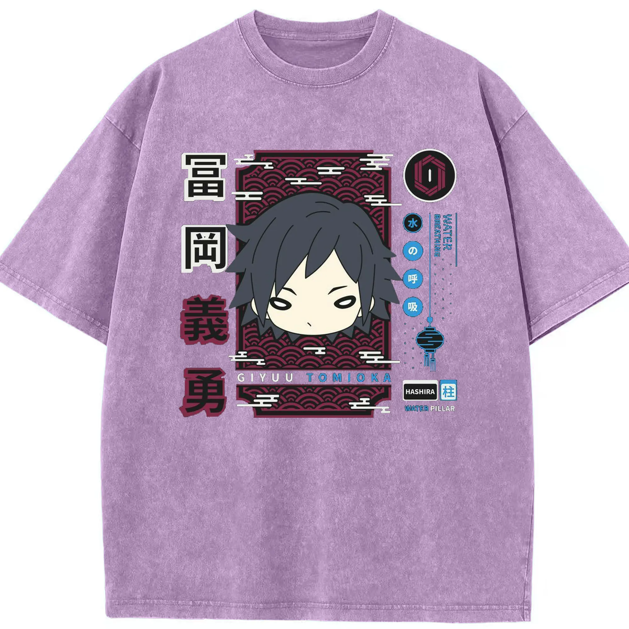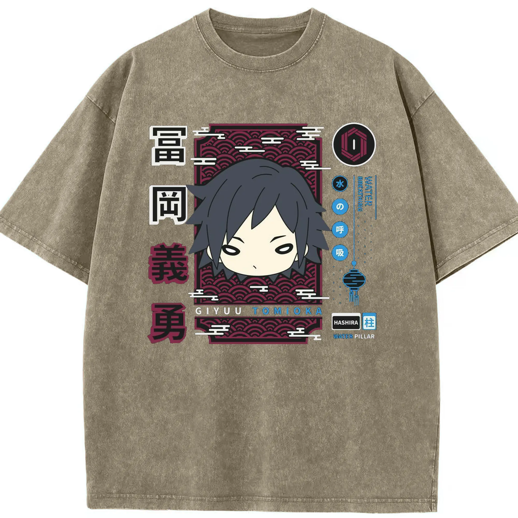 鬼滅の刃 冨岡義勇 - 綿100% ヴィンテージ風 半袖Tシャツ ・ フロントプリント ・ 柔らか肌触り ・ 通気性 快適 ・ スポーツ カジュアル 外出用