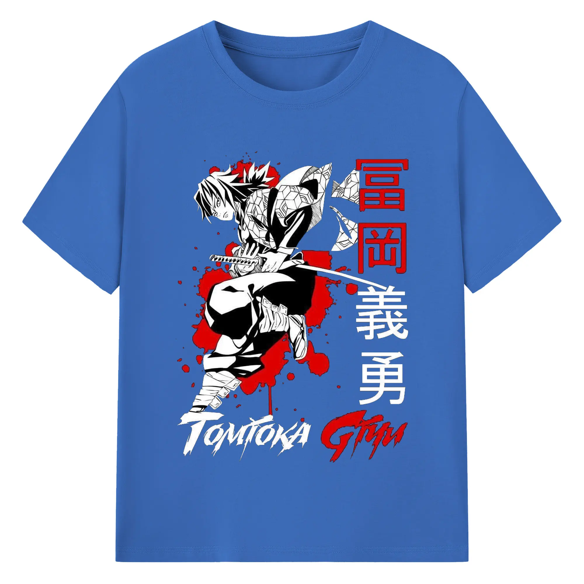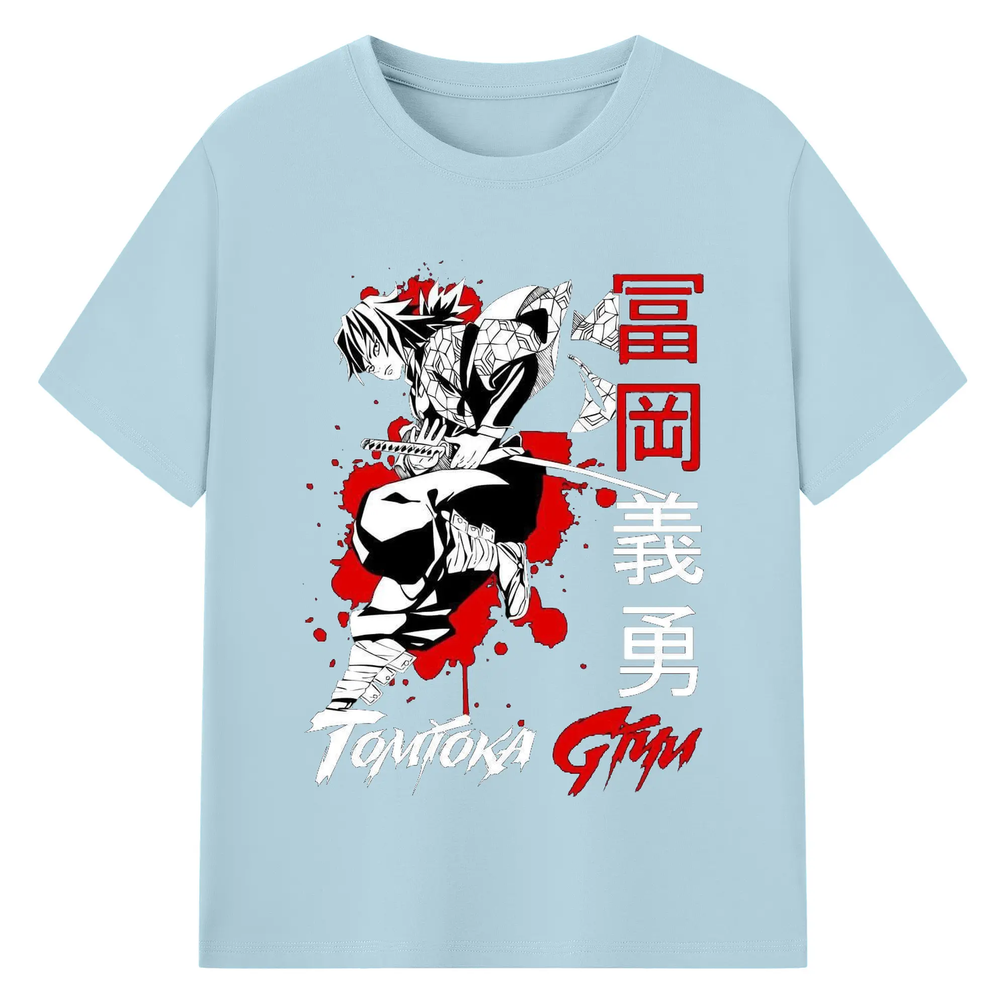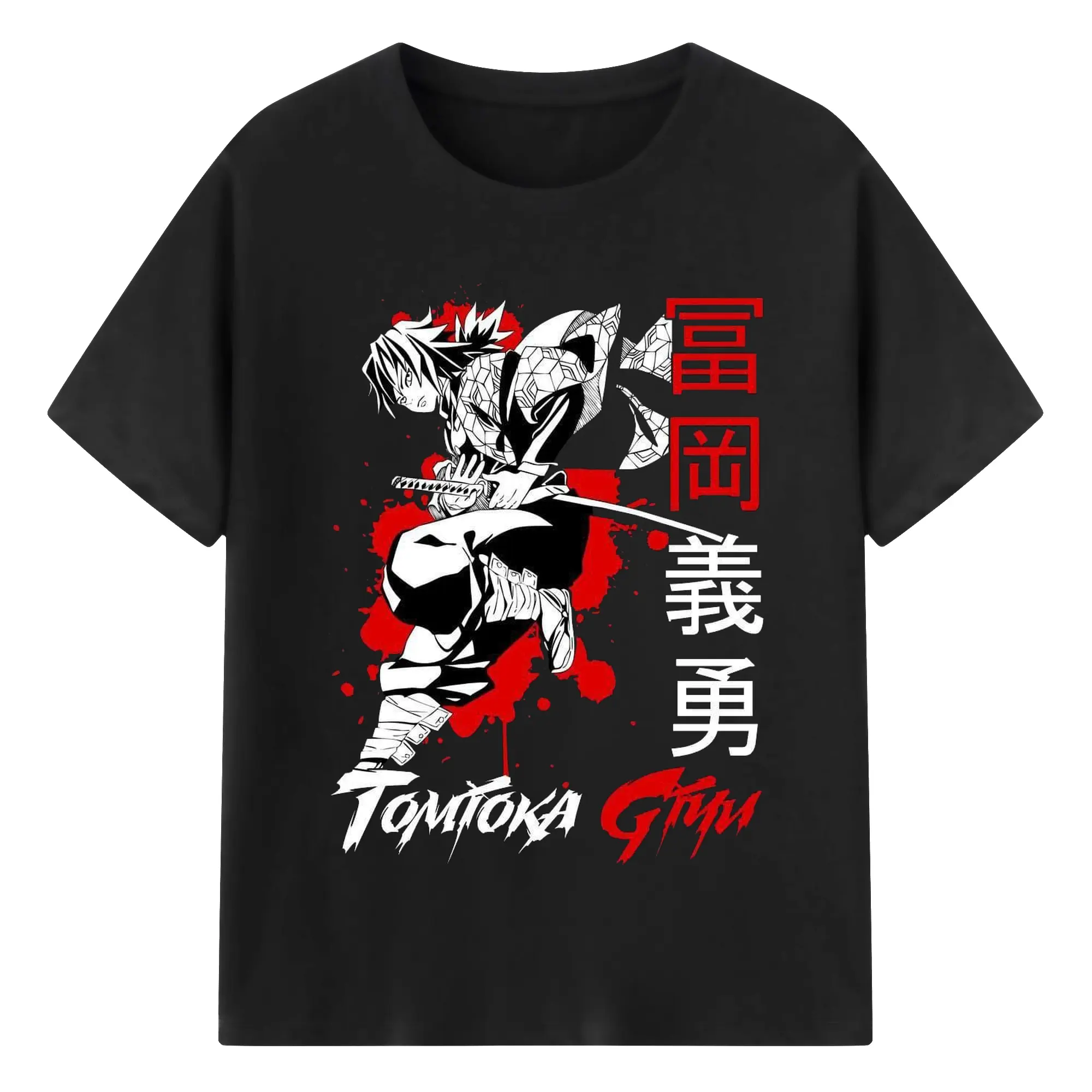 鬼滅の刃 冨岡義勇 - 綿100% 半袖Tシャツ ・ フロントプリント ・ 快適 通気性 ・ 日常使い 散歩 スポーツ用