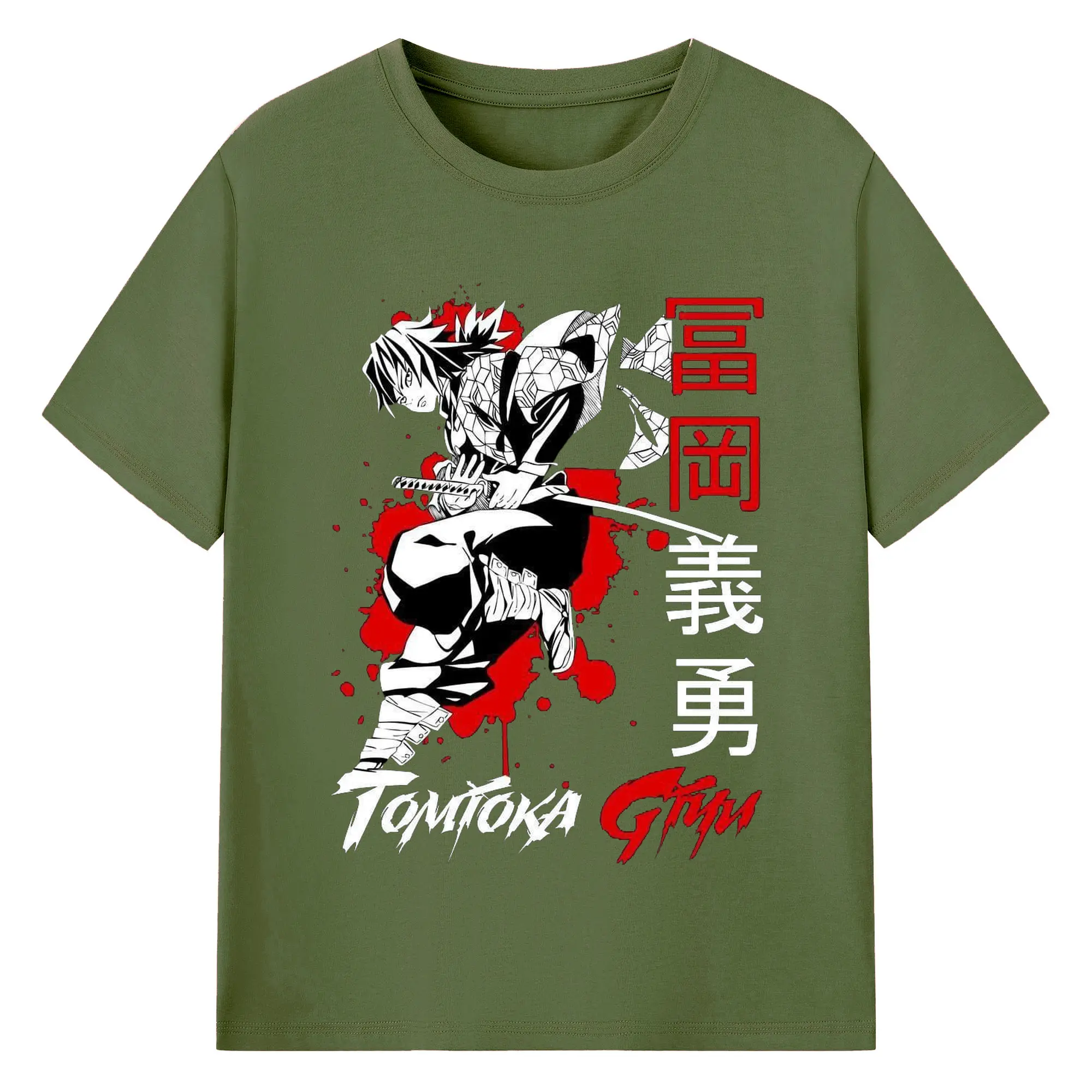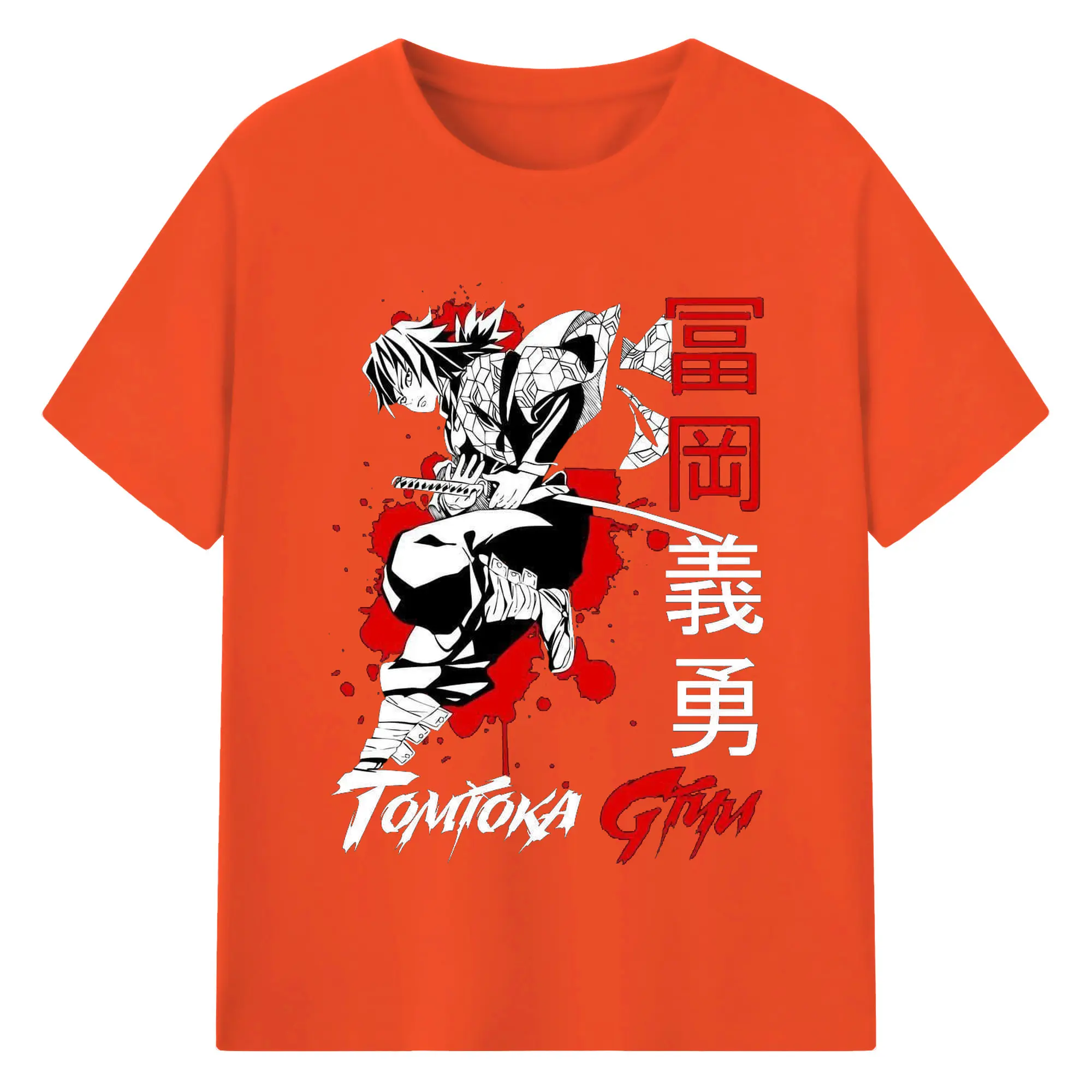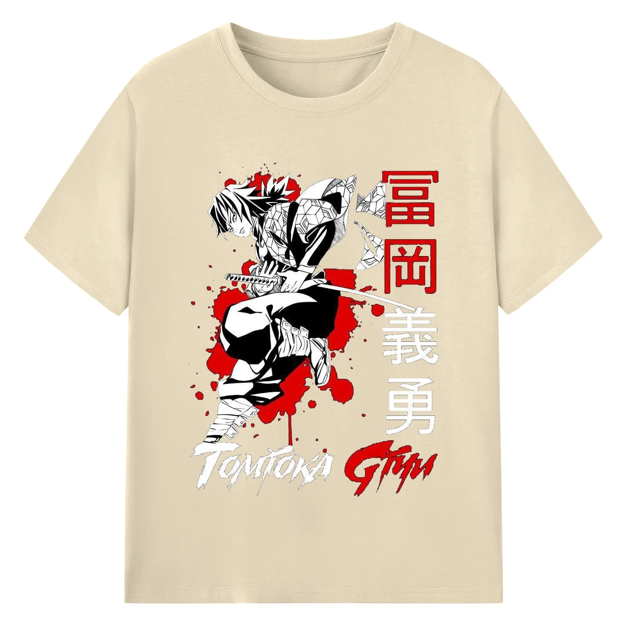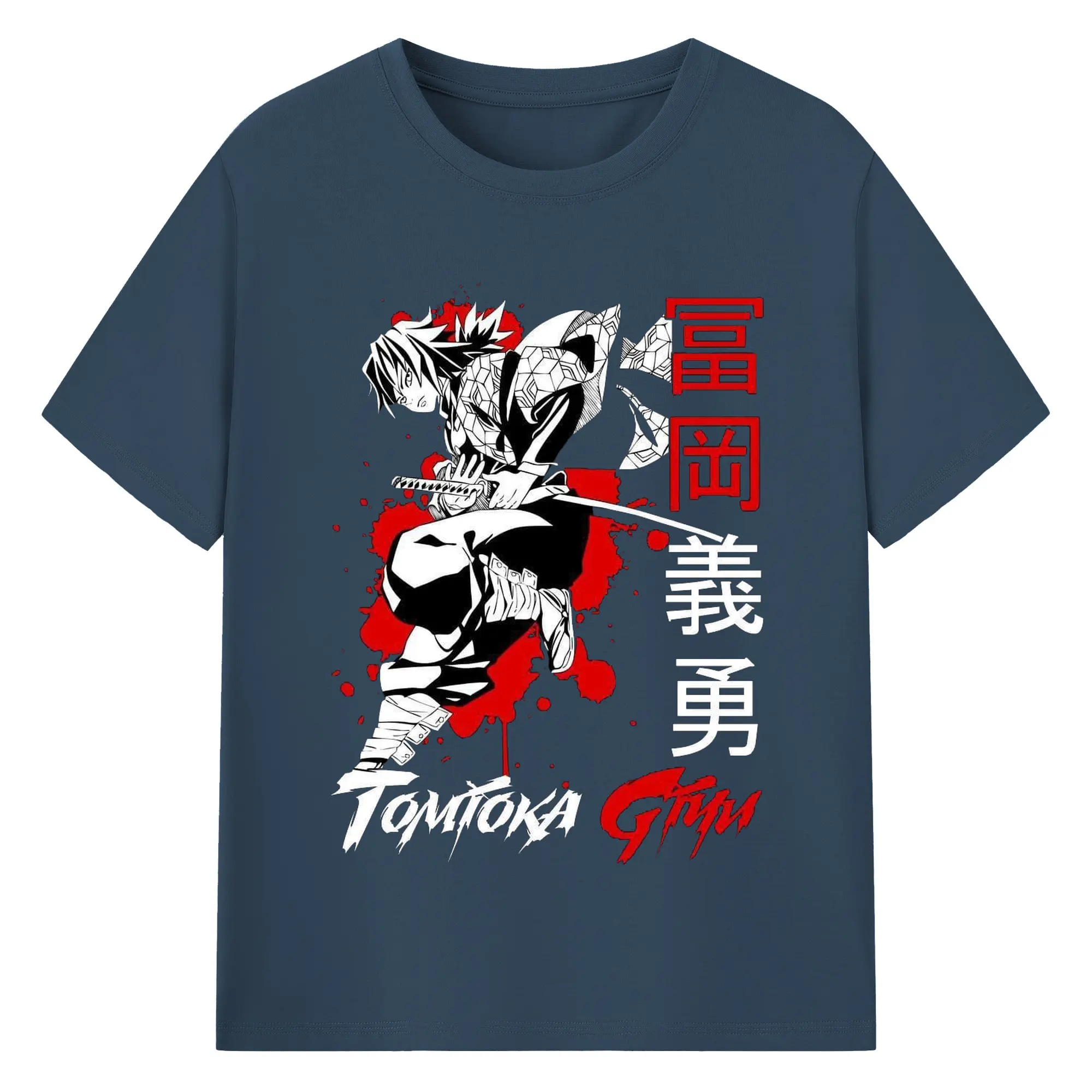 鬼滅の刃 冨岡義勇 - 綿100% 半袖Tシャツ ・ フロントプリント ・ 快適 通気性 ・ 日常使い 散歩 スポーツ用