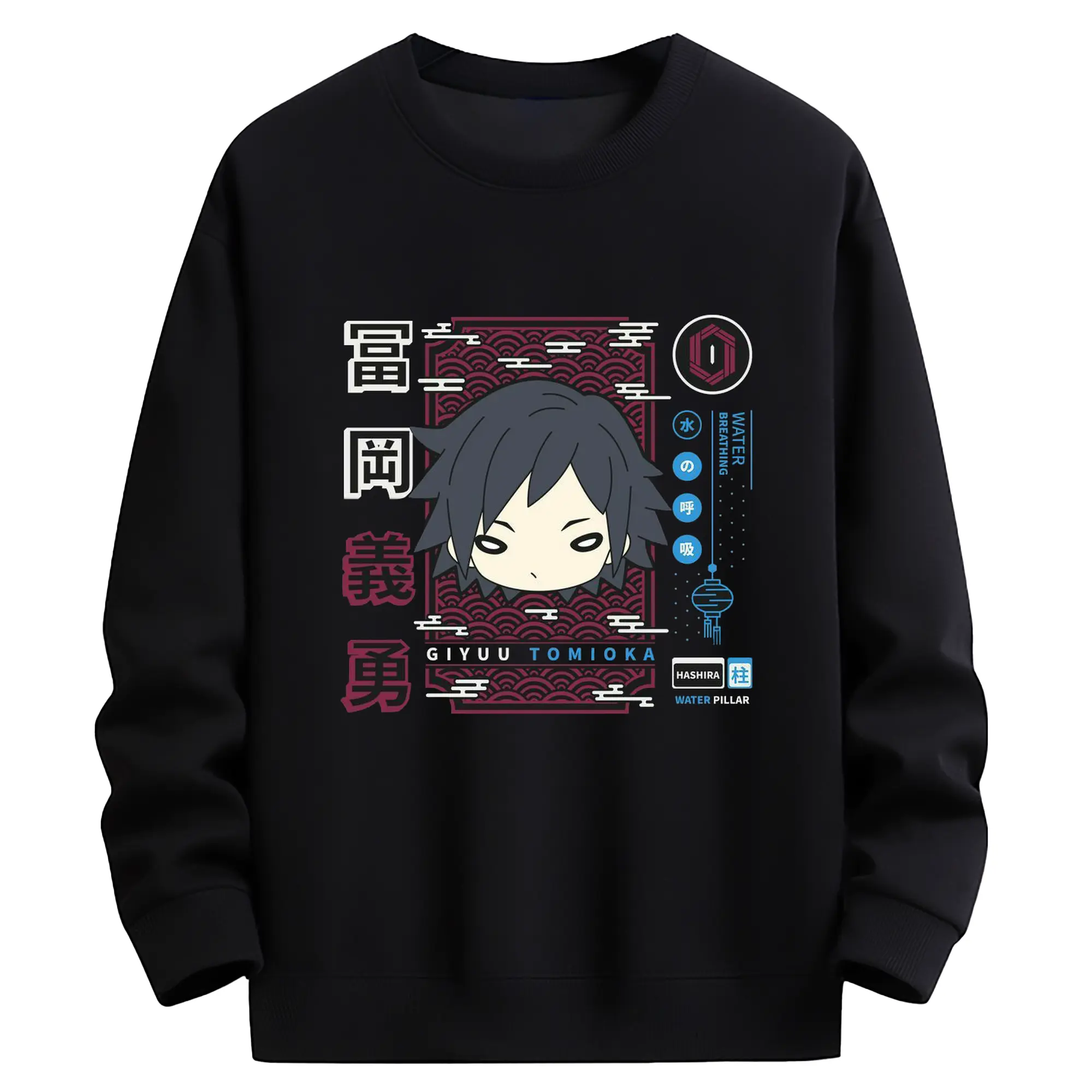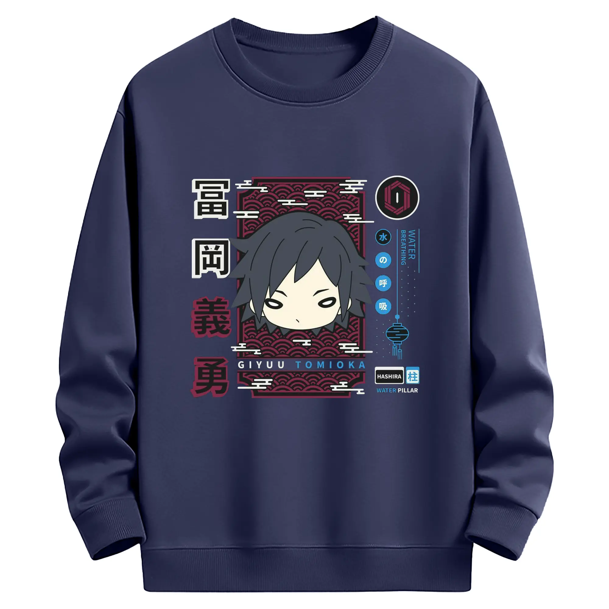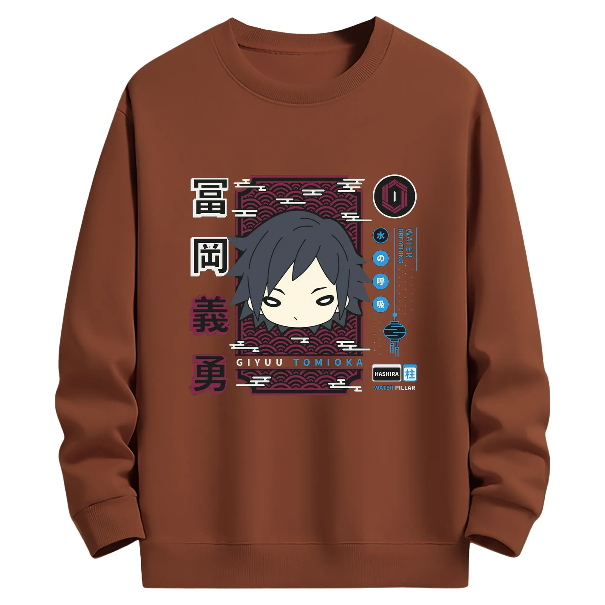 鬼滅の刃 冨岡義勇 - 高品質 クルーネック スウェット ・ コットン59% ポリエステル41% ・ ユニセックス 長袖 トレーナー ・ カジュアル デイリー スポーツ 散歩用