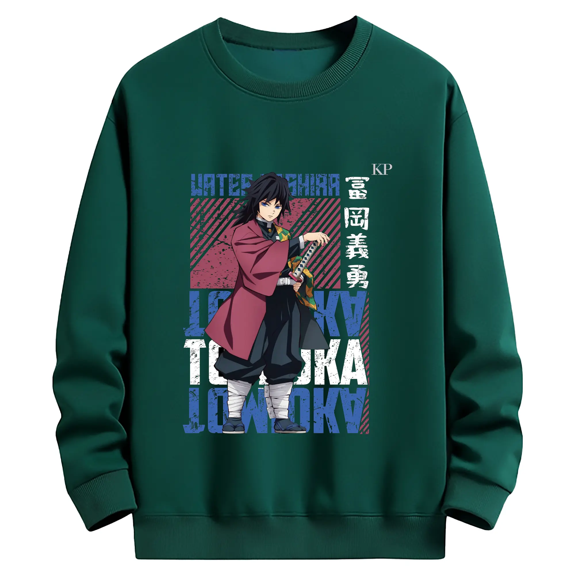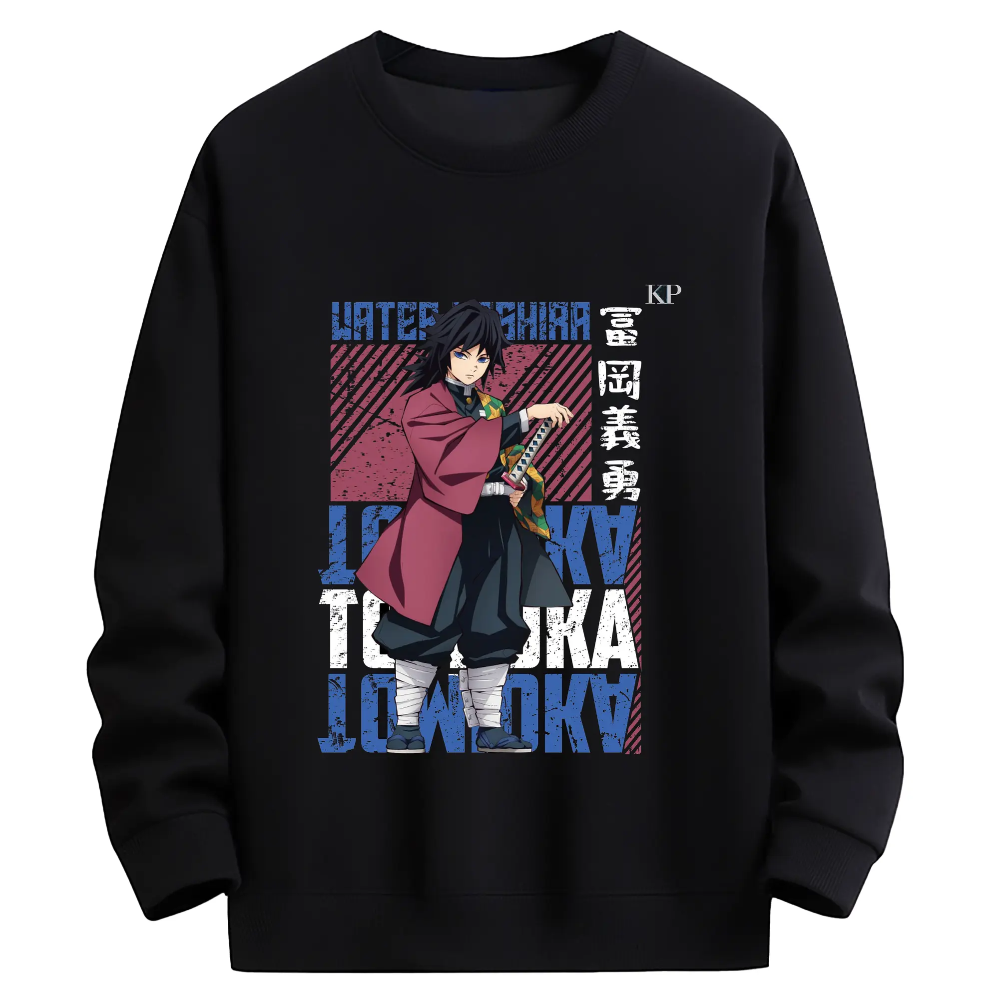 鬼滅の刃 冨岡義勇 - 高品質 クルーネック スウェット ・ コットン59% ポリエステル41% ・ ユニセックス 長袖 トレーナー ・ カジュアル デイリー スポーツ 散歩用