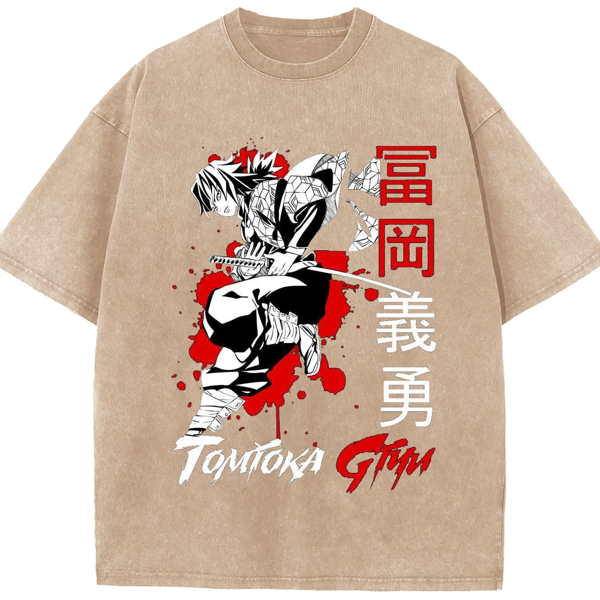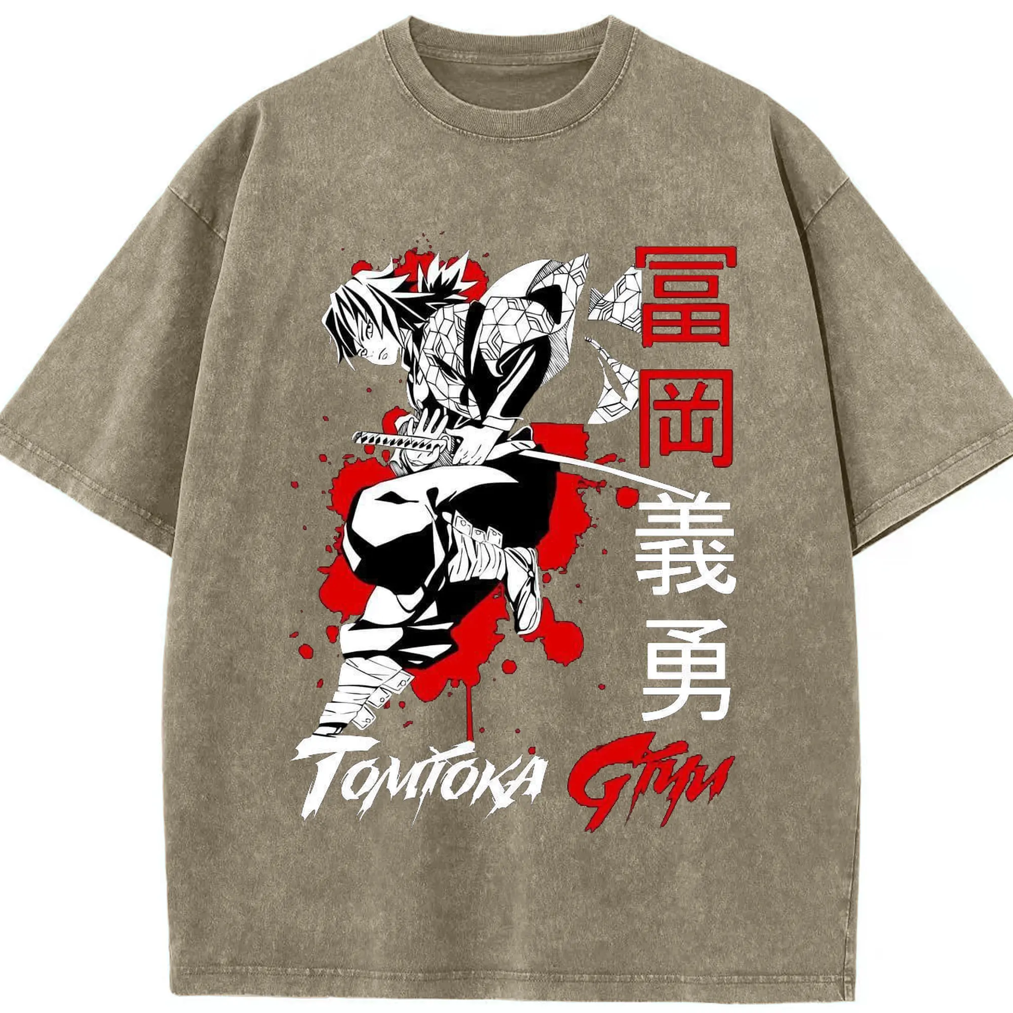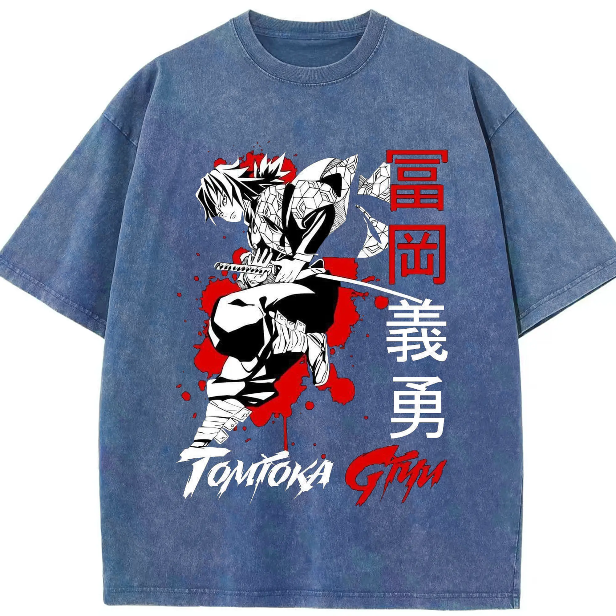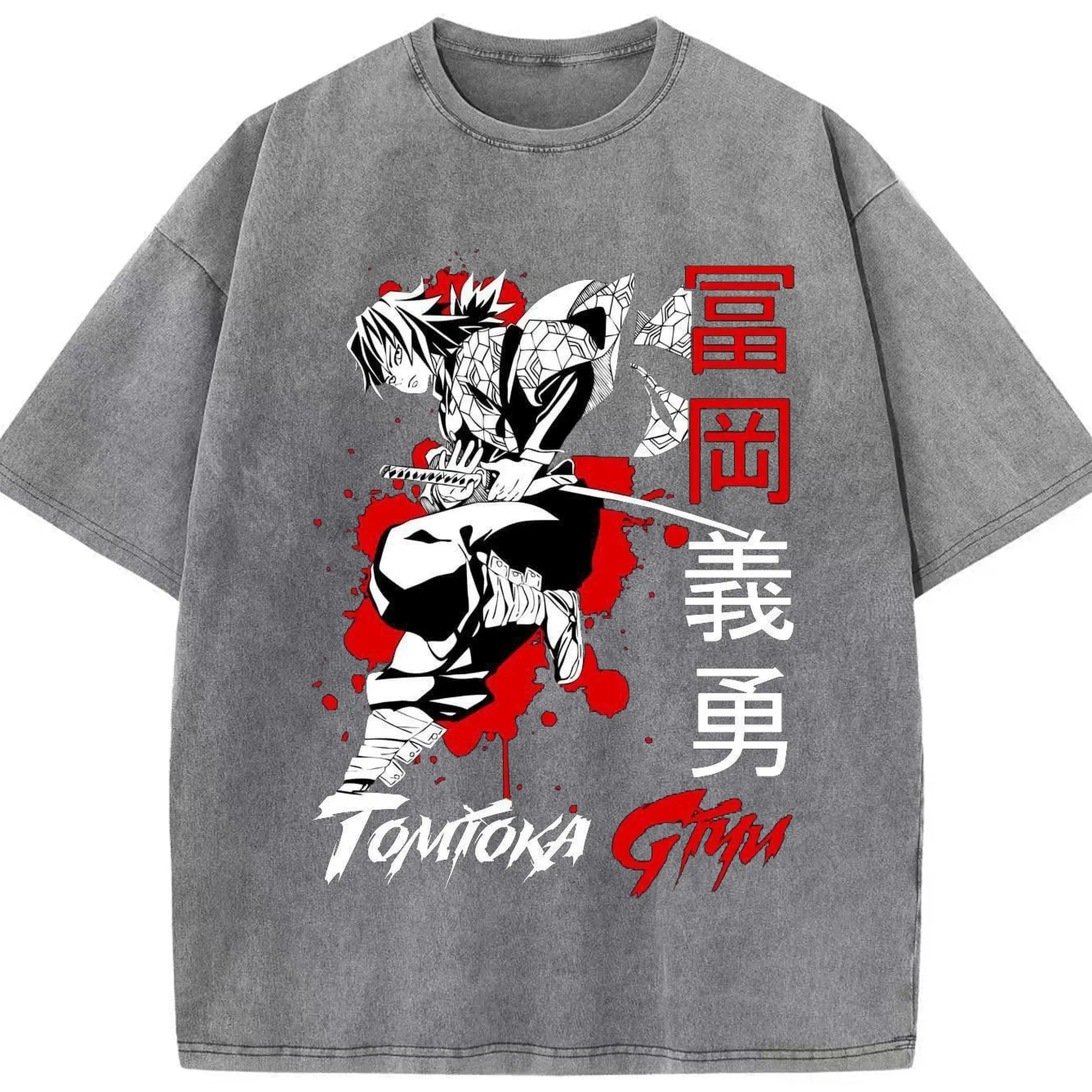 鬼滅の刃 冨岡義勇 - 綿100% ヴィンテージ風 半袖Tシャツ ・ フロントプリント ・ 柔らか肌触り ・ 通気性 快適 ・ スポーツ カジュアル 外出用