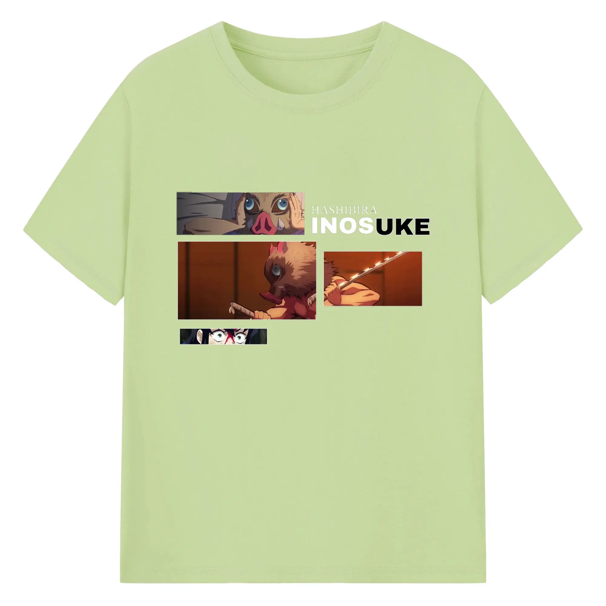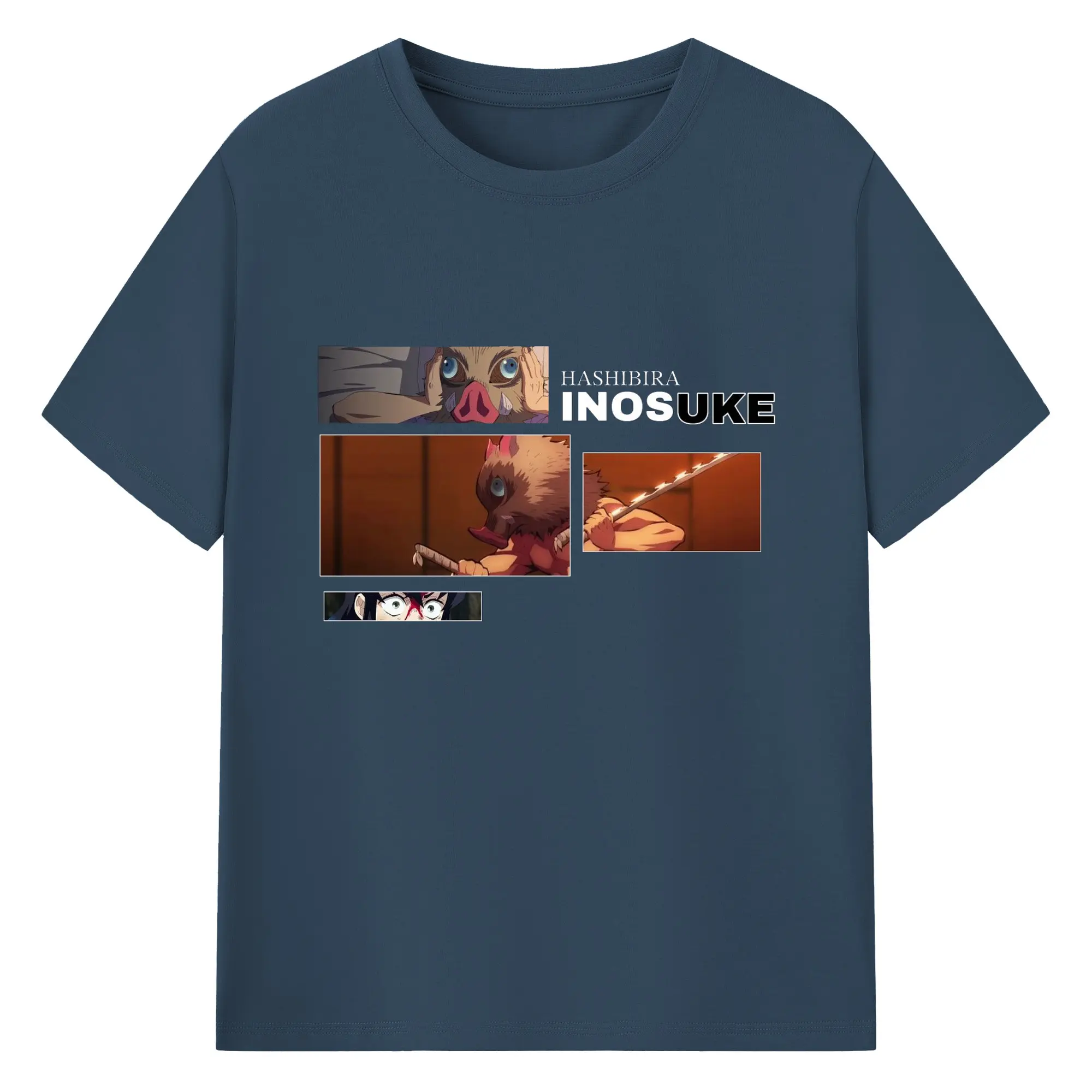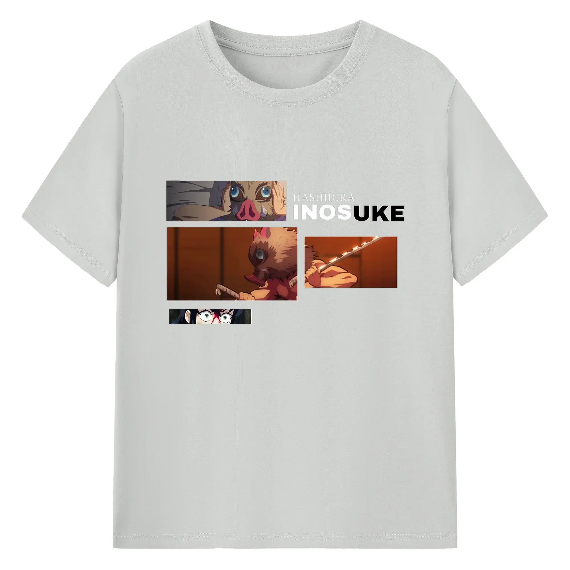 鬼滅の刃 嘴平伊之助 - 綿100% 半袖Tシャツ ・ フロントプリント ・ 快適 通気性 ・ 日常使い 散歩 スポーツ用
