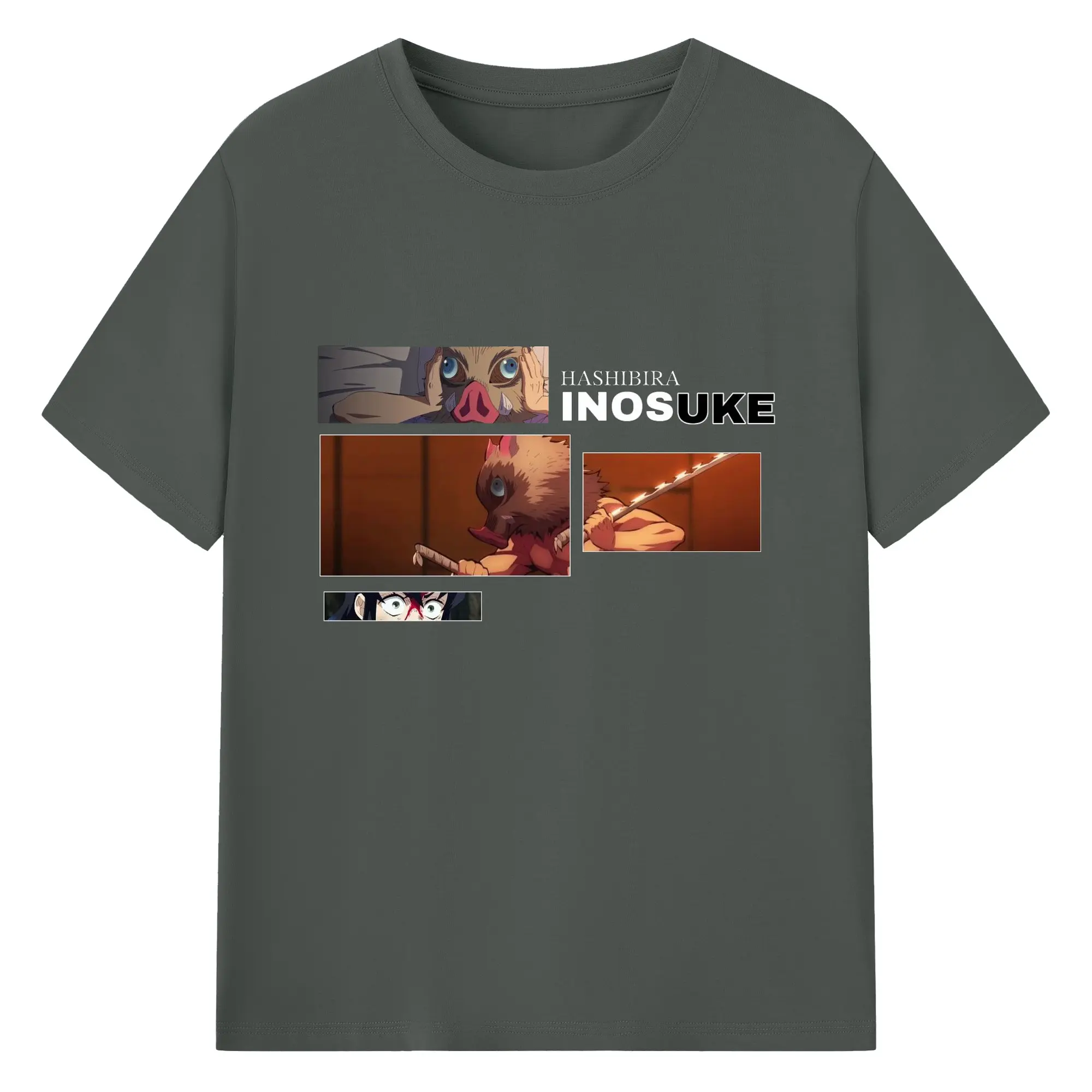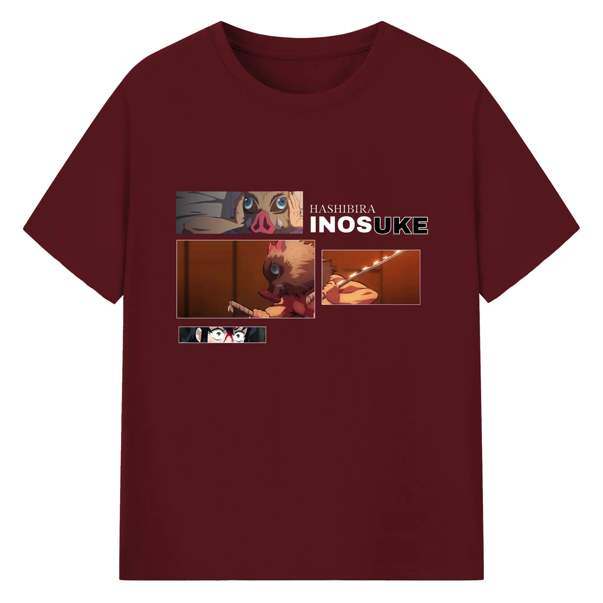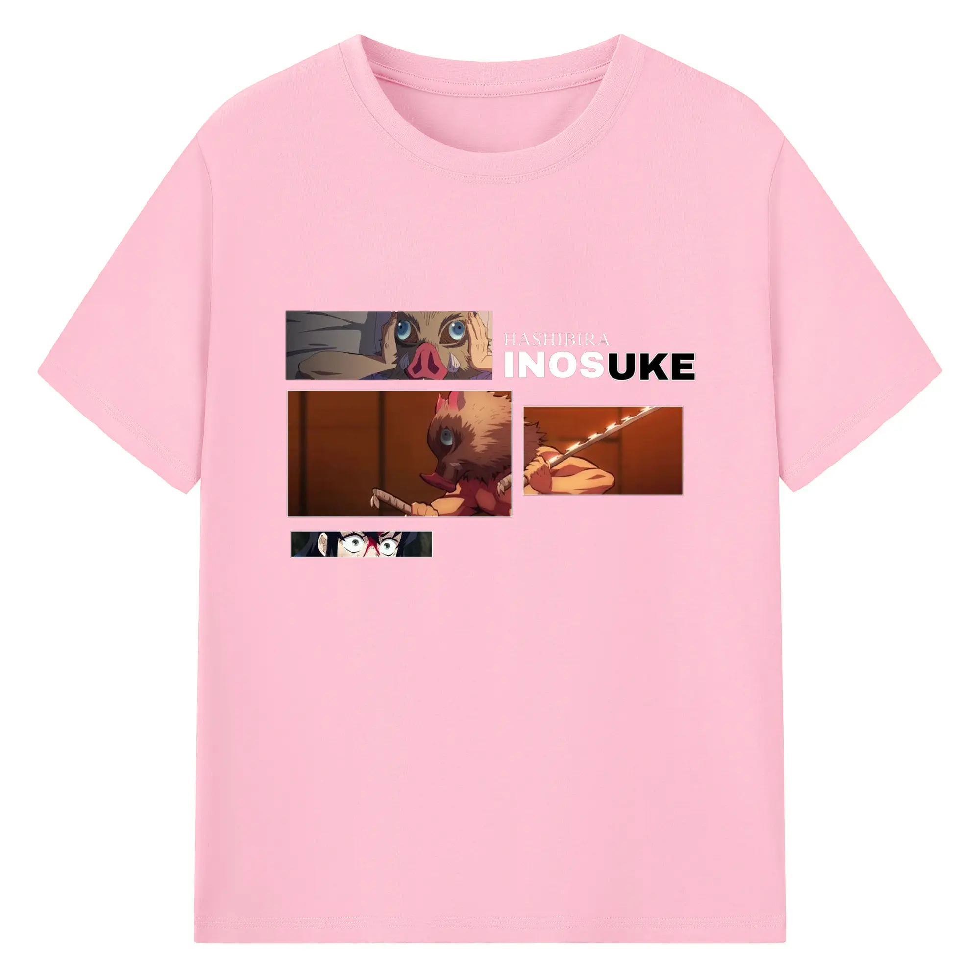 鬼滅の刃 嘴平伊之助 - 綿100% 半袖Tシャツ ・ フロントプリント ・ 快適 通気性 ・ 日常使い 散歩 スポーツ用