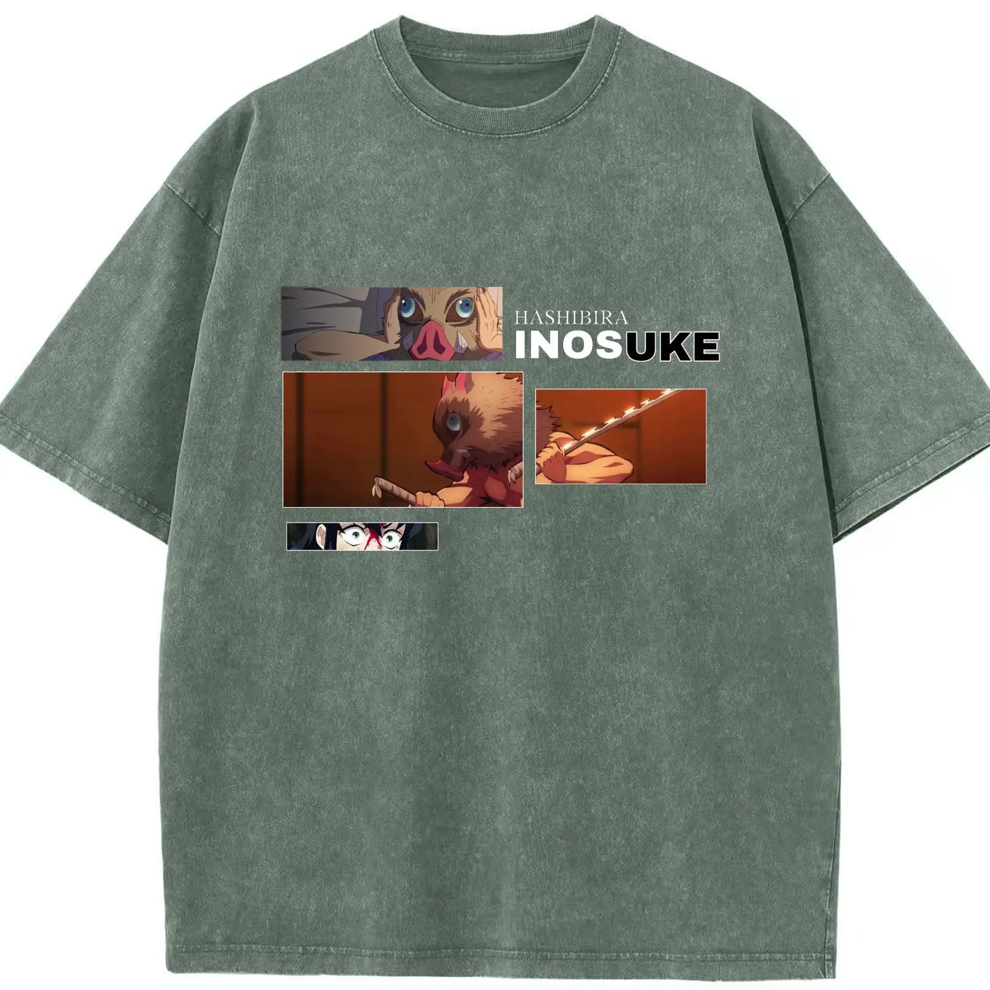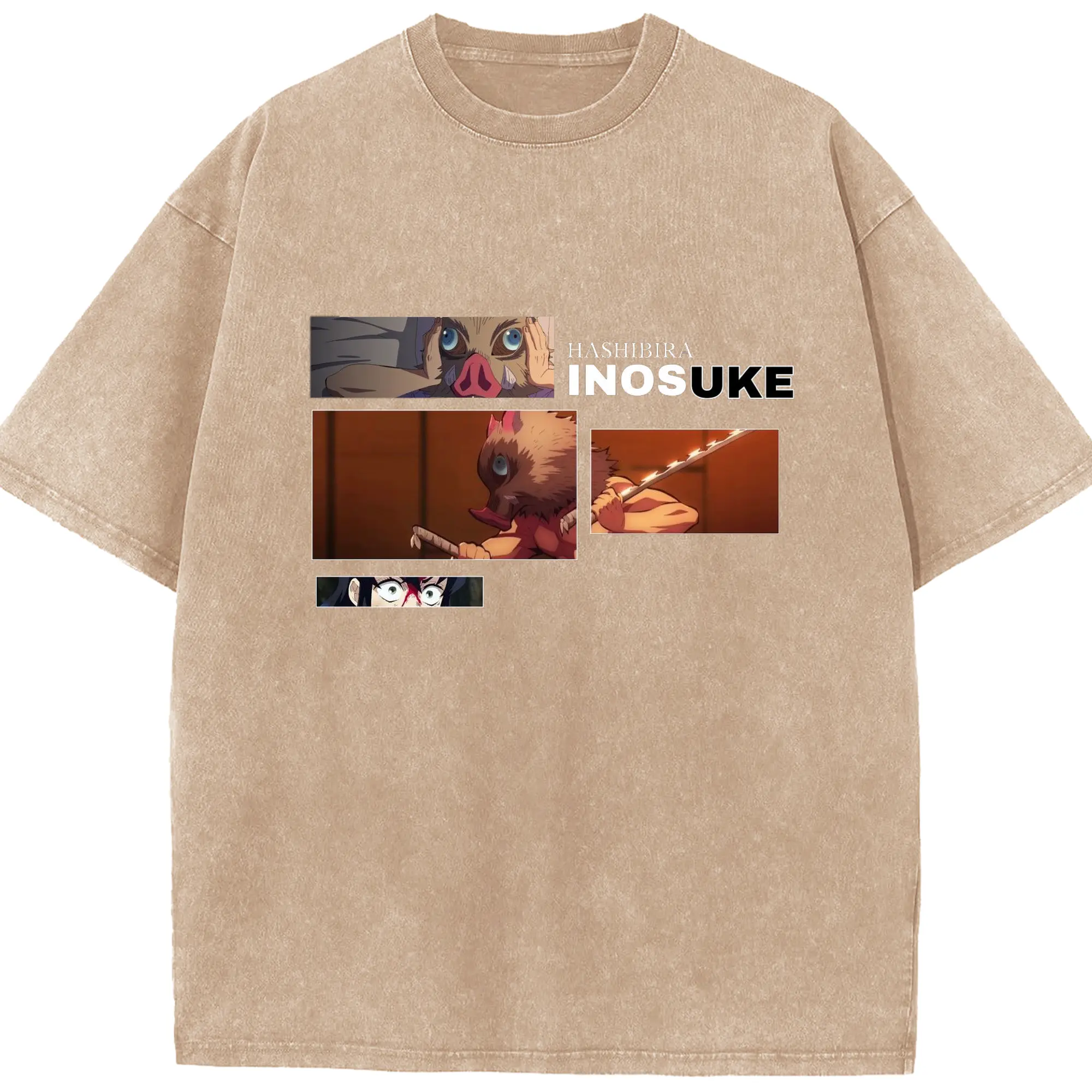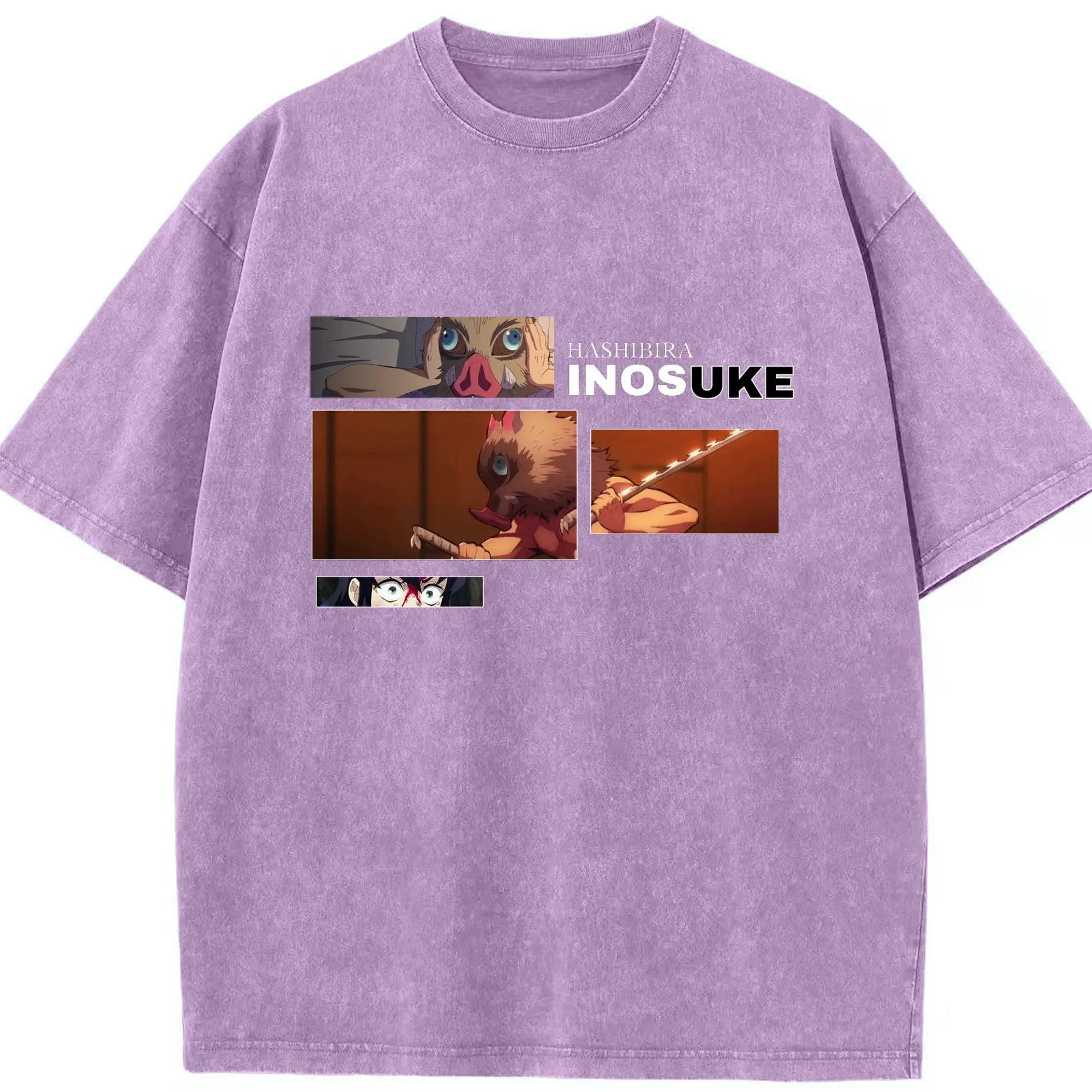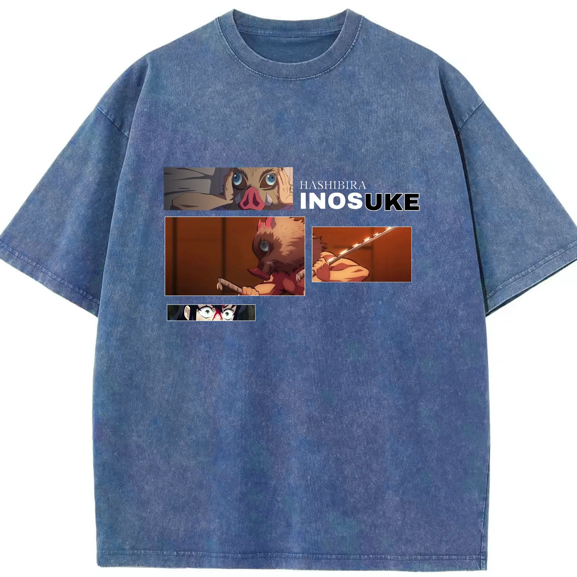 鬼滅の刃 嘴平伊之助 - 綿100% ヴィンテージ風 半袖Tシャツ ・ フロントプリント ・ 柔らか肌触り ・ 通気性 快適 ・ スポーツ カジュアル 外出用