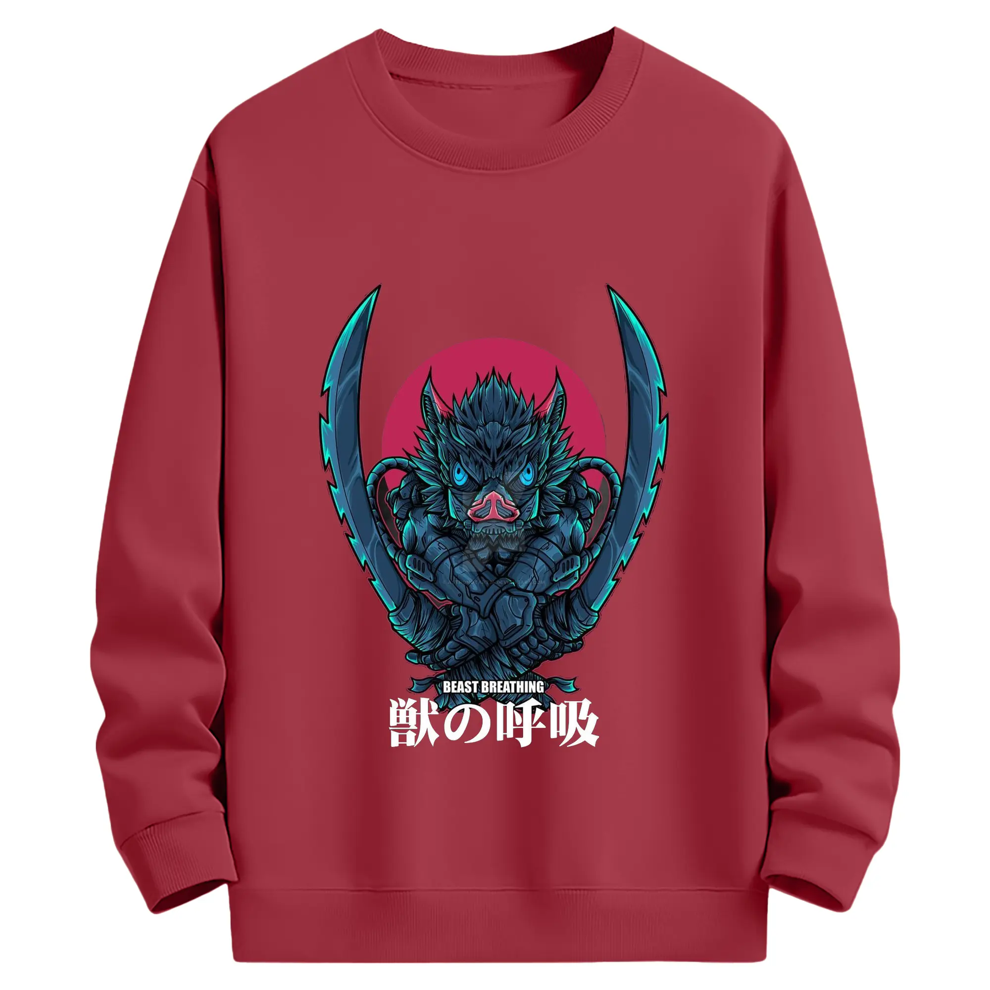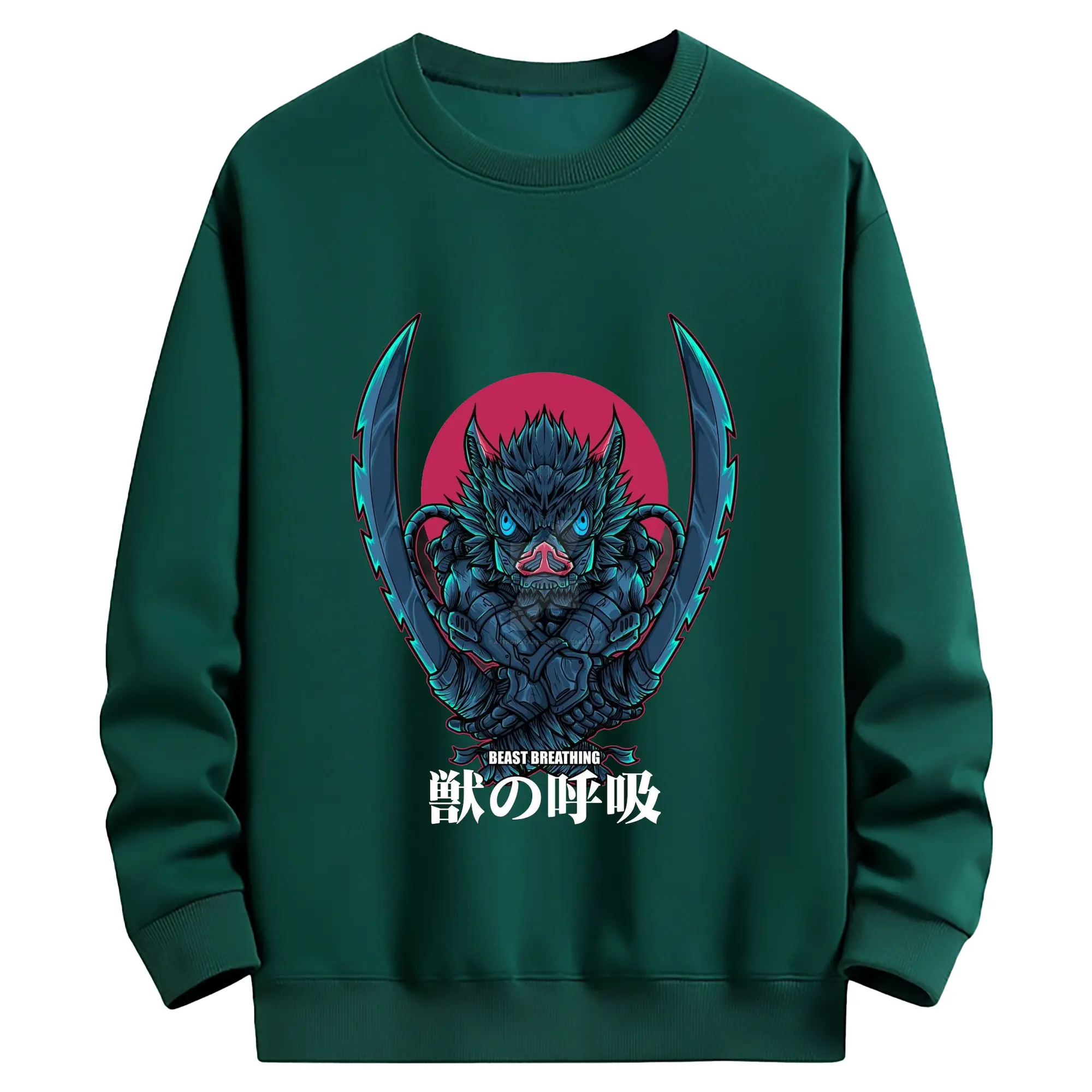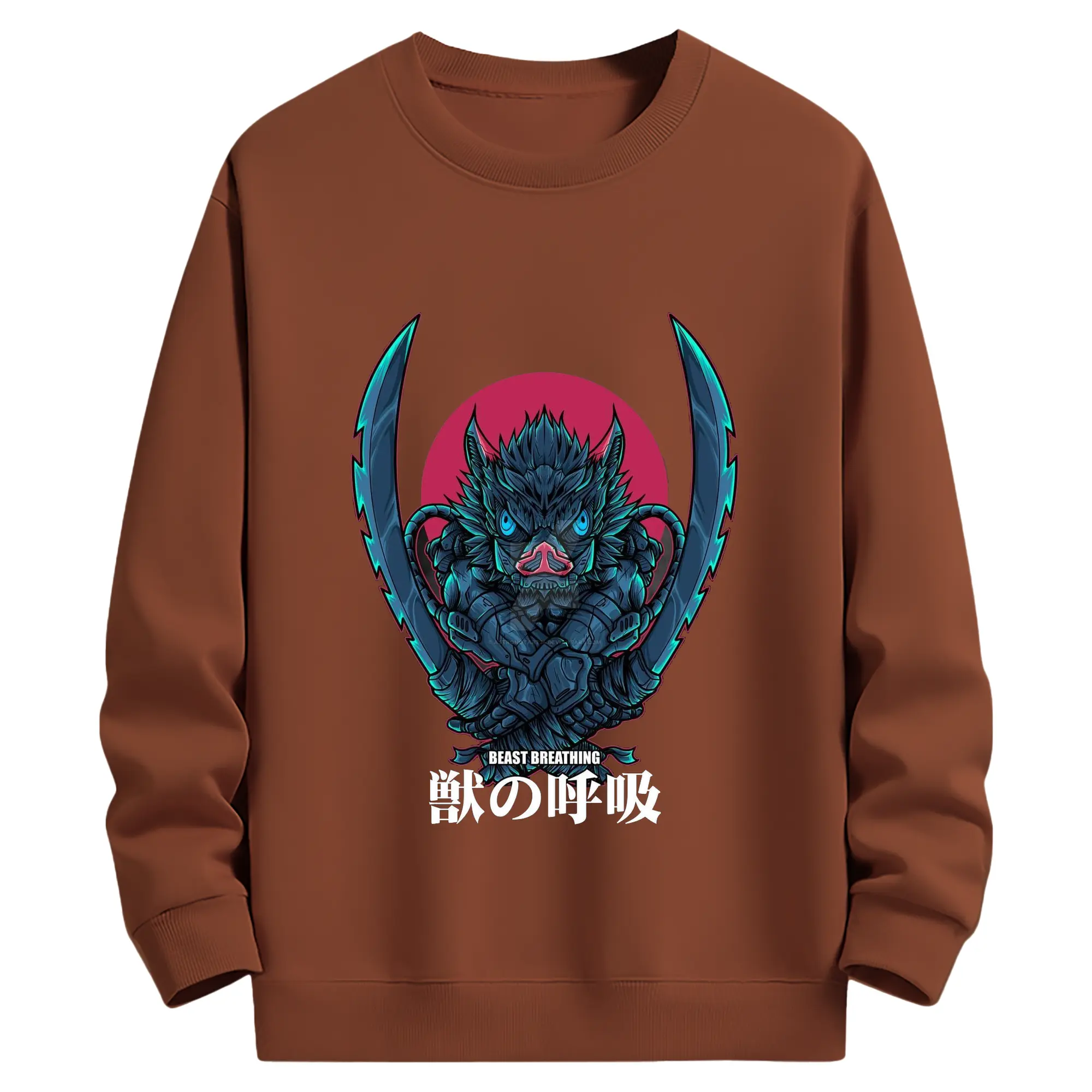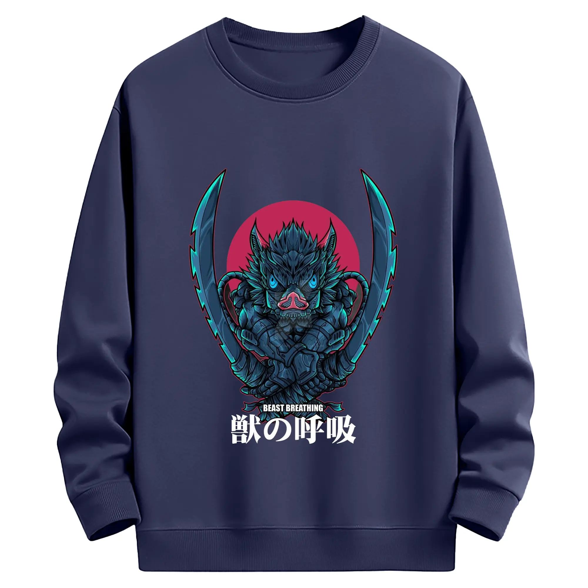 鬼滅の刃 嘴平伊之助 - 高品質 クルーネック スウェット ・ コットン59% ポリエステル41% ・ ユニセックス 長袖 トレーナー ・ カジュアル デイリー スポーツ 散歩用