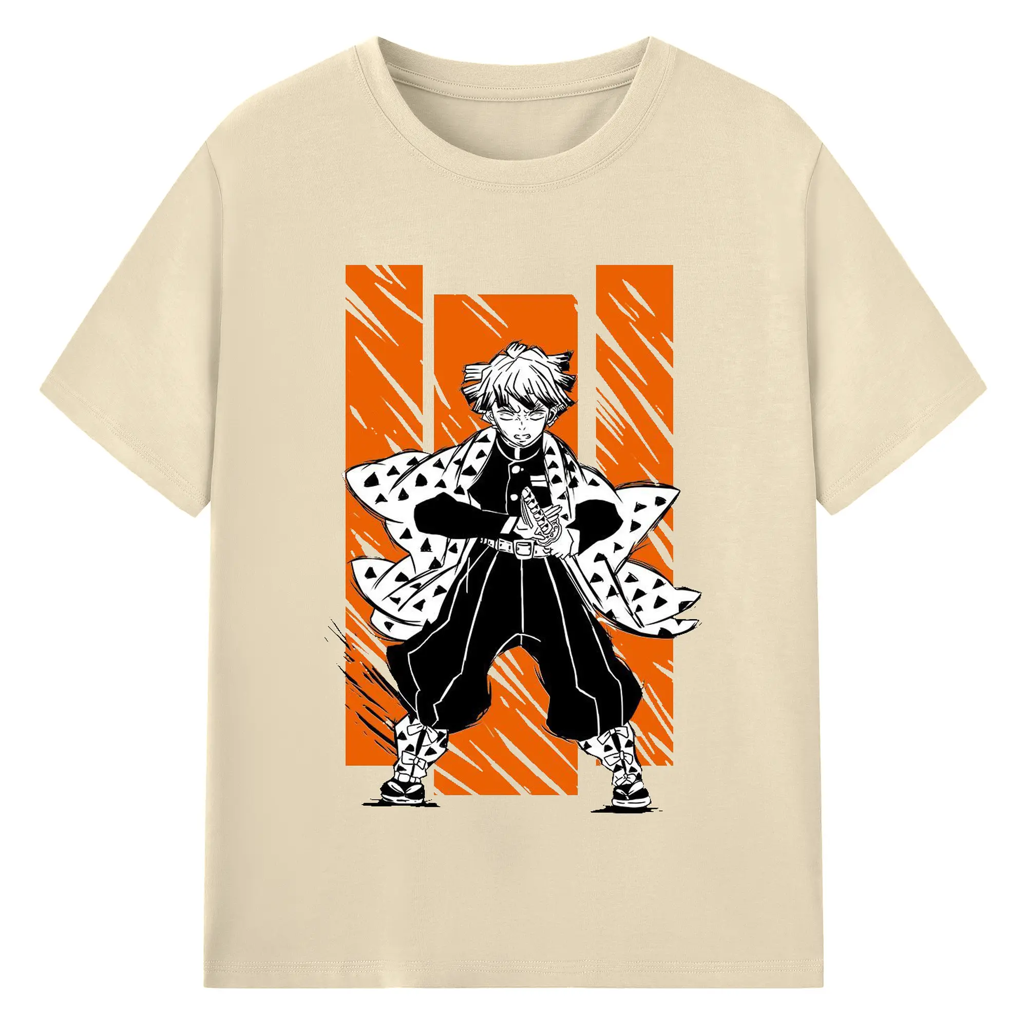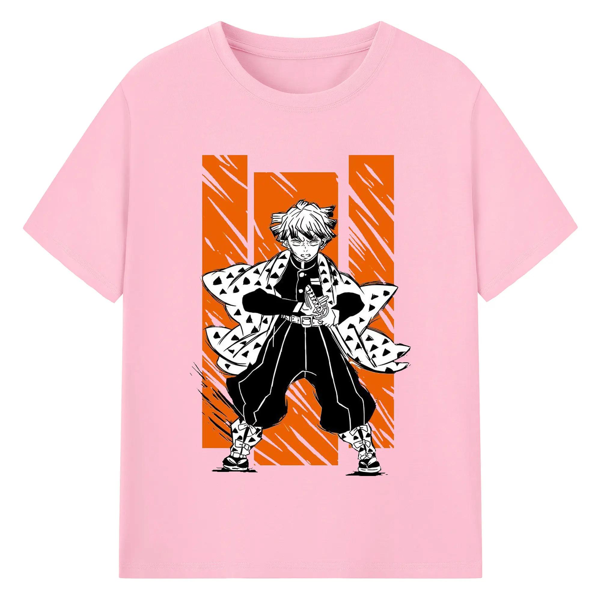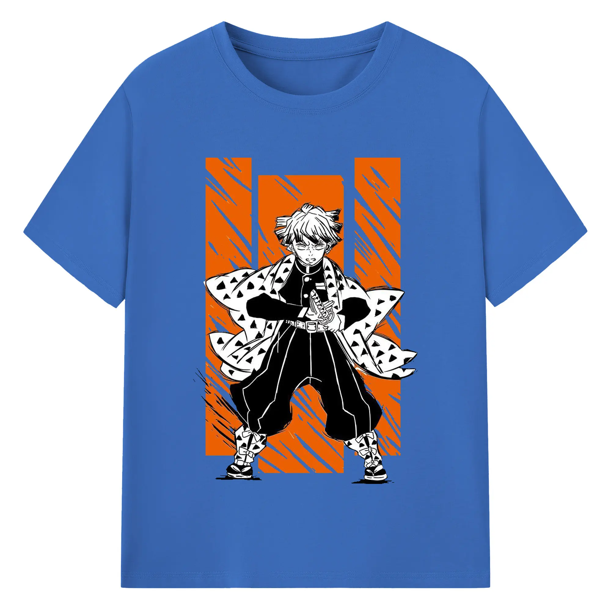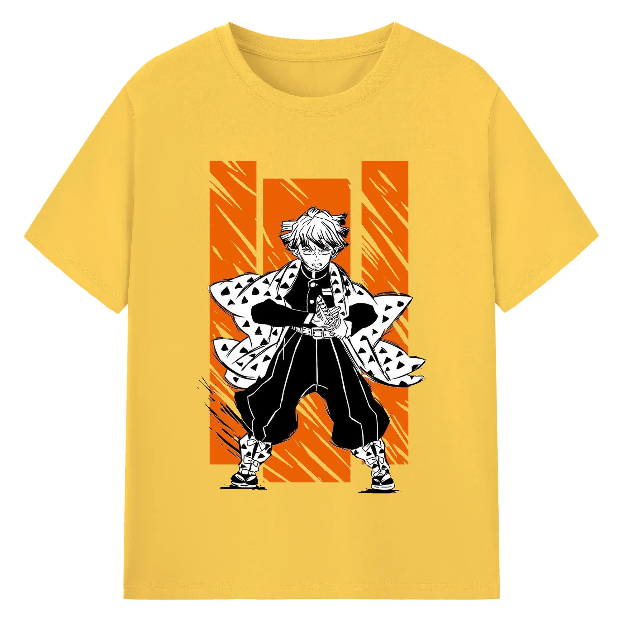 鬼滅の刃 我妻善逸 - 綿100% 半袖Tシャツ ・ フロントプリント ・ 快適 通気性 ・ 日常使い 散歩 スポーツ用