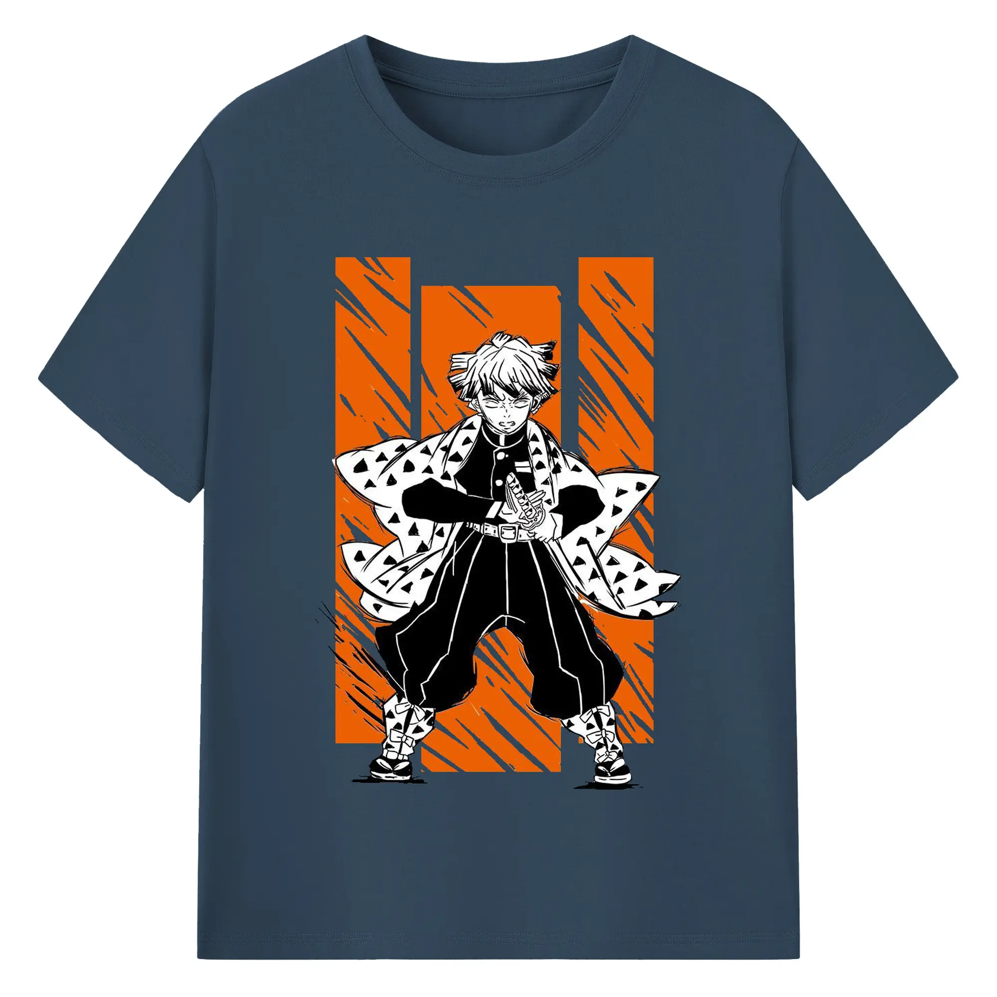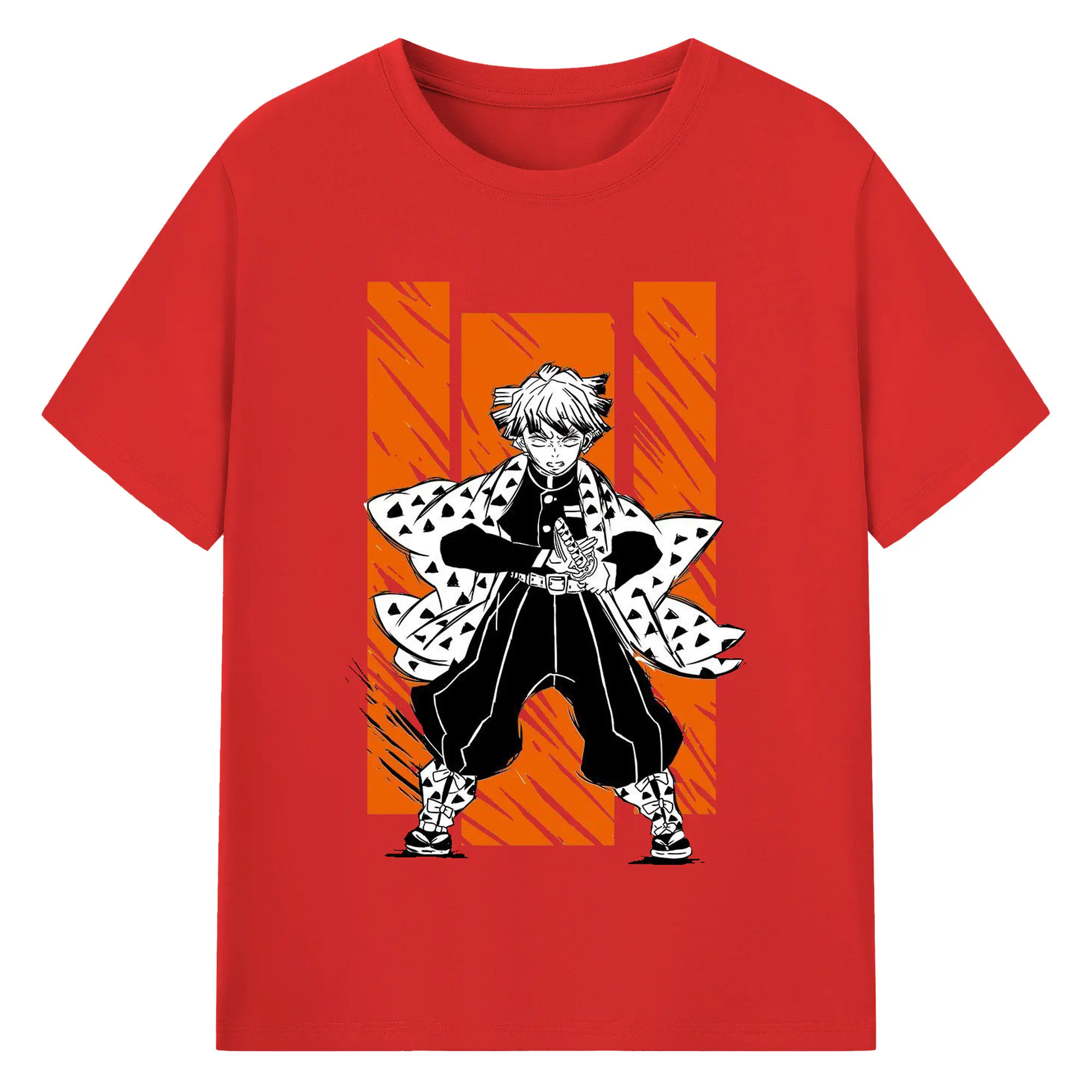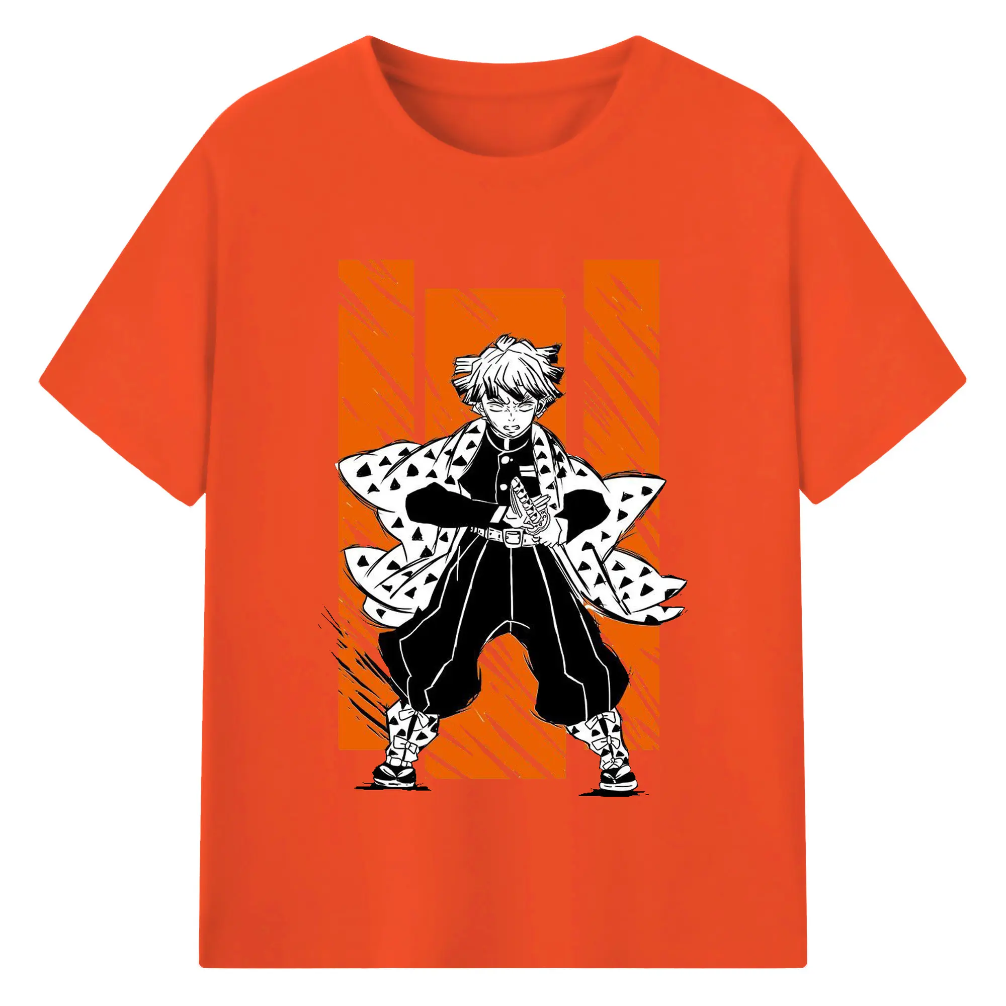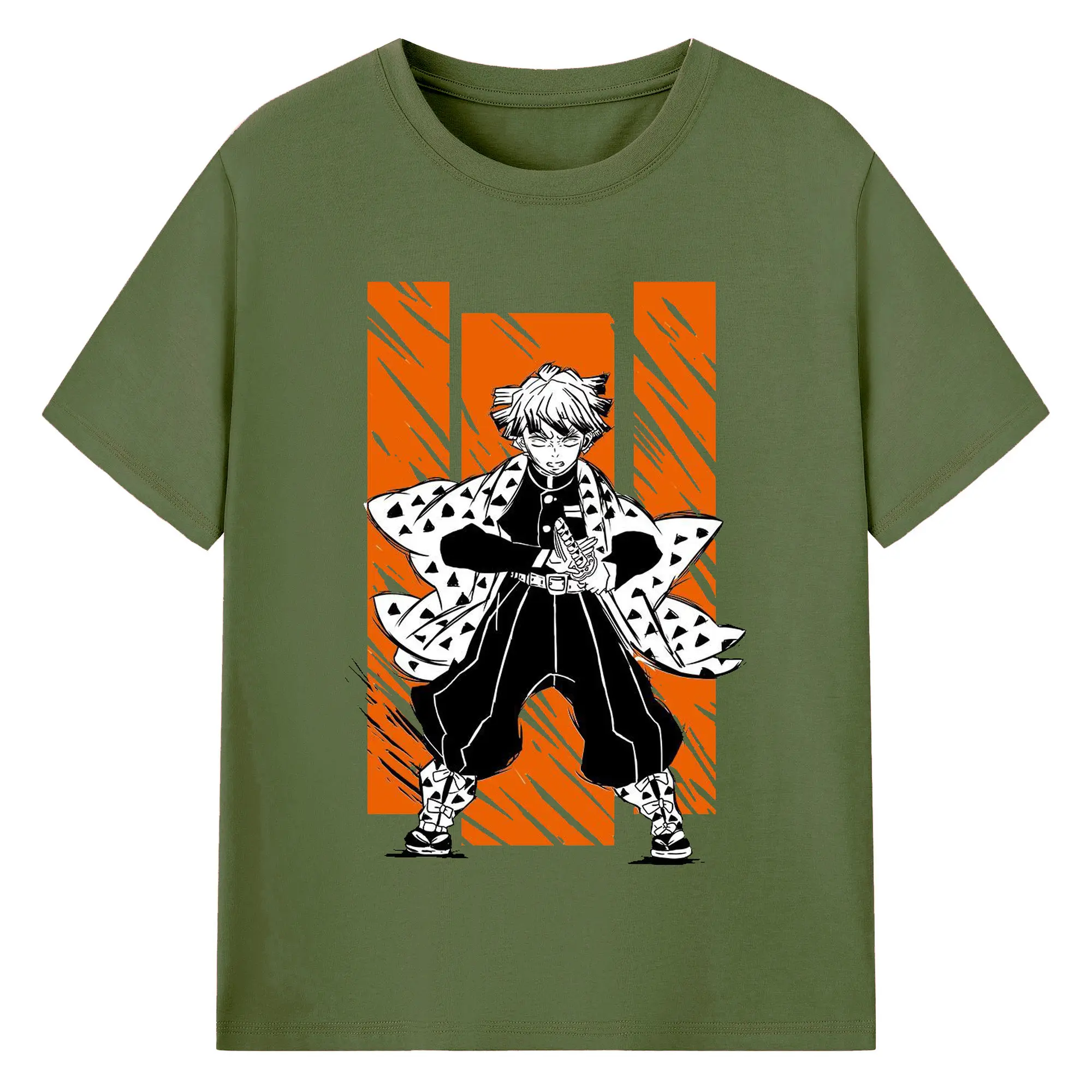 鬼滅の刃 我妻善逸 - 綿100% 半袖Tシャツ ・ フロントプリント ・ 快適 通気性 ・ 日常使い 散歩 スポーツ用