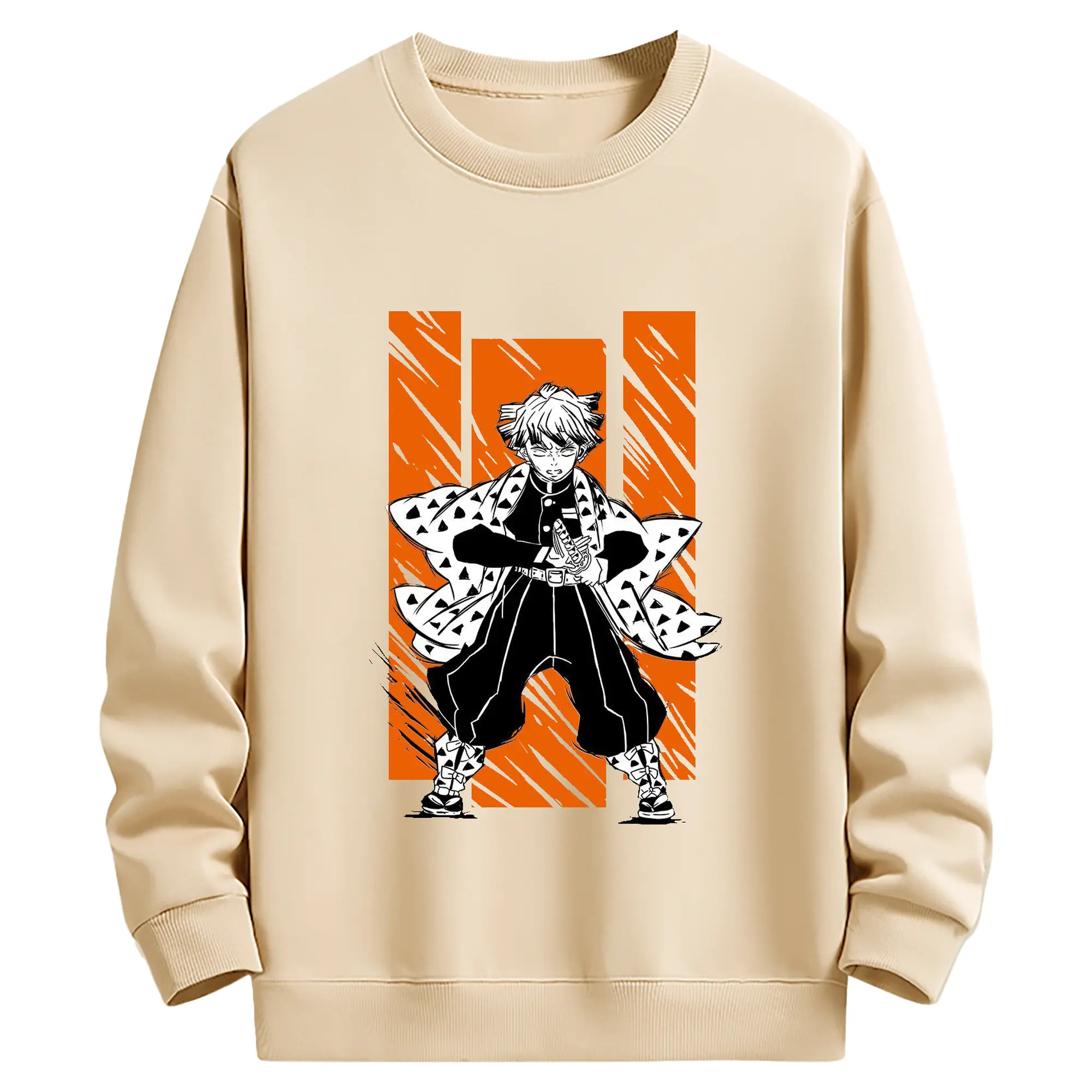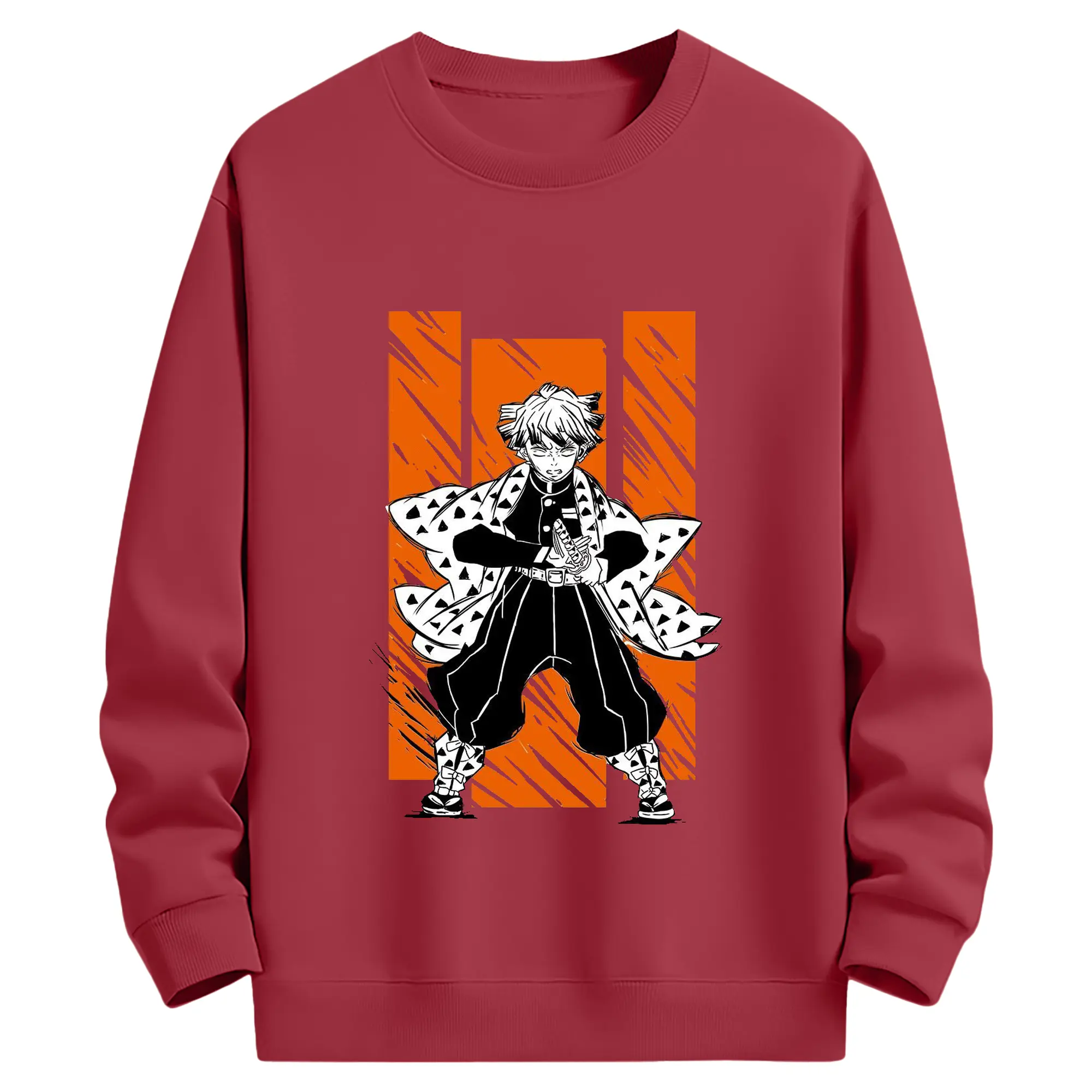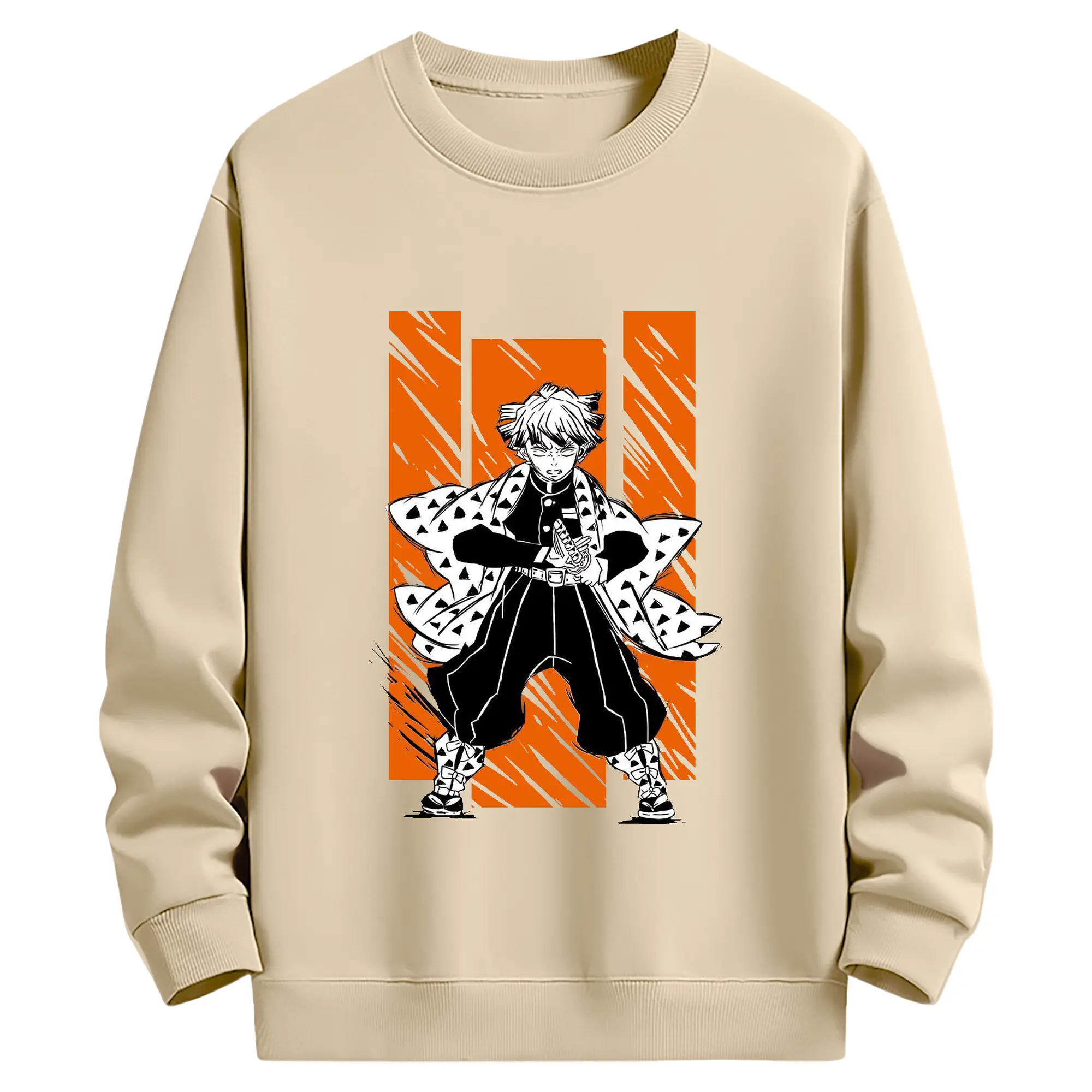 鬼滅の刃 我妻善逸 - 高品質 クルーネック スウェット ・ コットン59% ポリエステル41% ・ ユニセックス 長袖 トレーナー ・ カジュアル デイリー スポーツ 散歩用