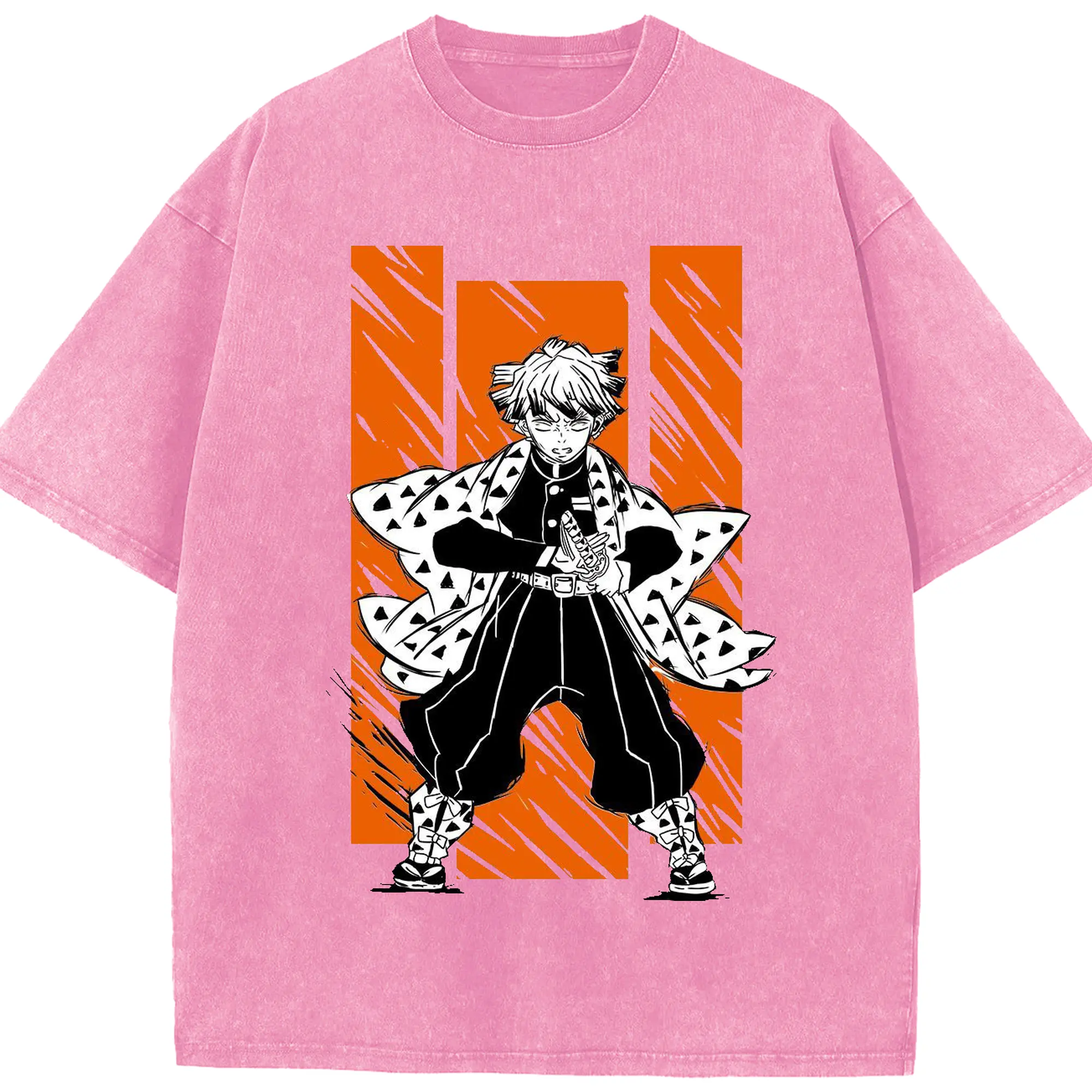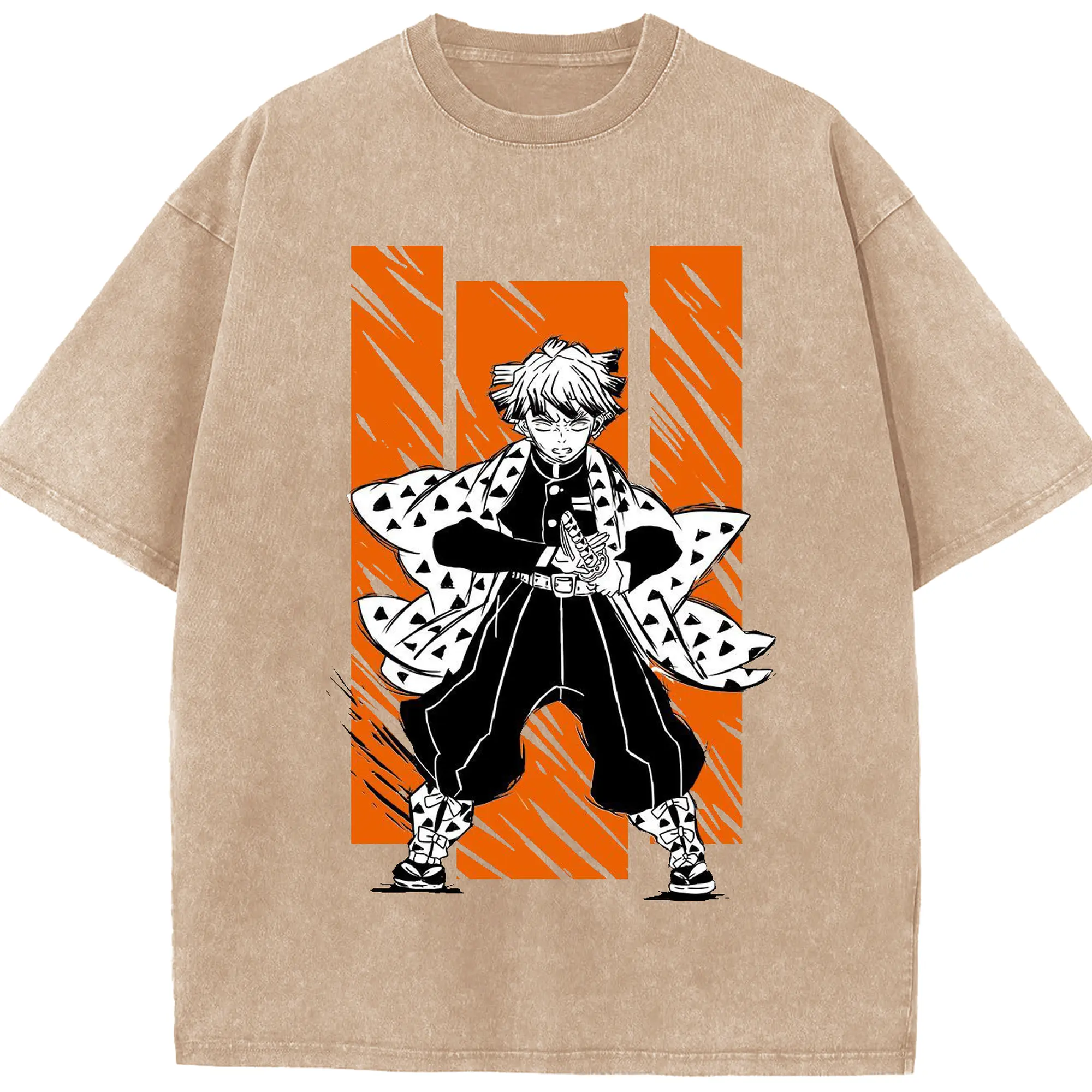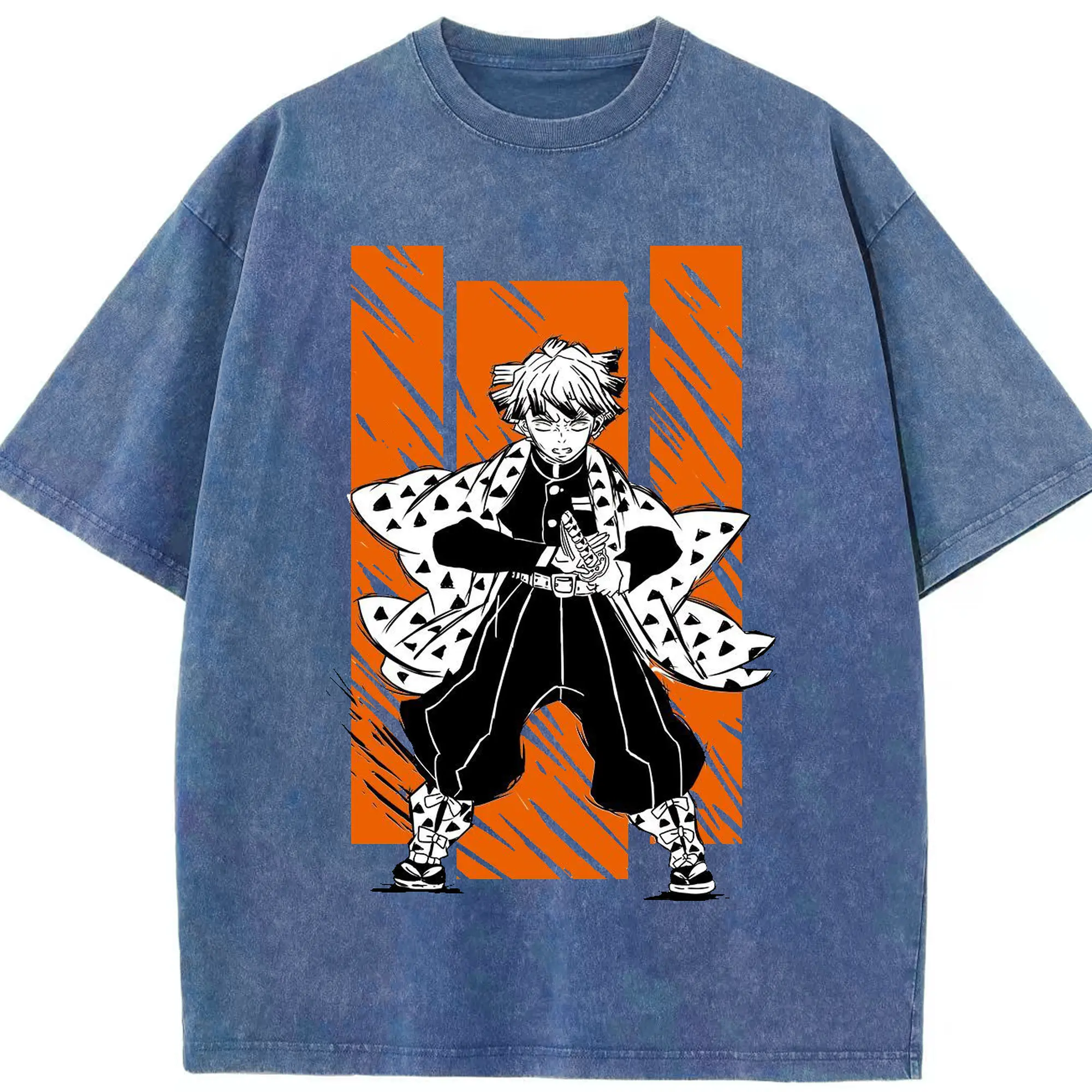 鬼滅の刃 我妻善逸 - 綿100% ヴィンテージ風 半袖Tシャツ ・ フロントプリント ・ 柔らか肌触り ・ 通気性 快適 ・ スポーツ カジュアル 外出用