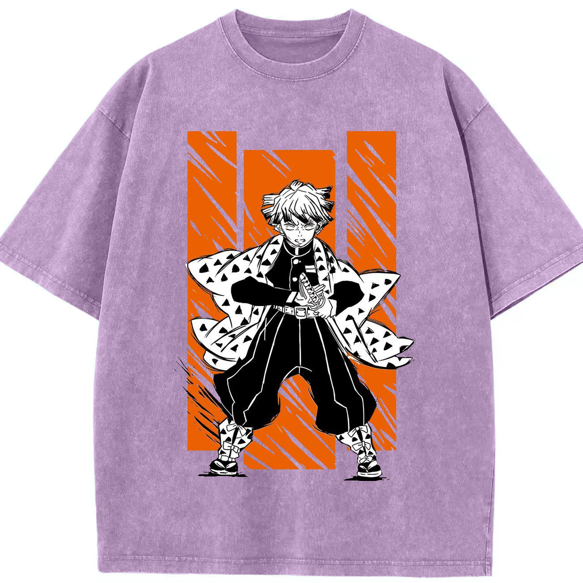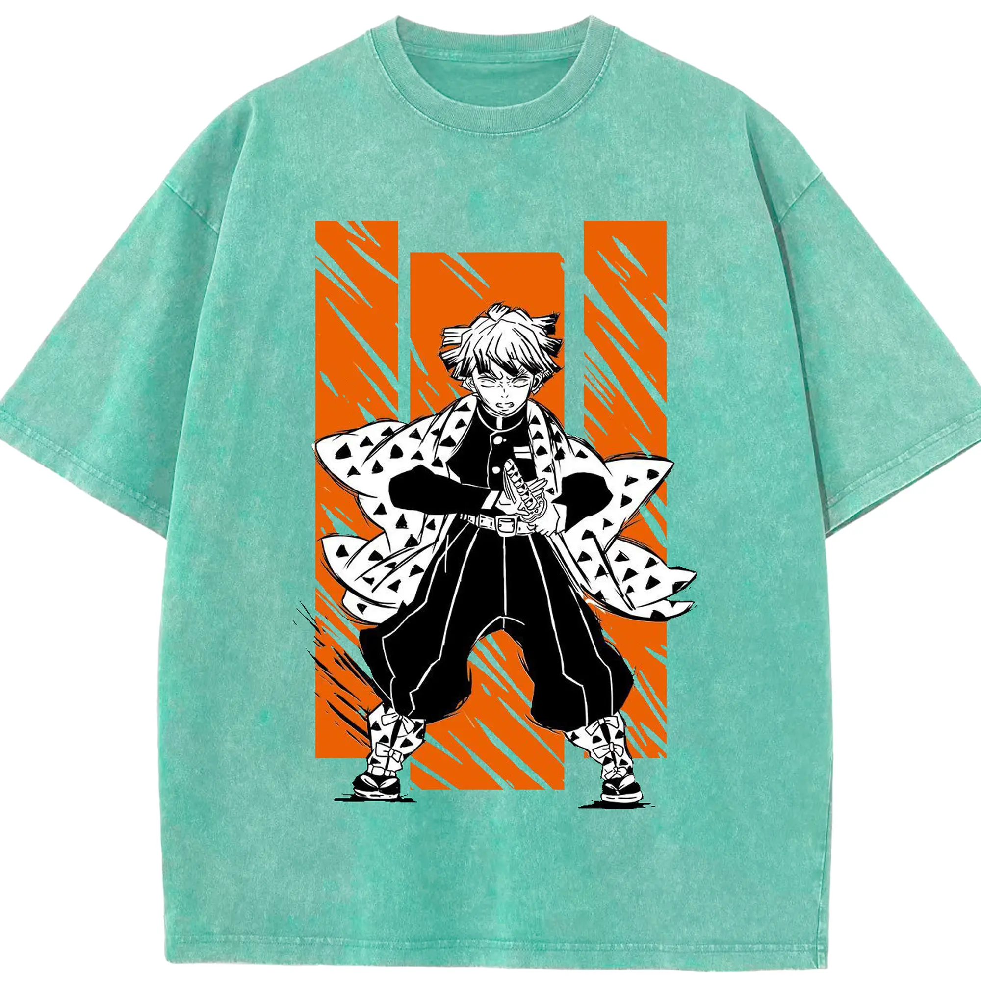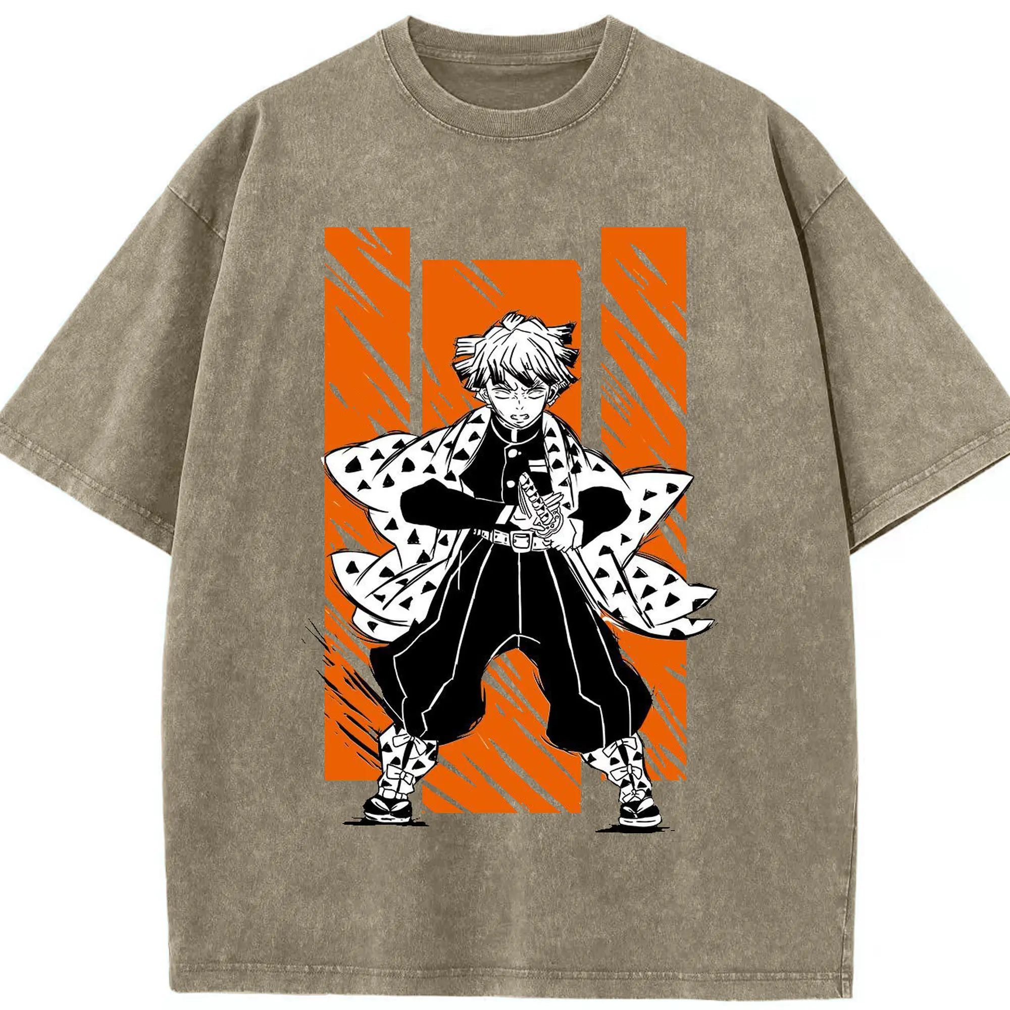 鬼滅の刃 我妻善逸 - 綿100% ヴィンテージ風 半袖Tシャツ ・ フロントプリント ・ 柔らか肌触り ・ 通気性 快適 ・ スポーツ カジュアル 外出用