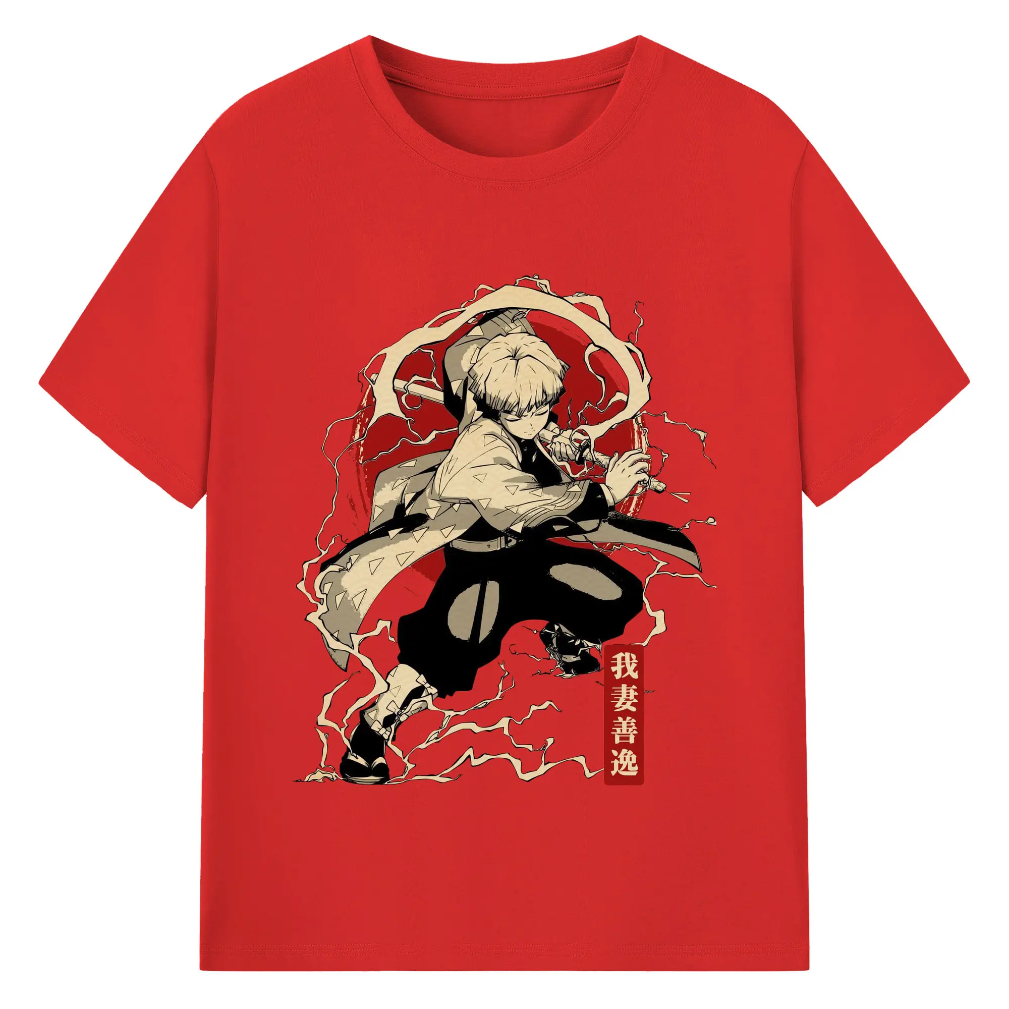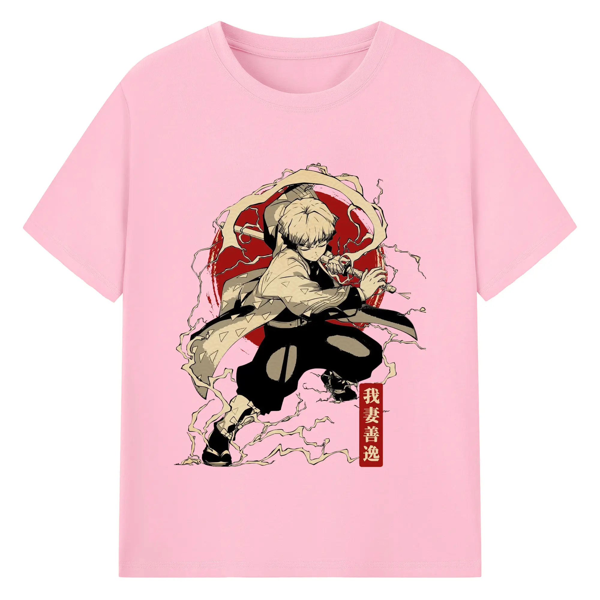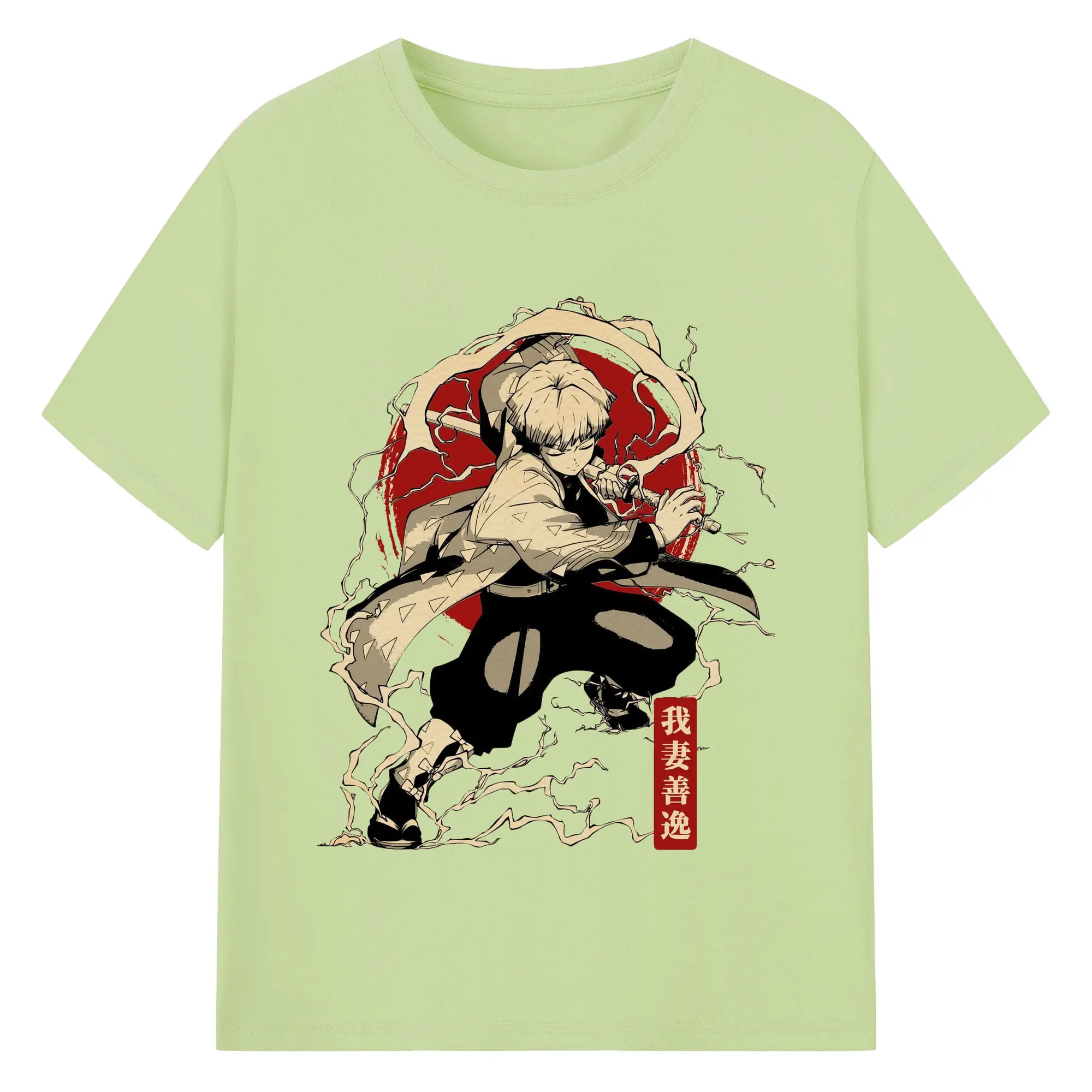 鬼滅の刃 我妻善逸 - 綿100% 半袖Tシャツ ・ フロントプリント ・ 快適 通気性 ・ 日常使い 散歩 スポーツ用