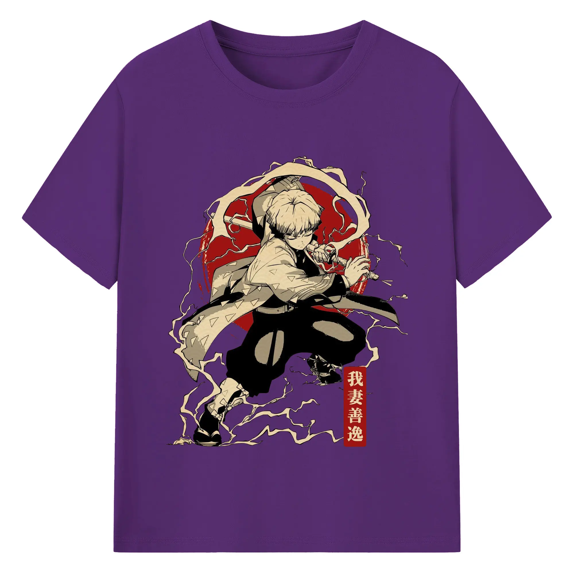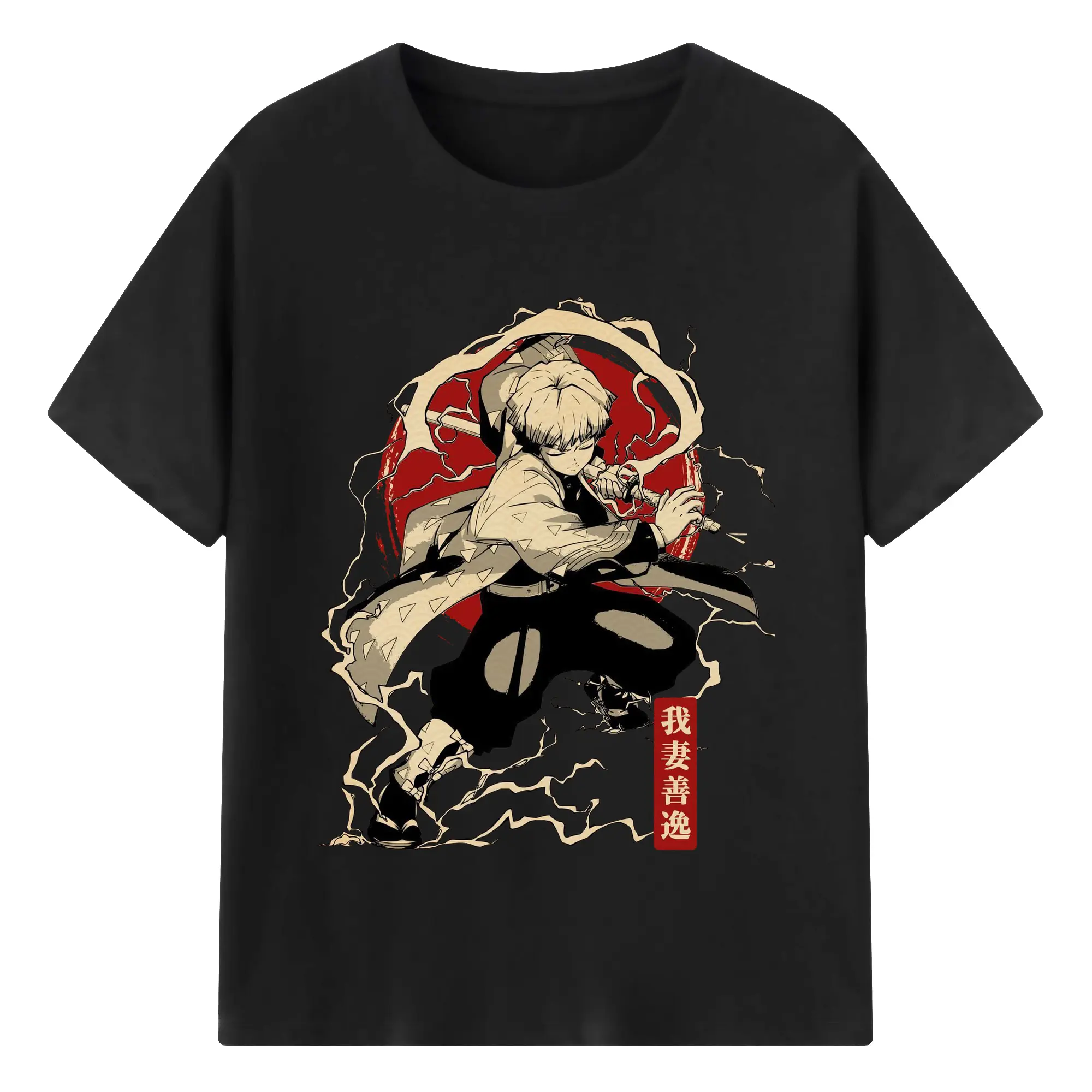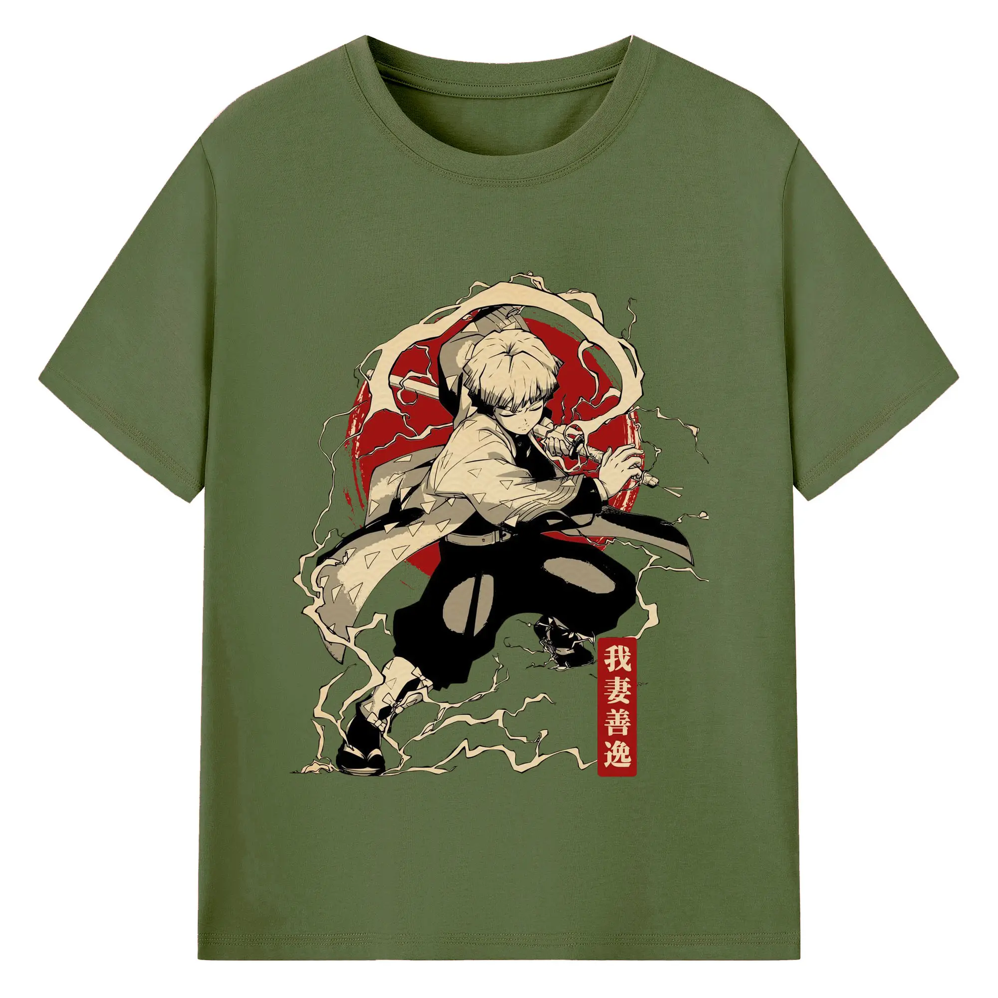 鬼滅の刃 我妻善逸 - 綿100% 半袖Tシャツ ・ フロントプリント ・ 快適 通気性 ・ 日常使い 散歩 スポーツ用