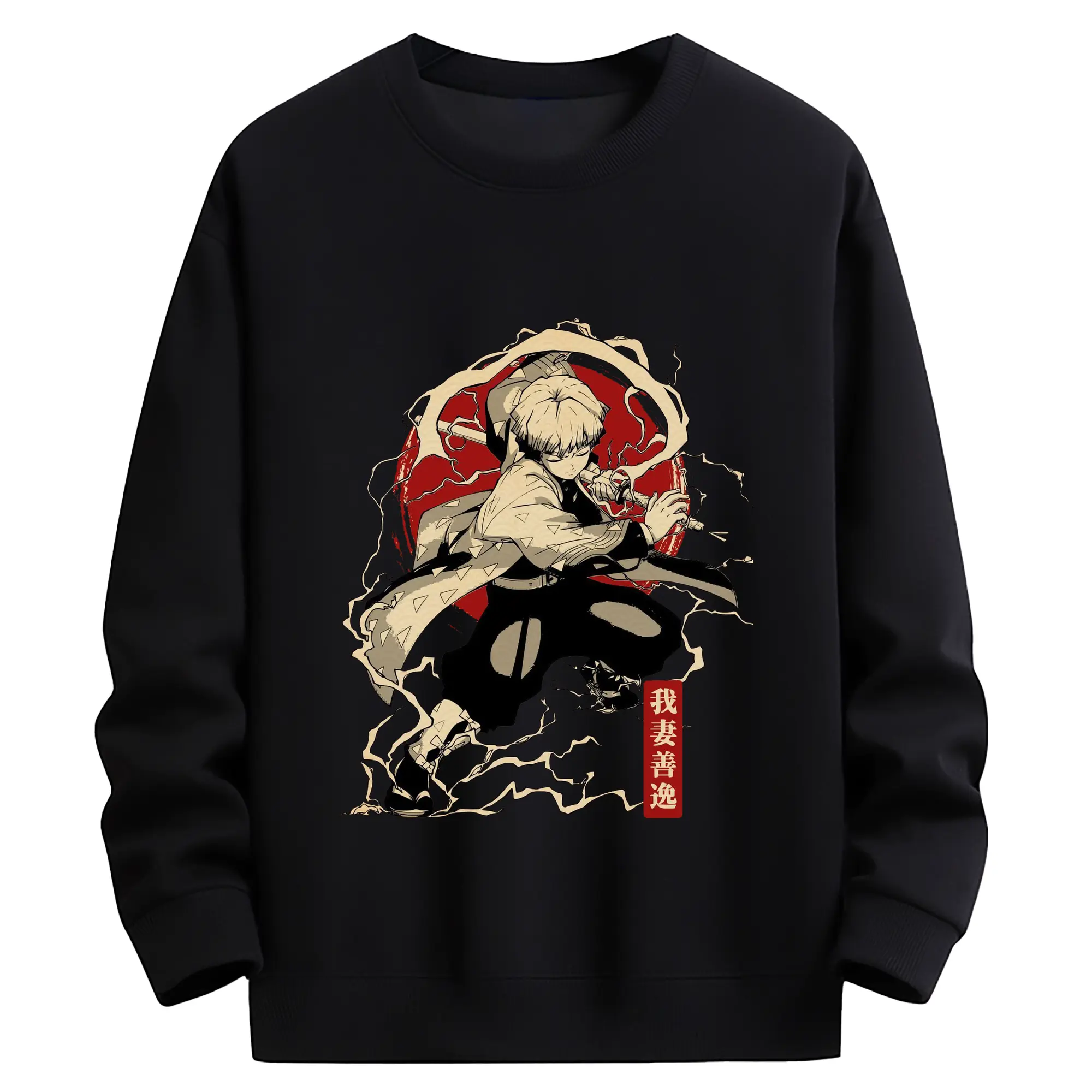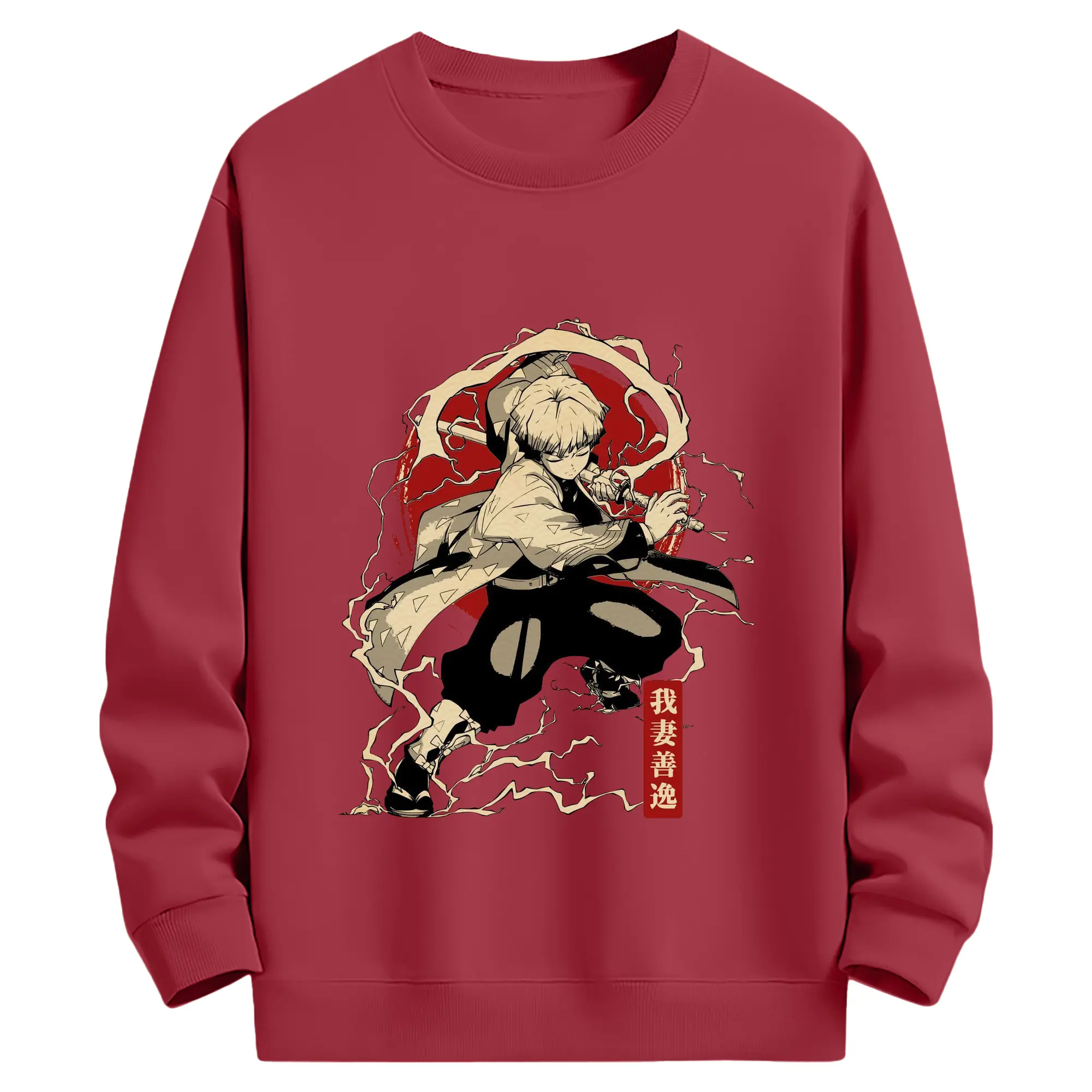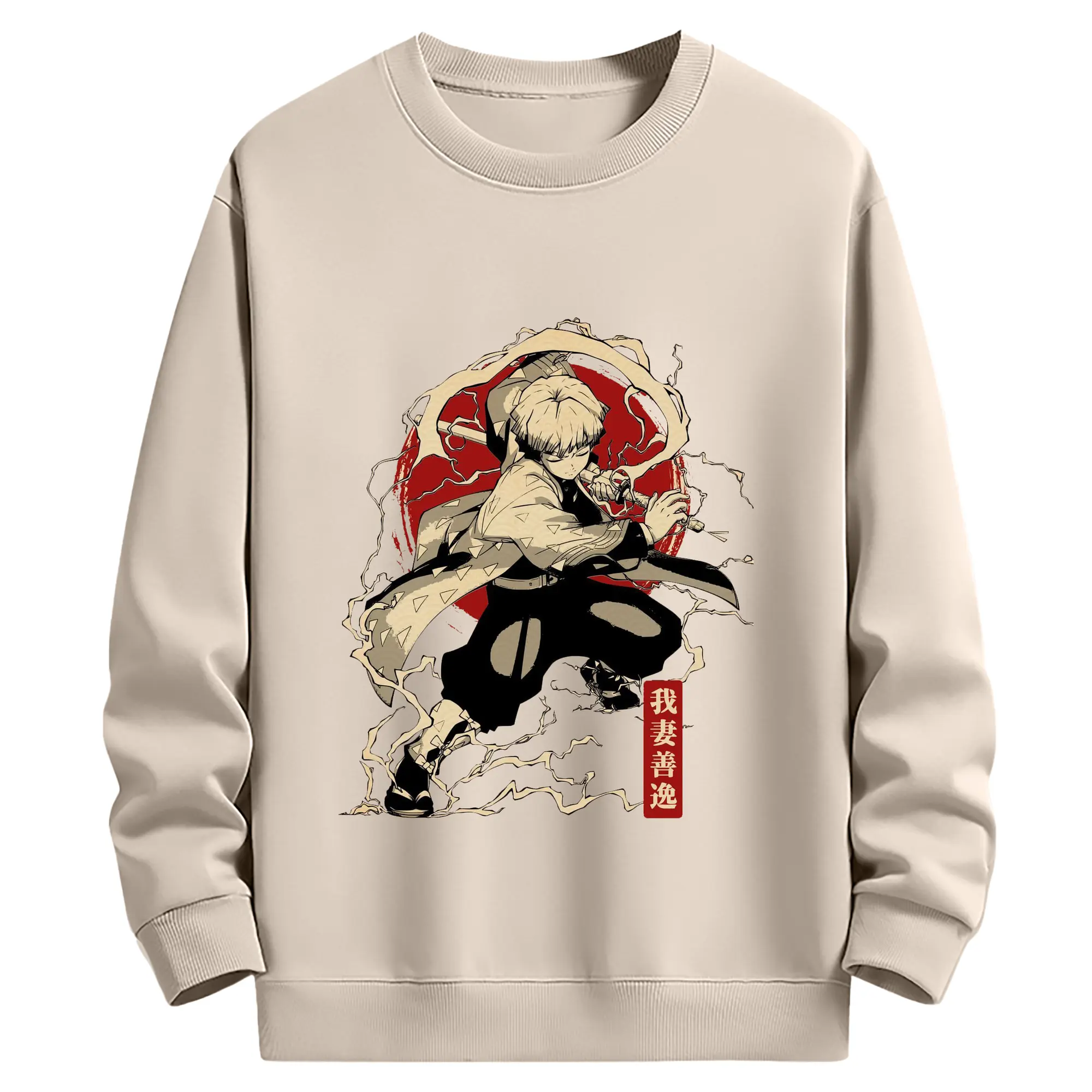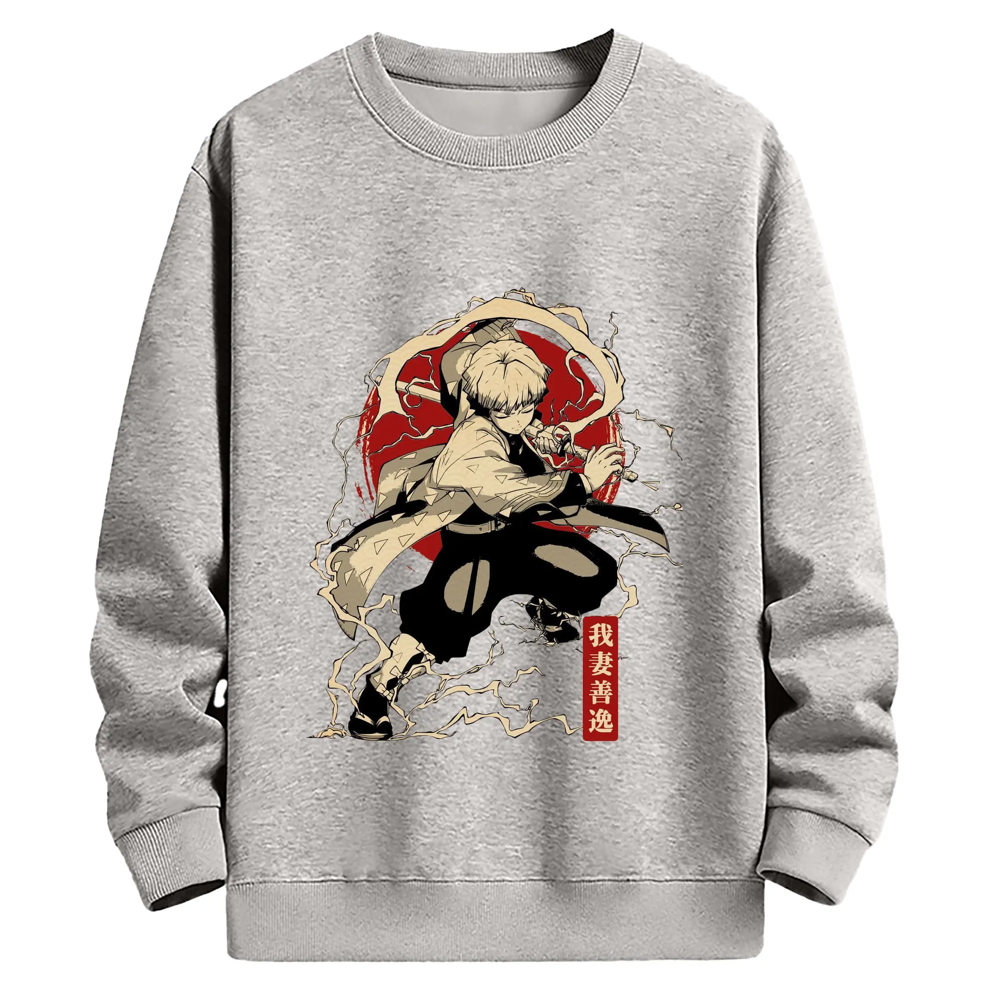 鬼滅の刃 我妻善逸 - 高品質 クルーネック スウェット ・ コットン59% ポリエステル41% ・ ユニセックス 長袖 トレーナー ・ カジュアル デイリー スポーツ 散歩用