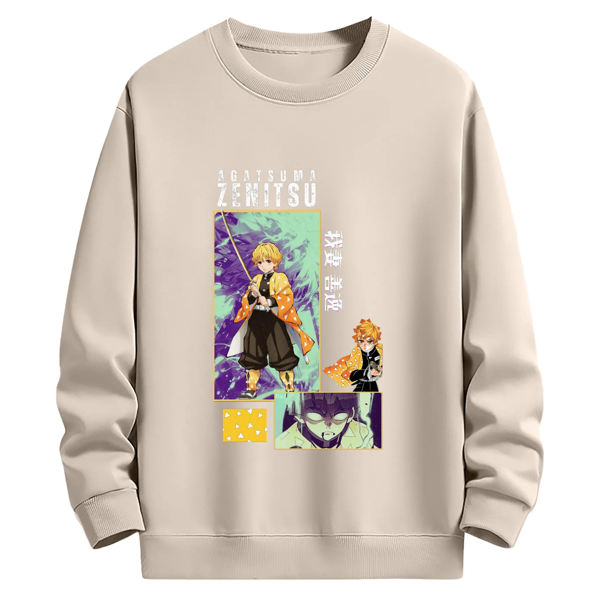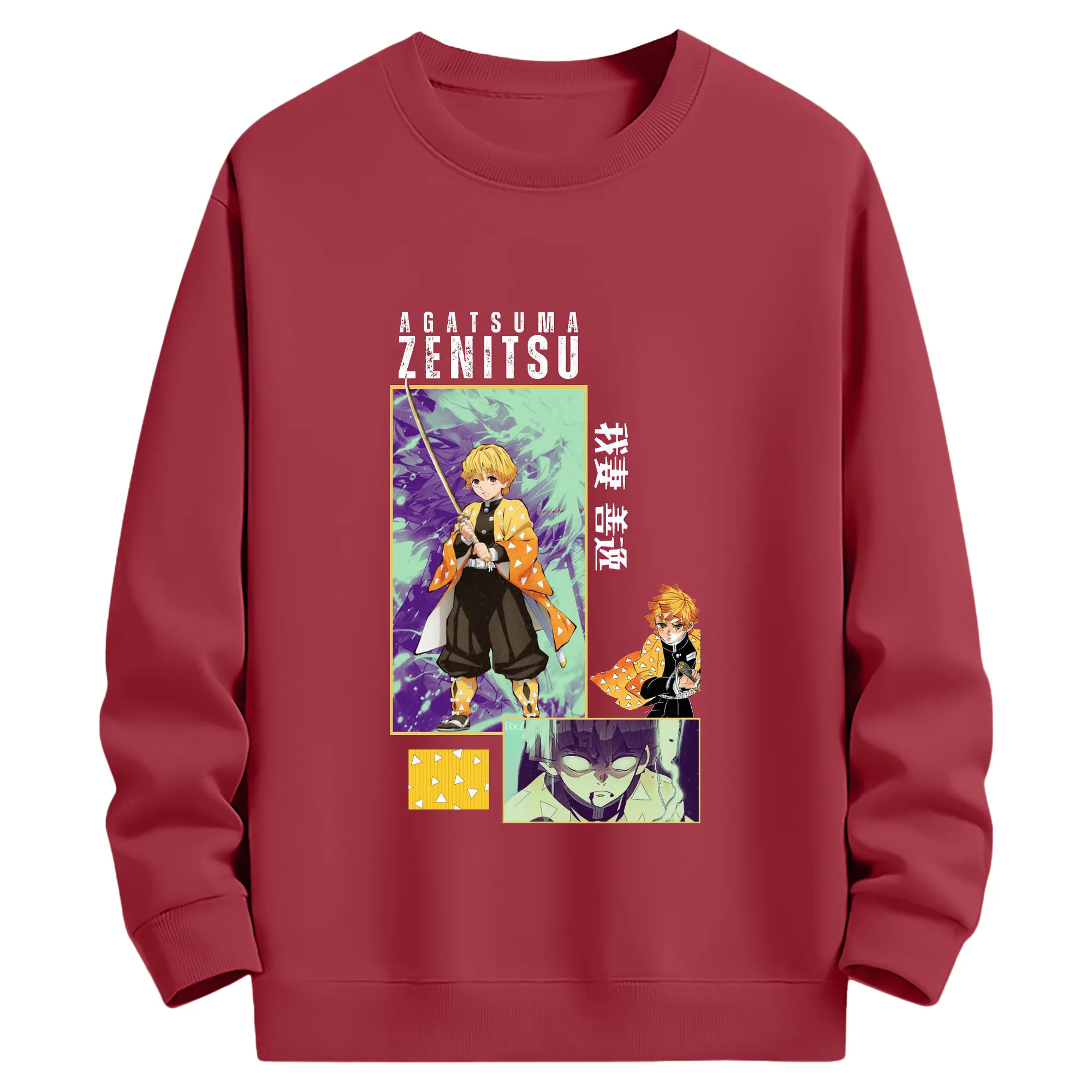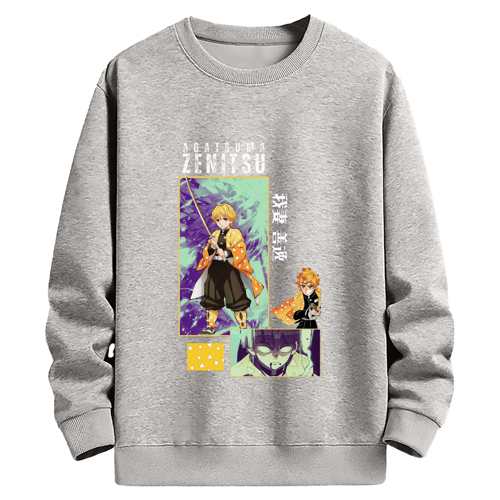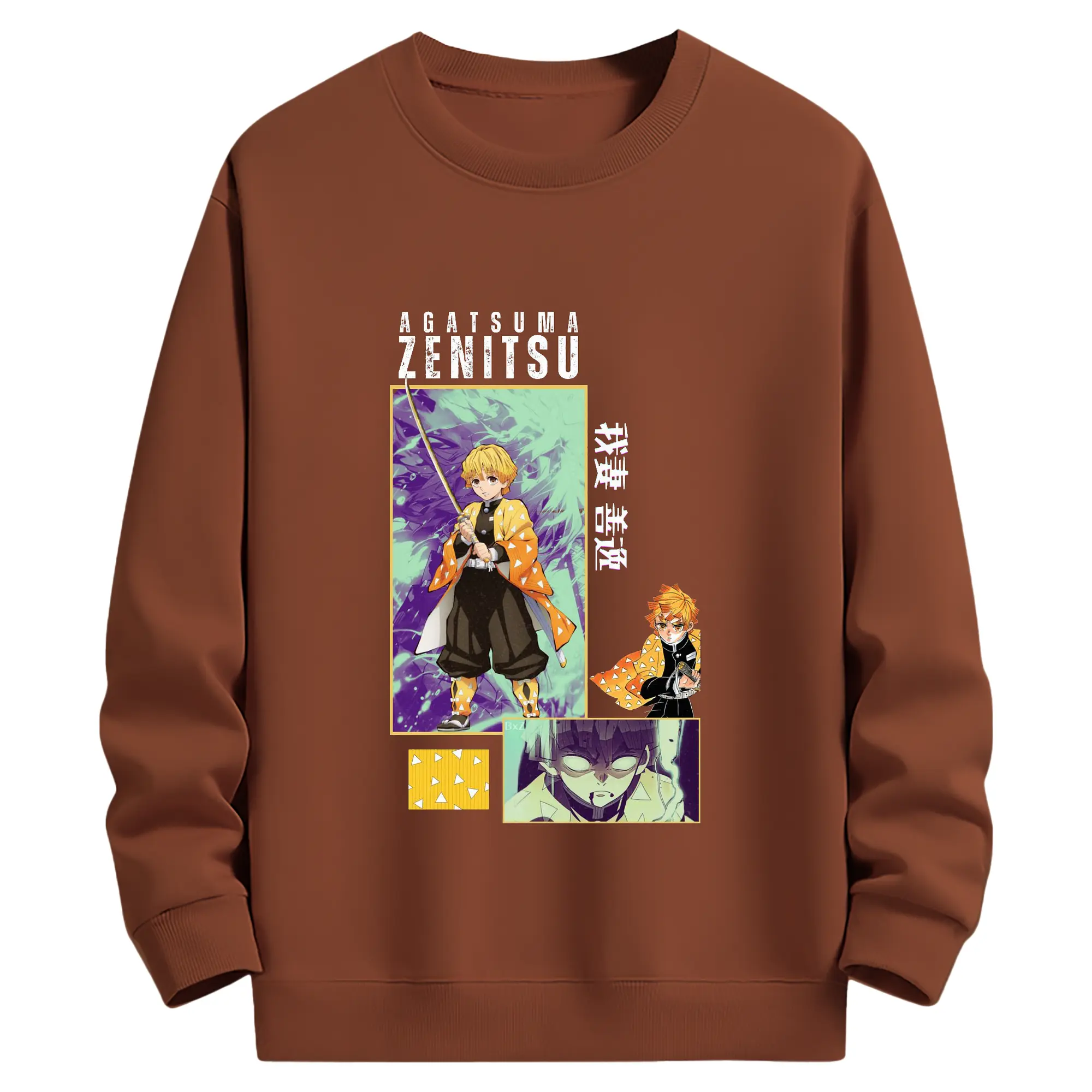 鬼滅の刃 我妻善逸 - 高品質 クルーネック スウェット ・ コットン59% ポリエステル41% ・ ユニセックス 長袖 トレーナー ・ カジュアル デイリー スポーツ 散歩用