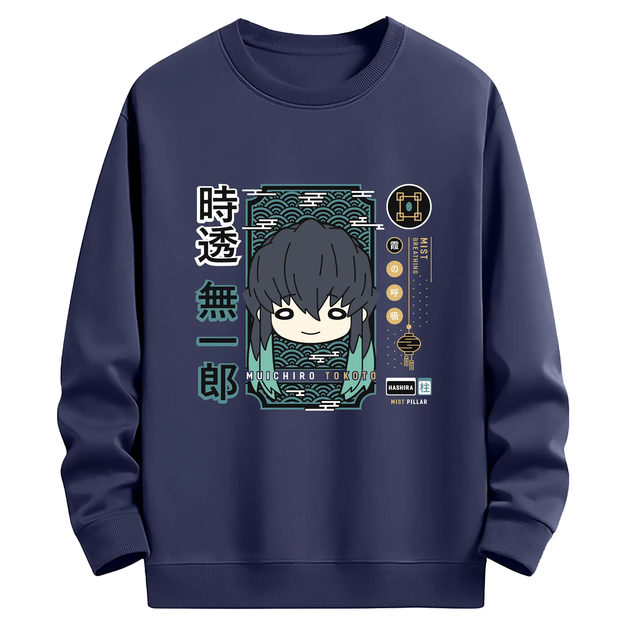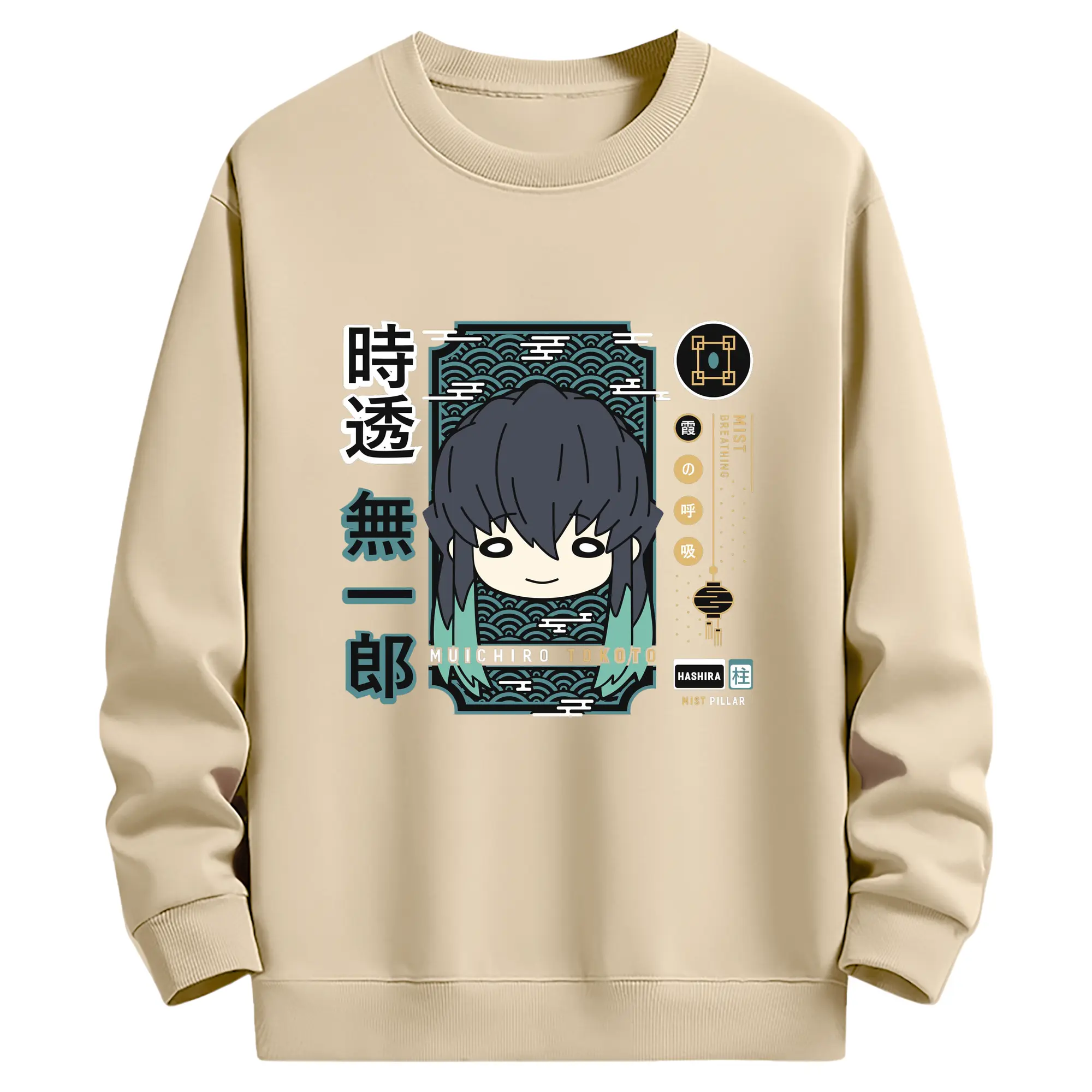 鬼滅の刃 時透無一郎 - 高品質 クルーネック スウェット ・ コットン59% ポリエステル41% ・ ユニセックス 長袖 トレーナー ・ カジュアル デイリー スポーツ 散歩用