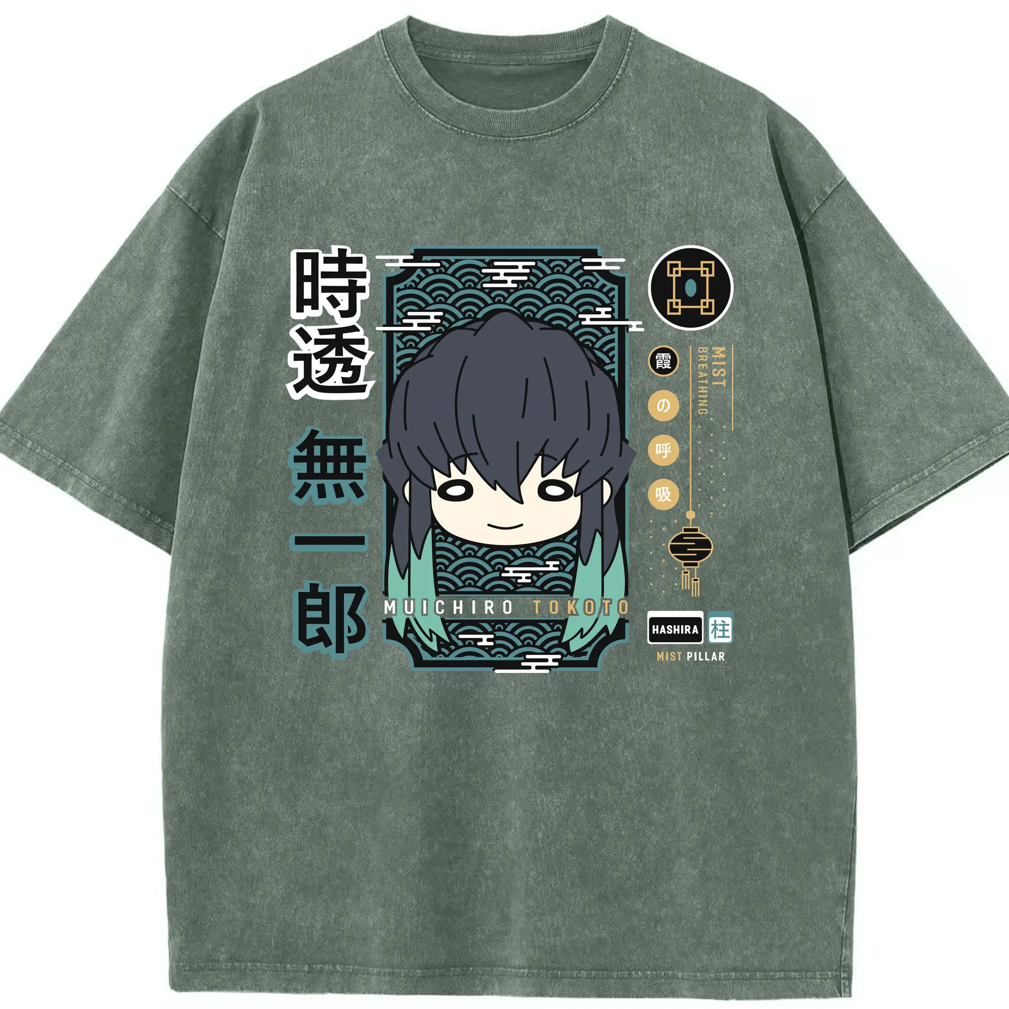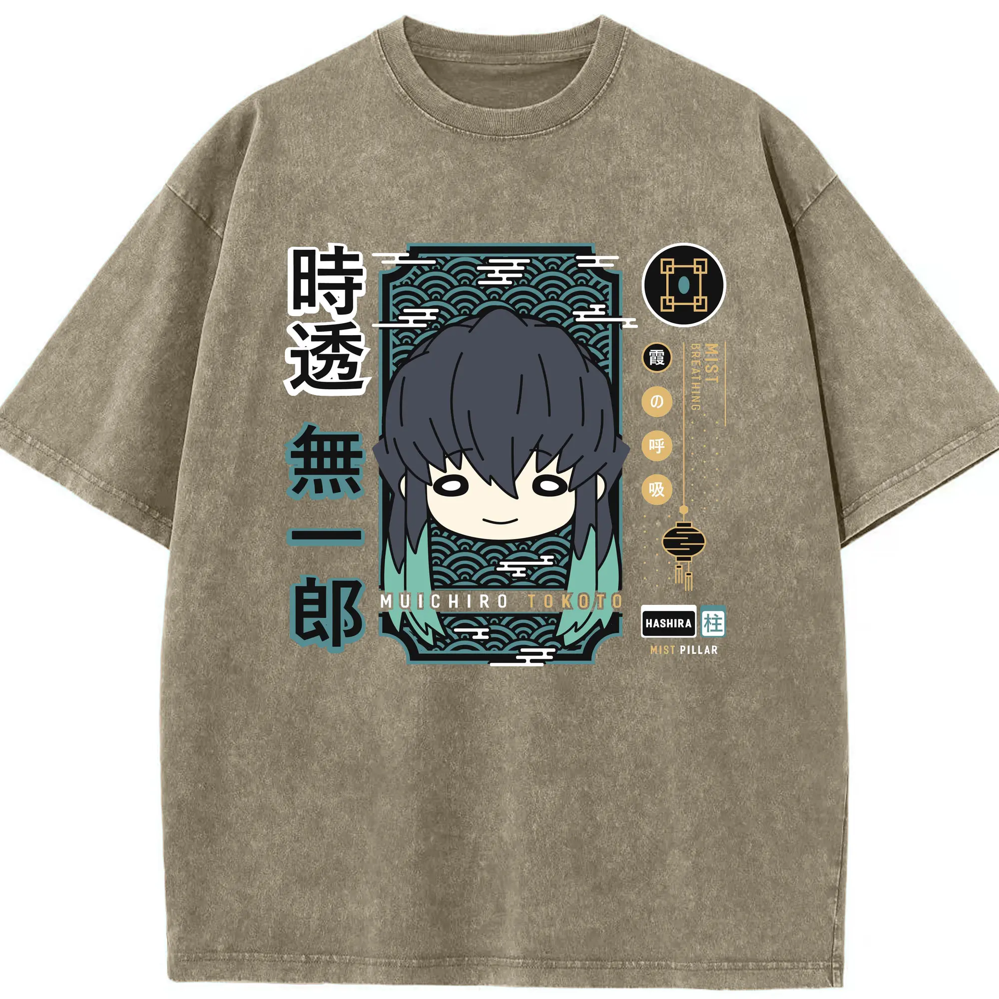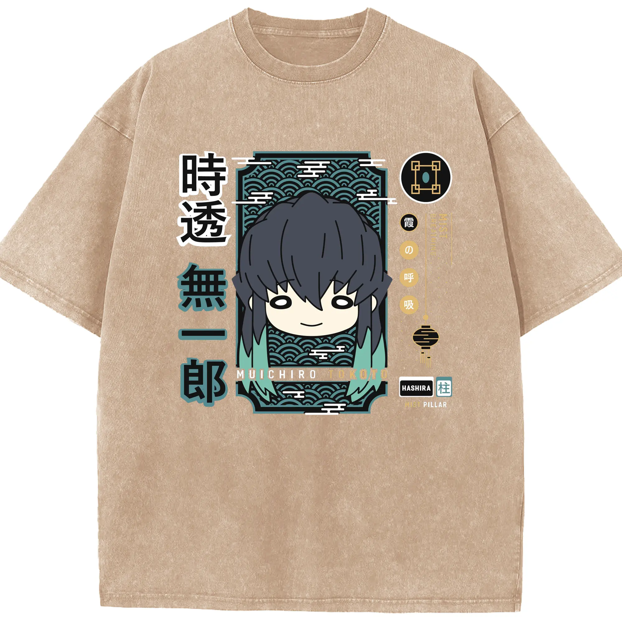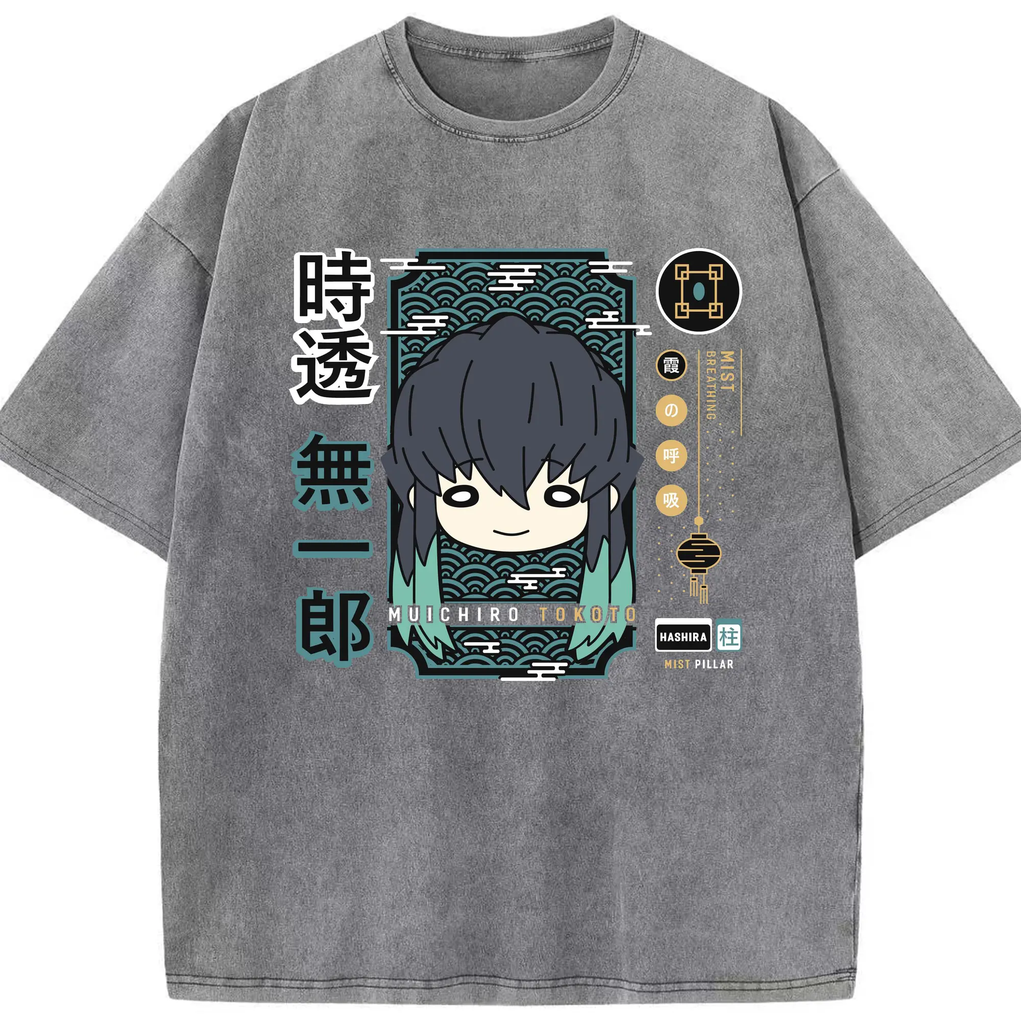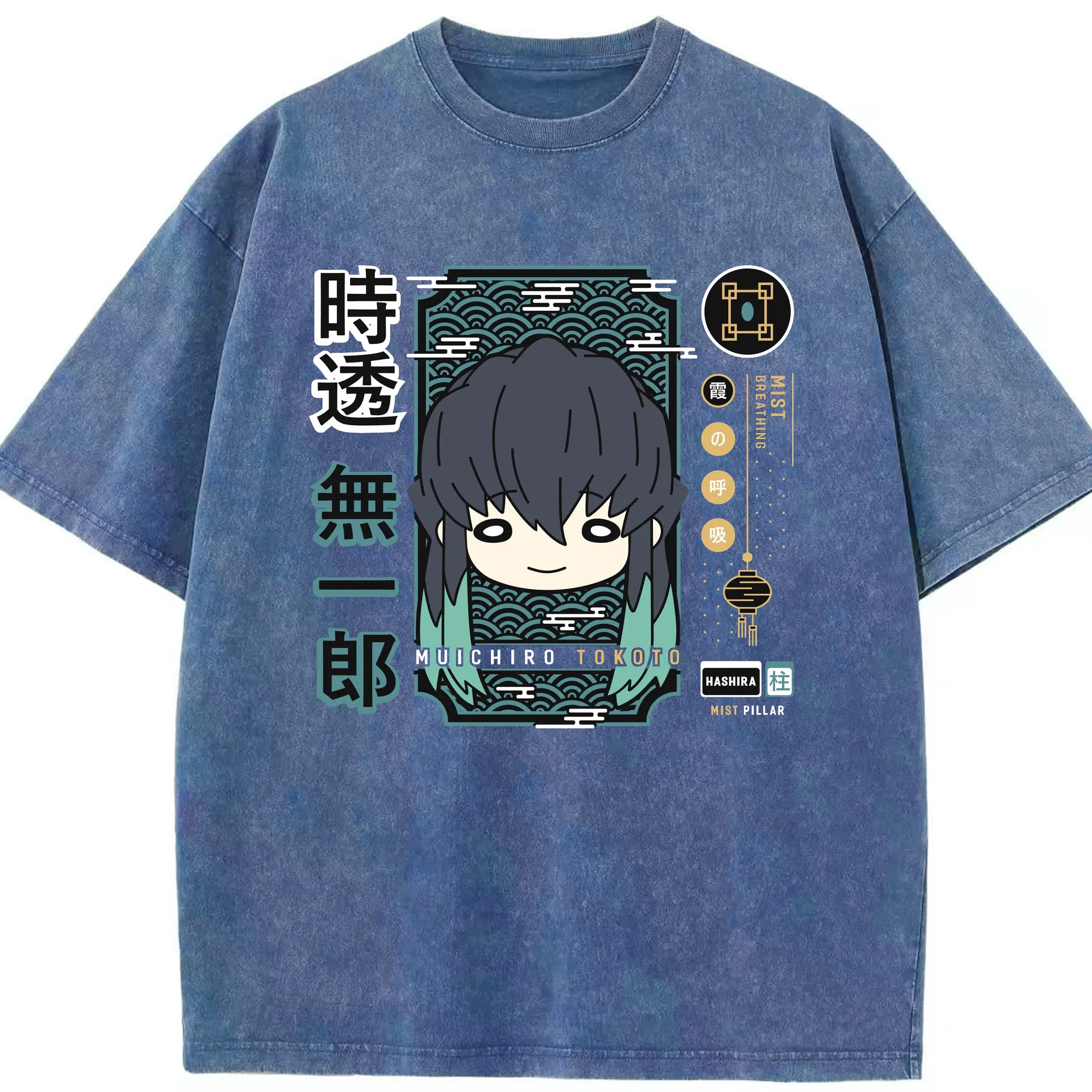 鬼滅の刃 時透無一郎 - 綿100% ヴィンテージ風 半袖Tシャツ ・ フロントプリント ・ 柔らか肌触り ・ 通気性 快適 ・ スポーツ カジュアル 外出用