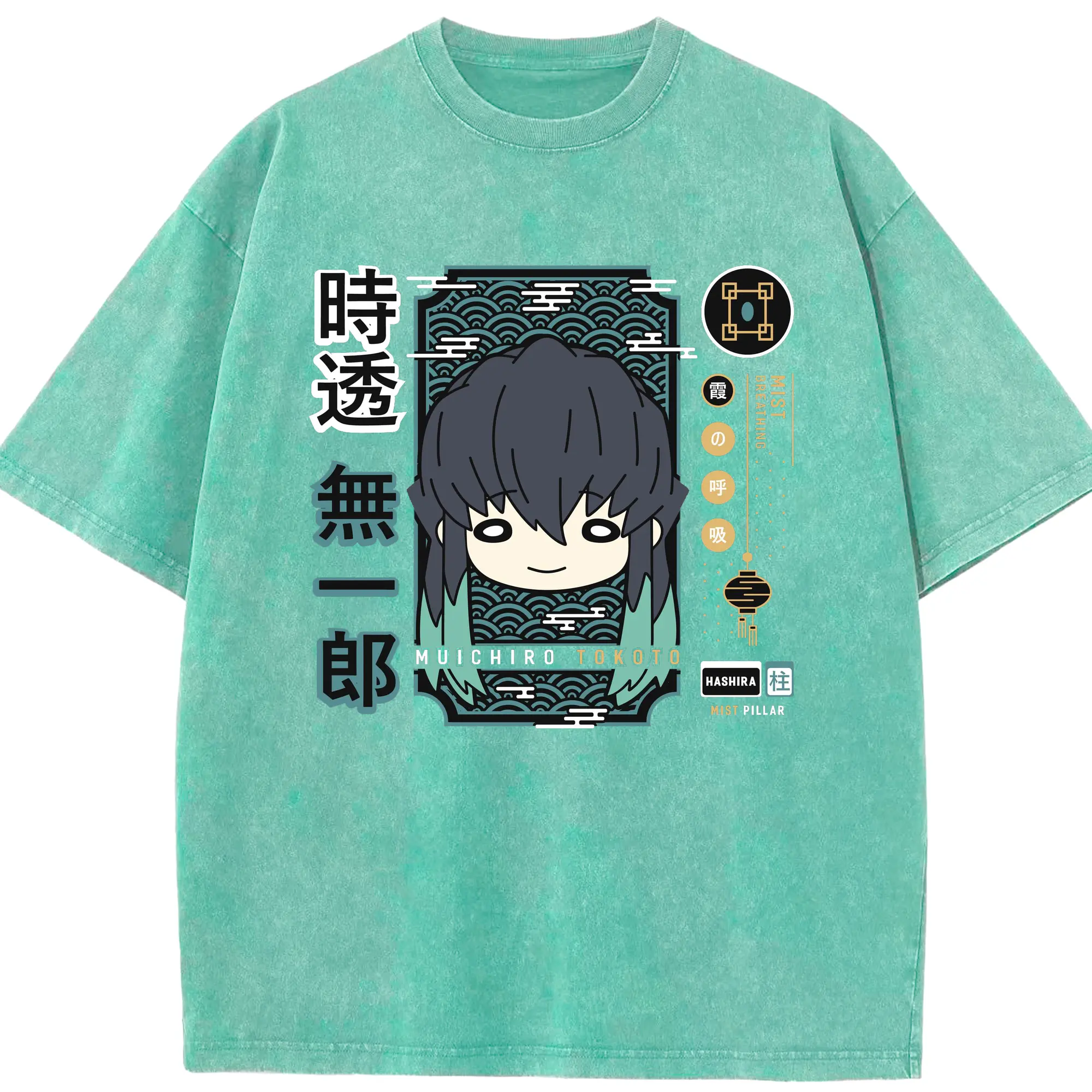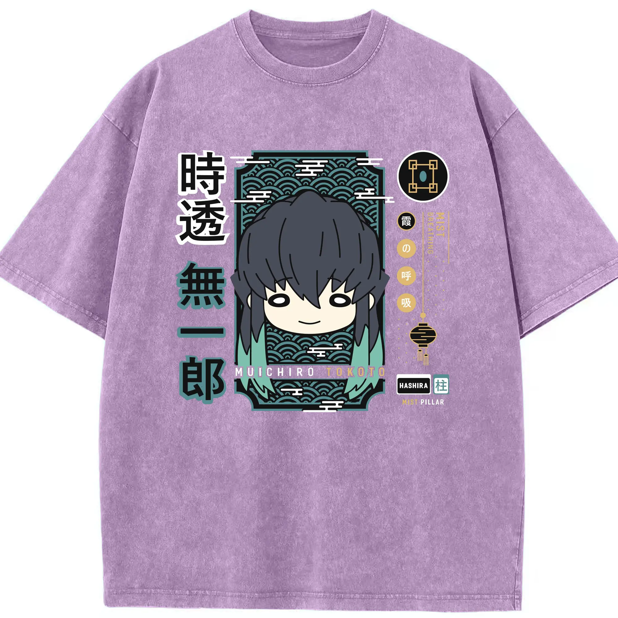 鬼滅の刃 時透無一郎 - 綿100% ヴィンテージ風 半袖Tシャツ ・ フロントプリント ・ 柔らか肌触り ・ 通気性 快適 ・ スポーツ カジュアル 外出用