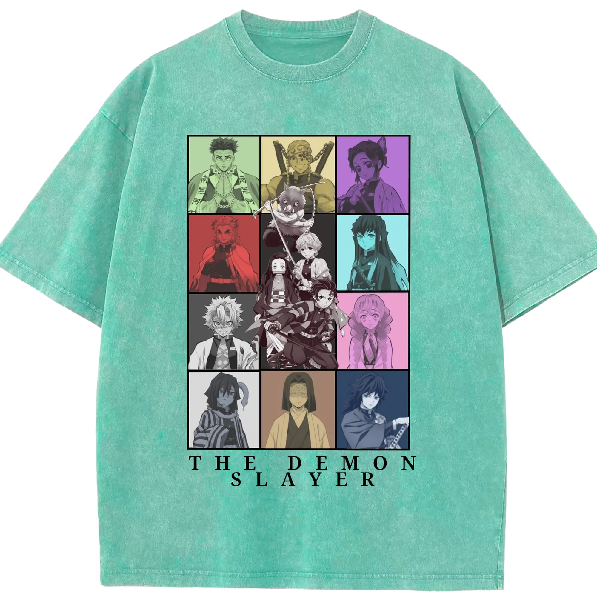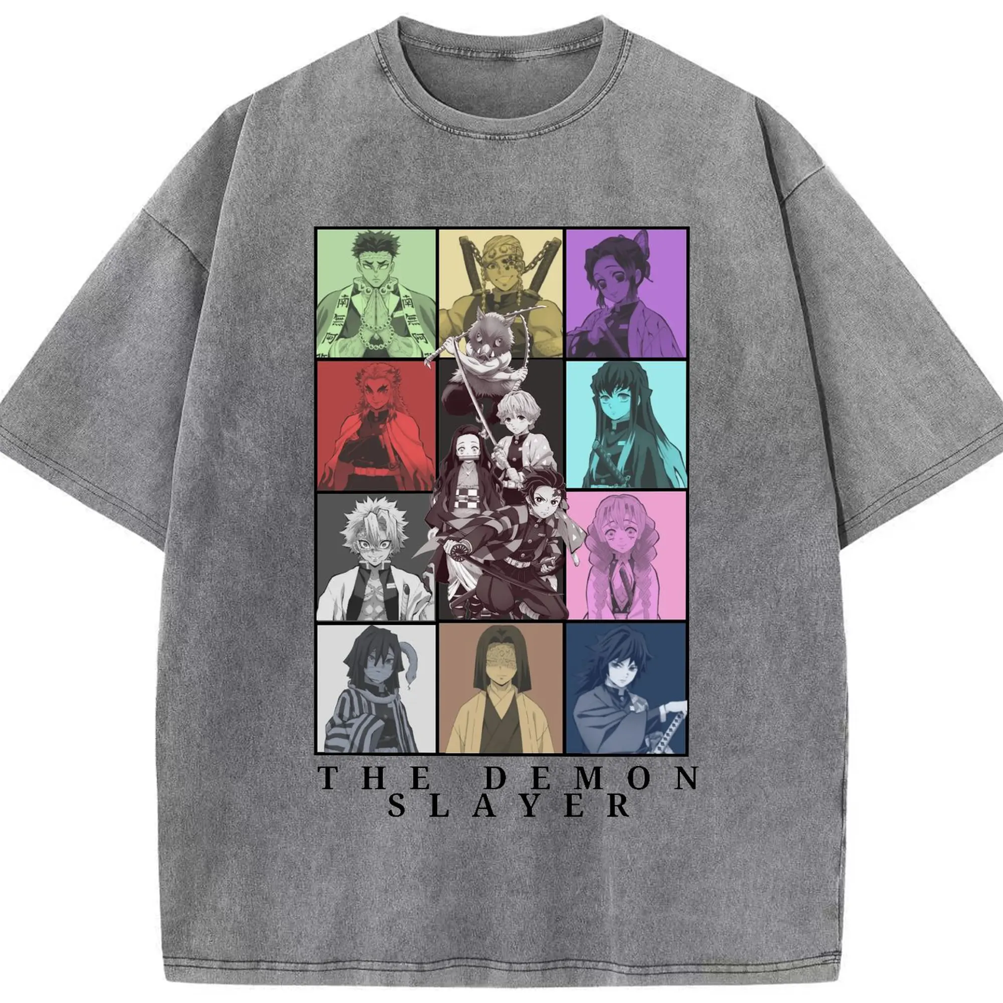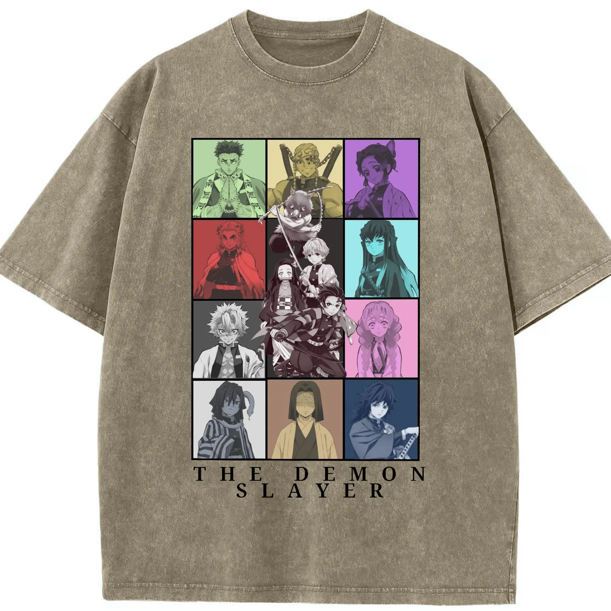 鬼滅の刃 柱合会議 - 綿100% ヴィンテージ風 半袖Tシャツ ・ フロントプリント ・ 柔らか肌触り ・ 通気性 快適 ・ スポーツ カジュアル 外出用