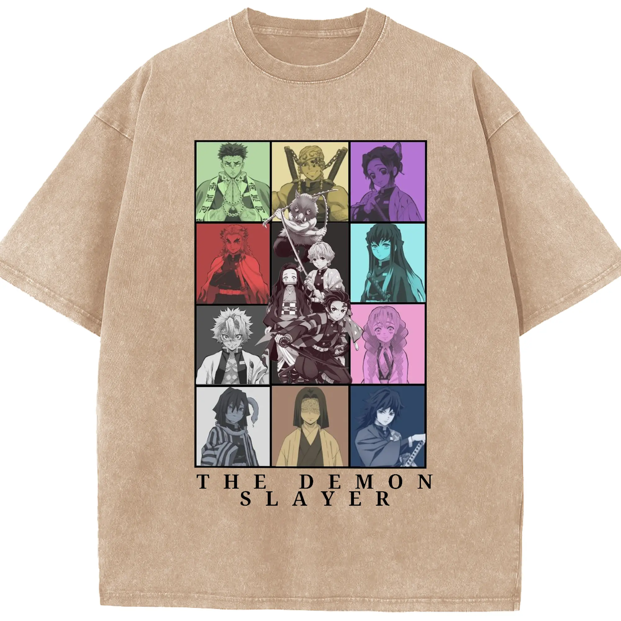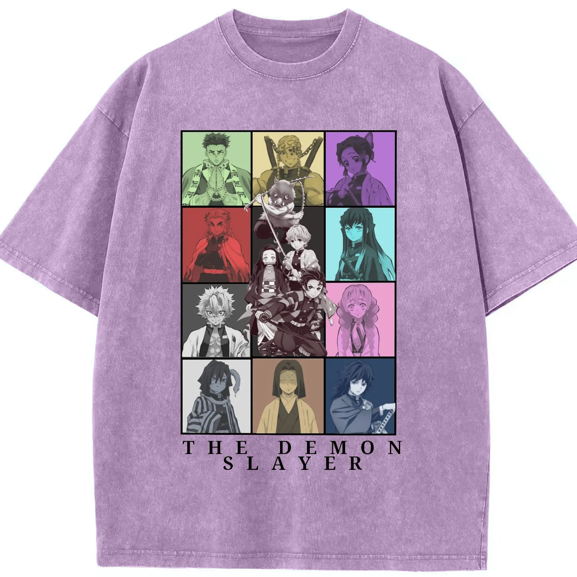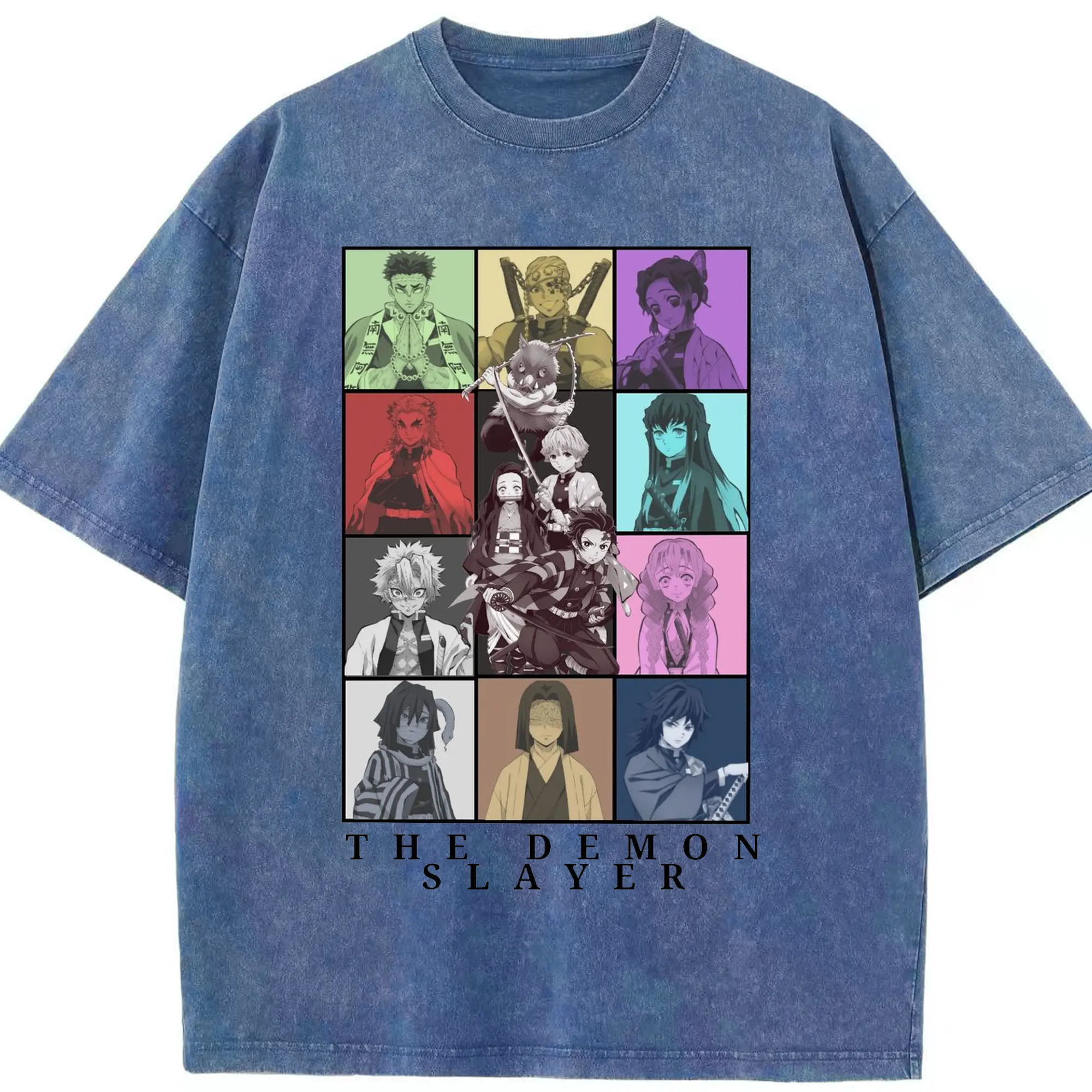 鬼滅の刃 柱合会議 - 綿100% ヴィンテージ風 半袖Tシャツ ・ フロントプリント ・ 柔らか肌触り ・ 通気性 快適 ・ スポーツ カジュアル 外出用