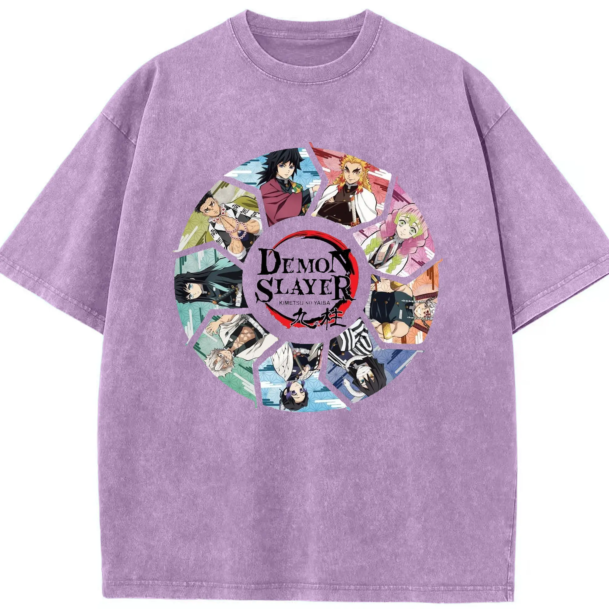 鬼滅の刃 柱合会議 - 綿100% 半袖Tシャツ ・ フロントプリント ・ 快適 通気性 ・ 日常使い 散歩 スポーツ用