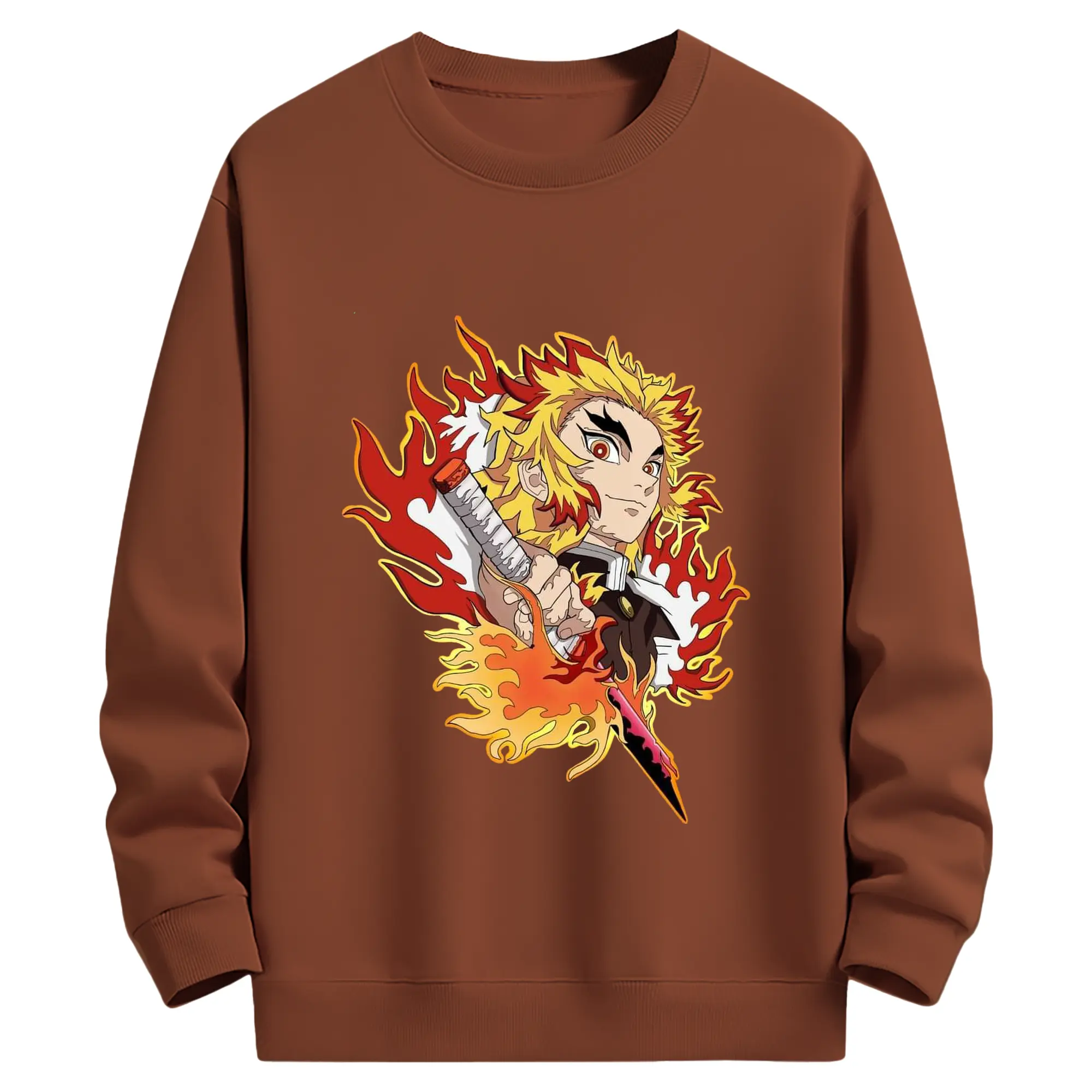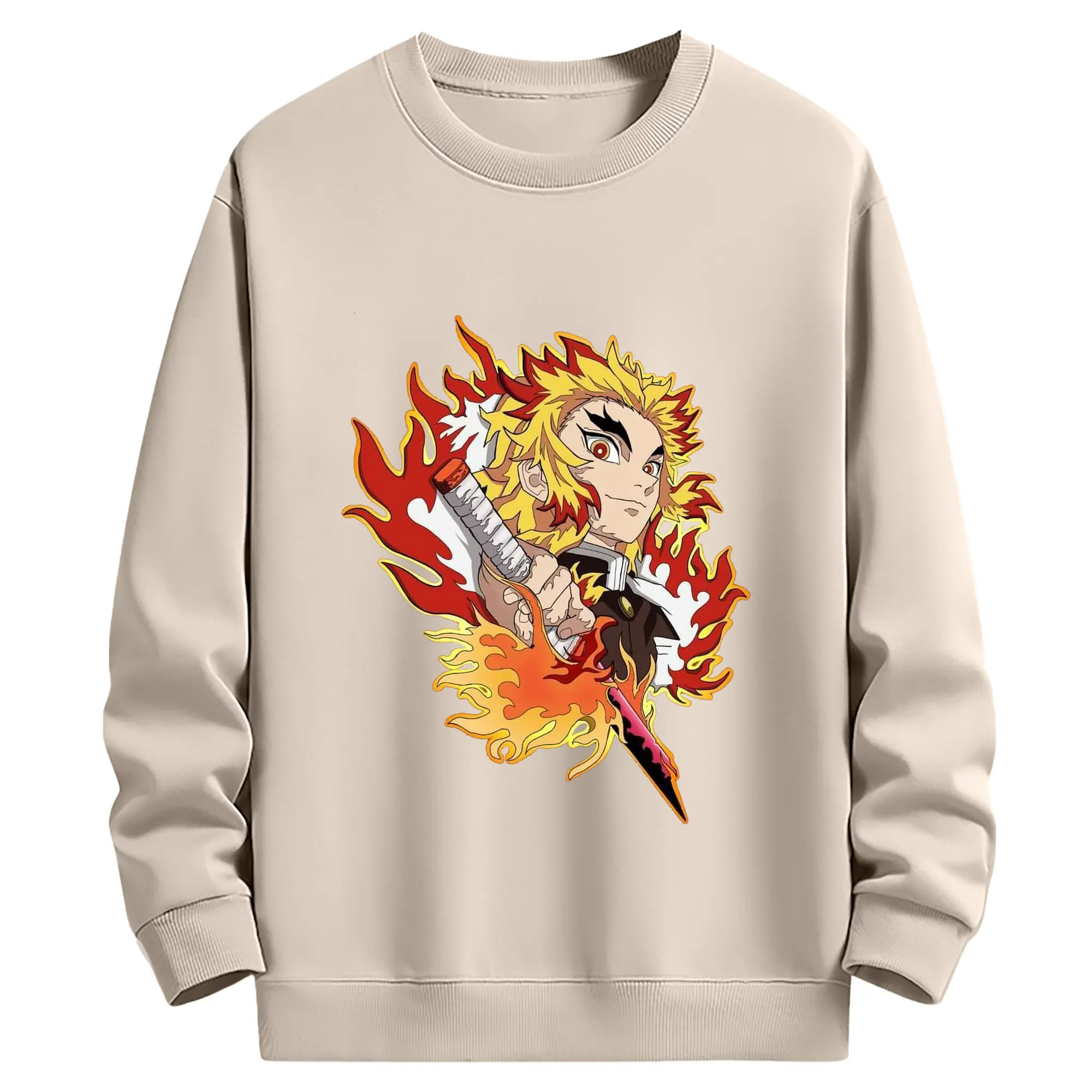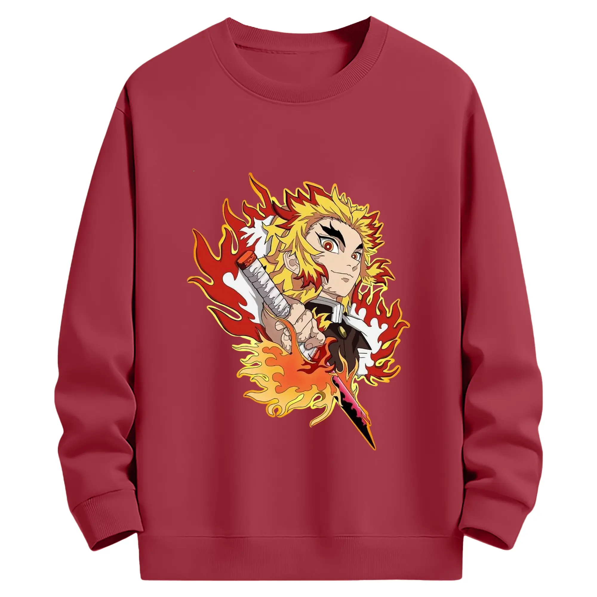 鬼滅の刃 無限列車編 煉獄杏寿郎 - 高品質 クルーネック スウェット ・ コットン59% ポリエステル41% ・ ユニセックス 長袖 トレーナー ・ カジュアル デイリー スポーツ 散歩用