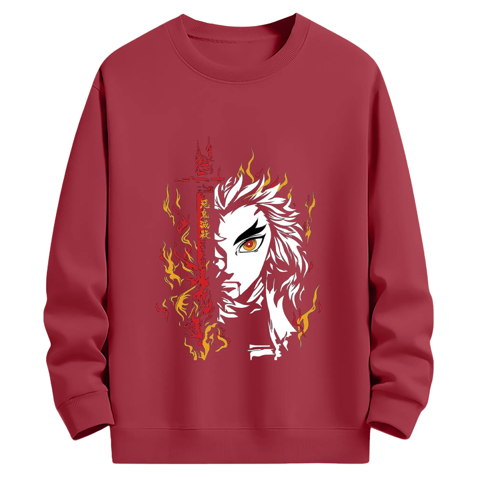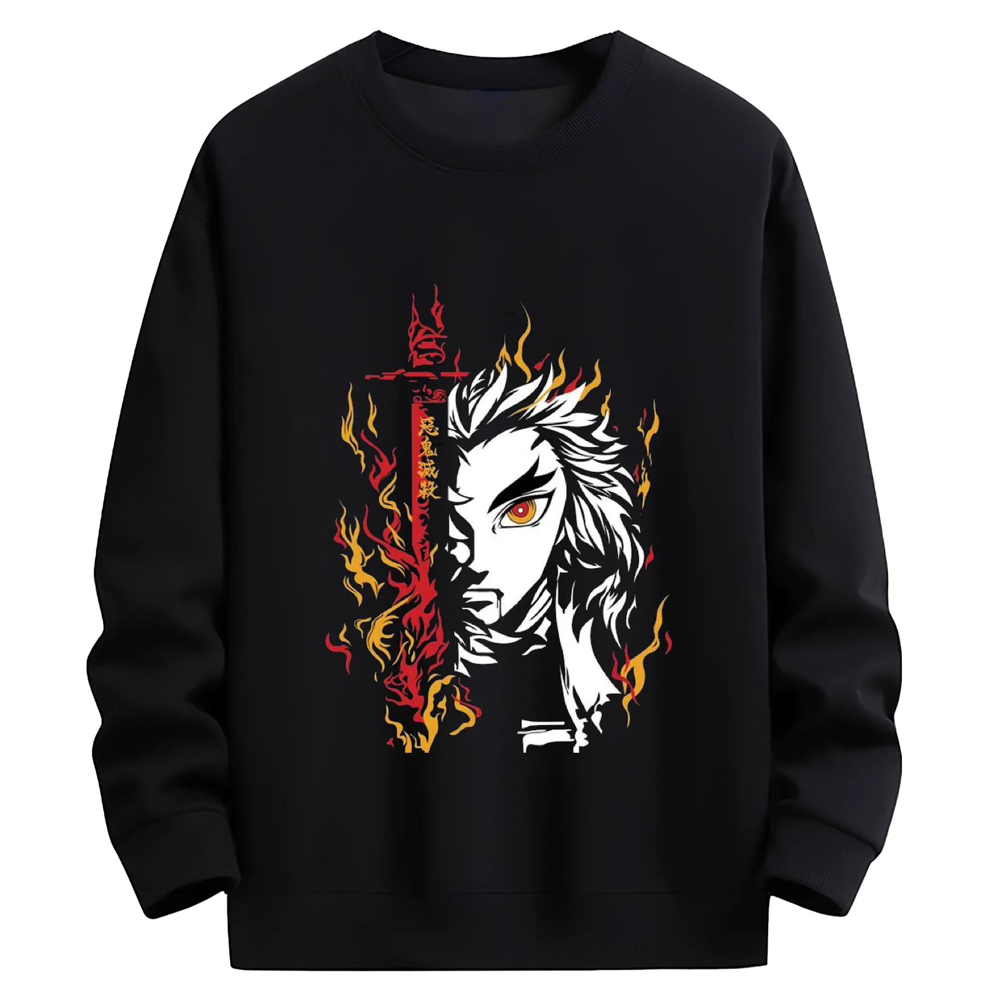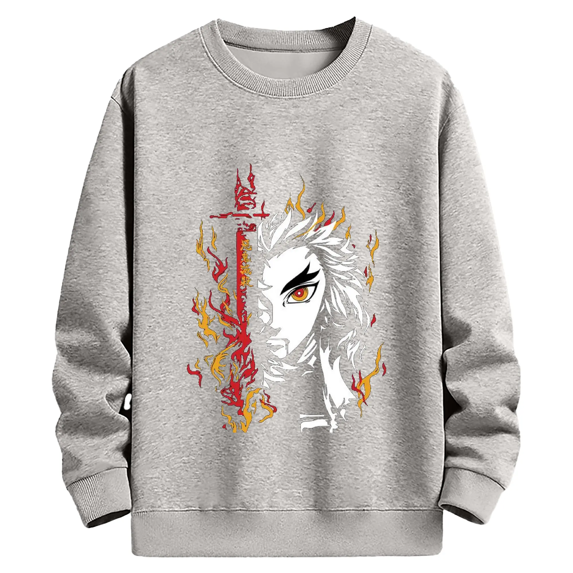 鬼滅の刃 無限列車編 煉獄杏寿郎 - 高品質 クルーネック スウェット ・ コットン59% ポリエステル41% ・ ユニセックス 長袖 トレーナー ・ カジュアル デイリー スポーツ 散歩用