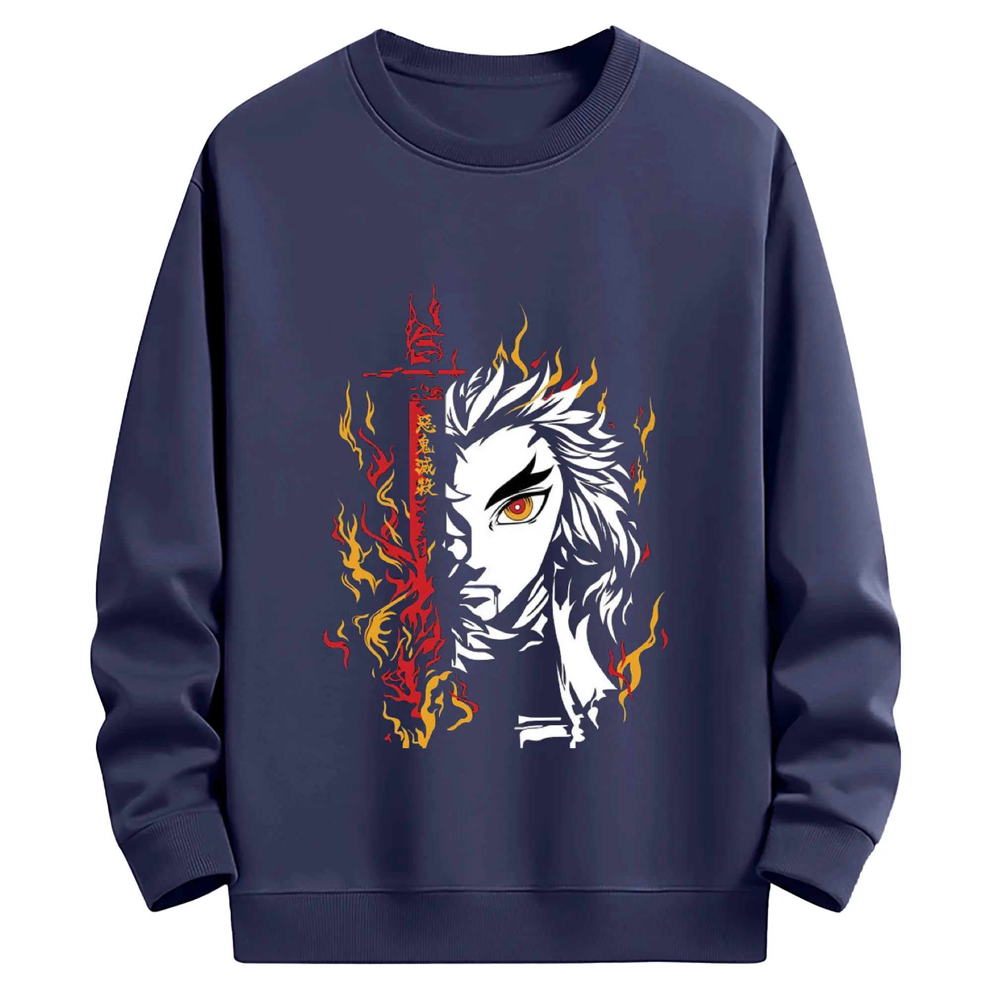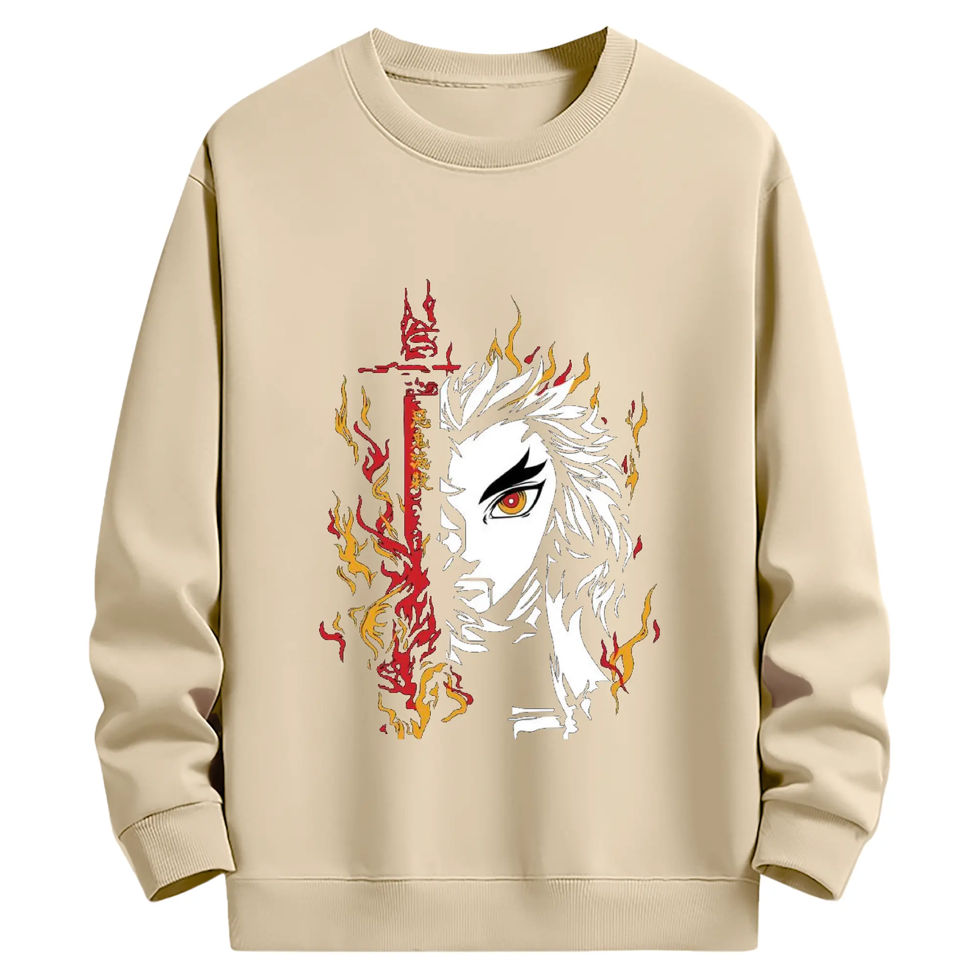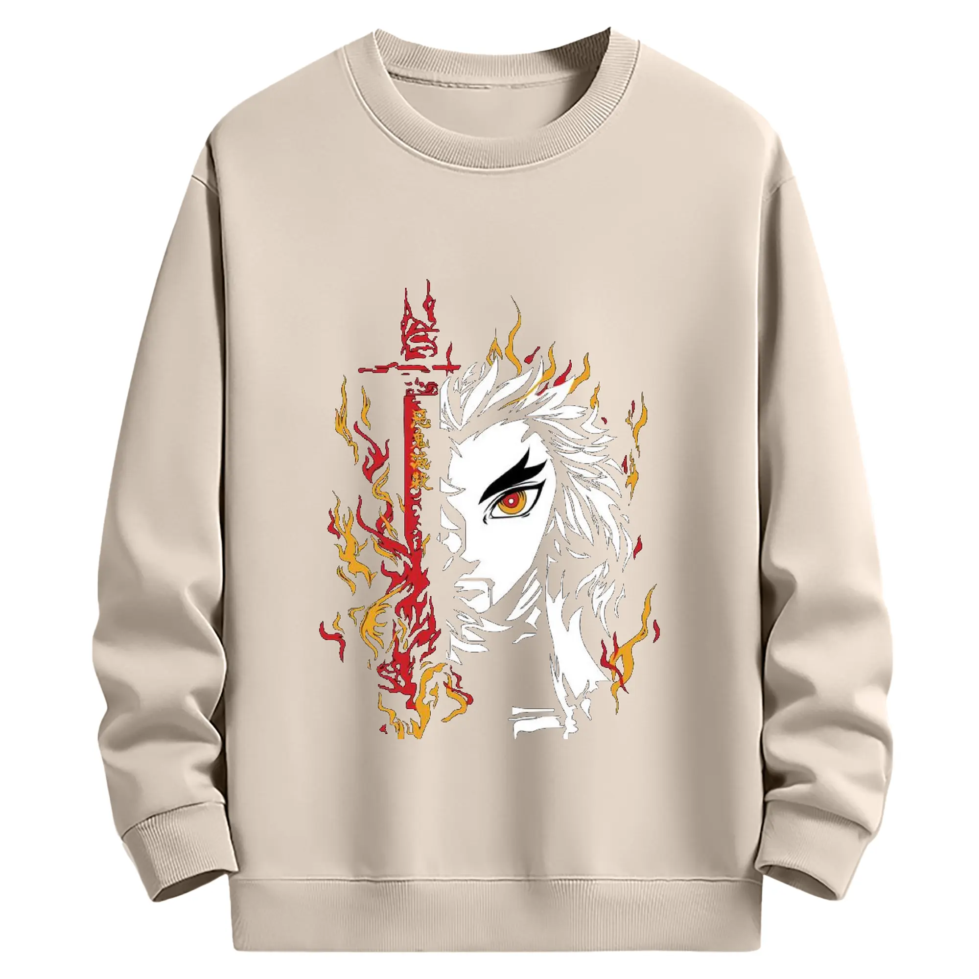 鬼滅の刃 無限列車編 煉獄杏寿郎 - 高品質 クルーネック スウェット ・ コットン59% ポリエステル41% ・ ユニセックス 長袖 トレーナー ・ カジュアル デイリー スポーツ 散歩用