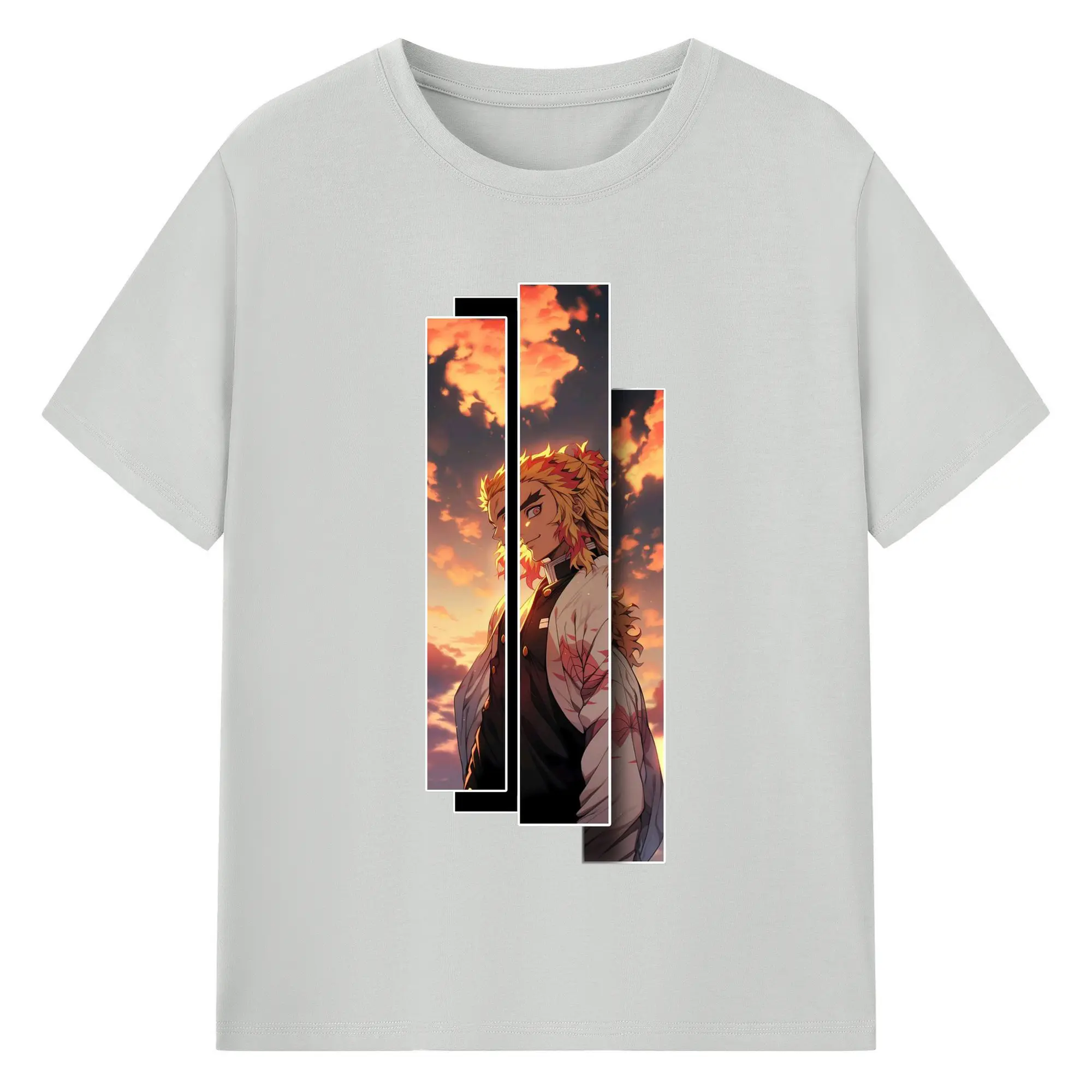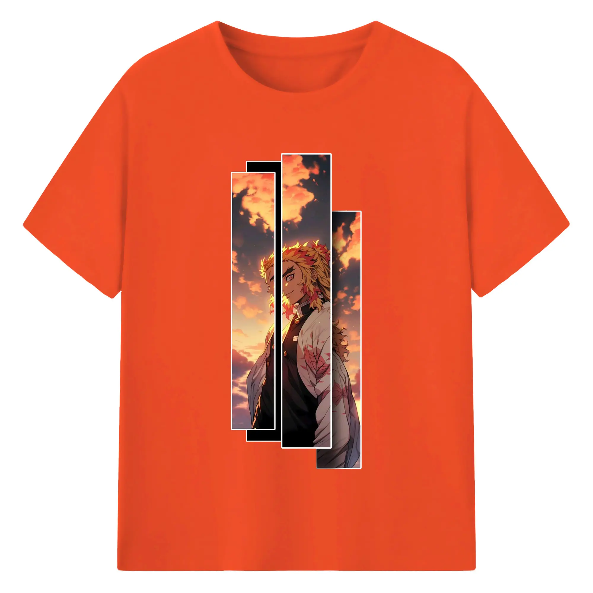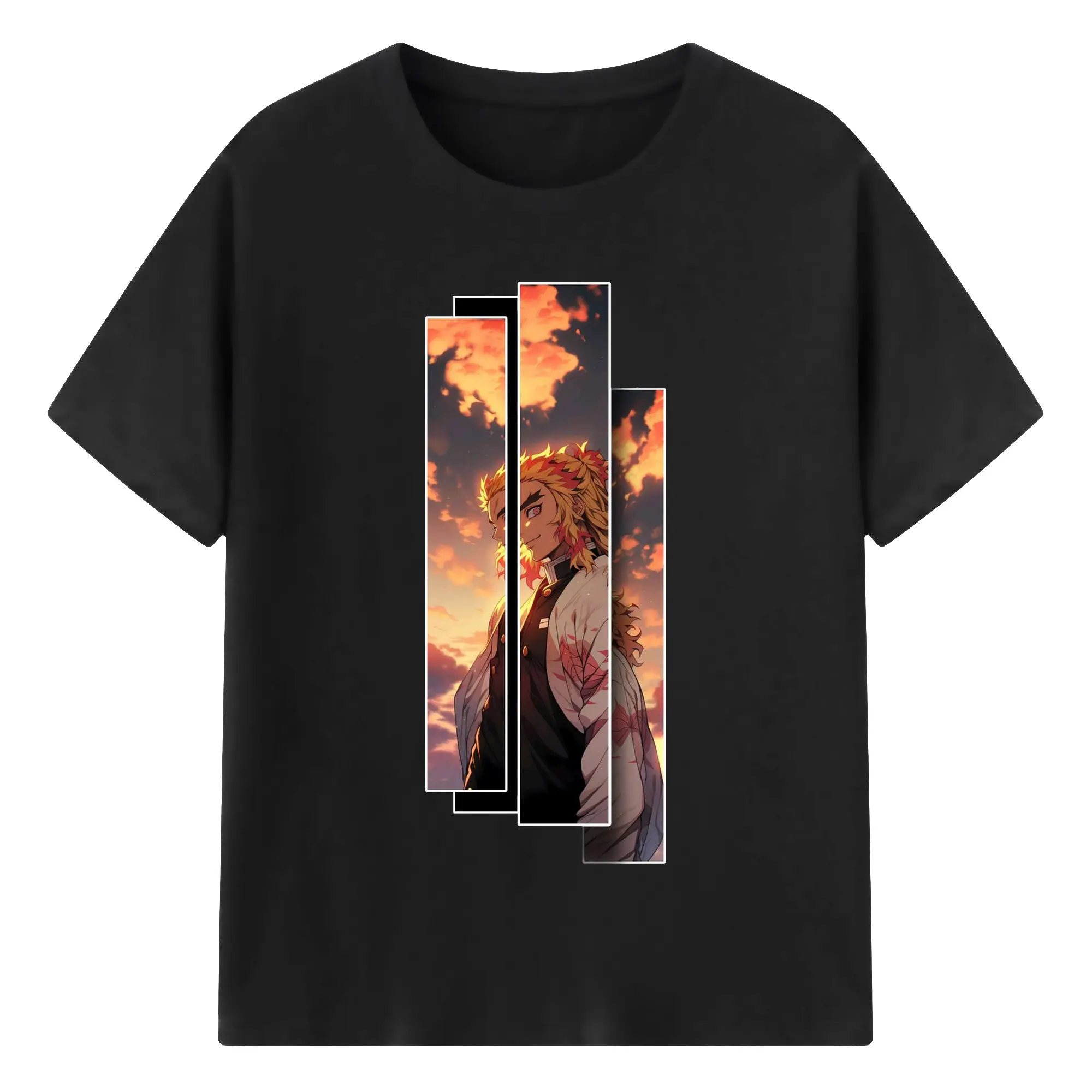 鬼滅の刃 無限列車編 煉獄杏寿郎 - 綿100% 半袖Tシャツ ・ フロントプリント ・ 快適 通気性 ・ 日常使い 散歩 スポーツ用