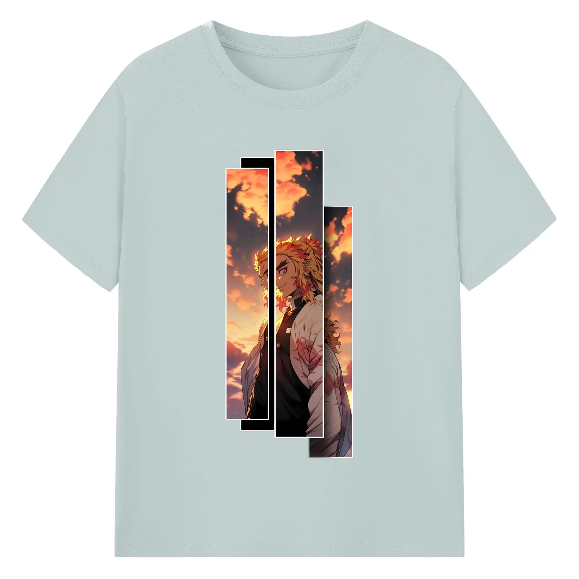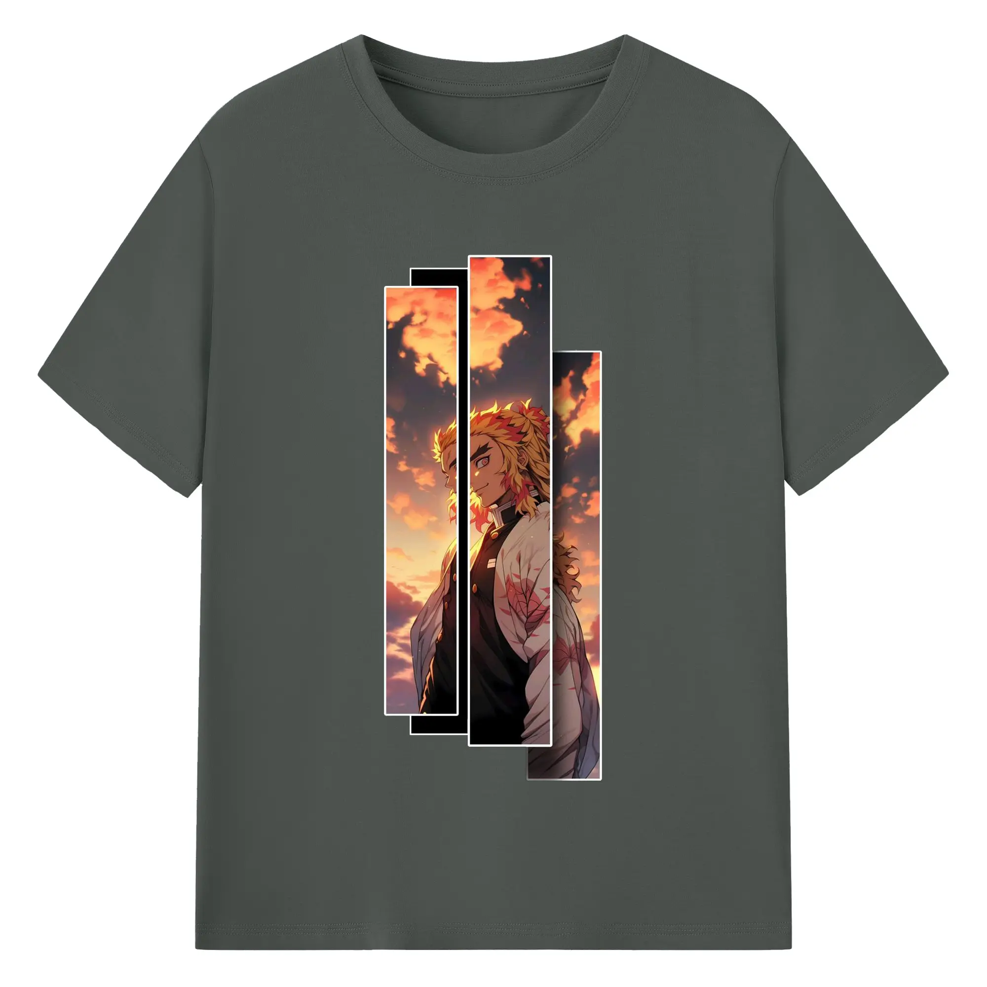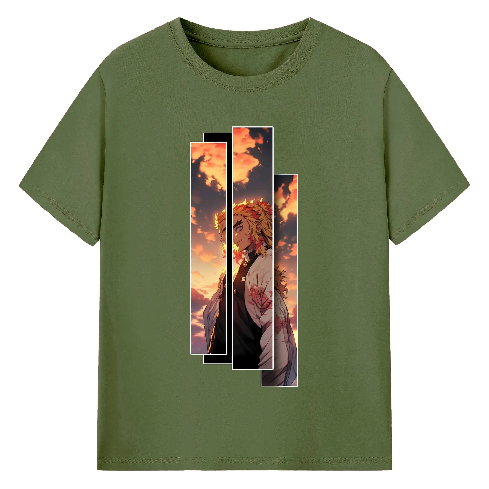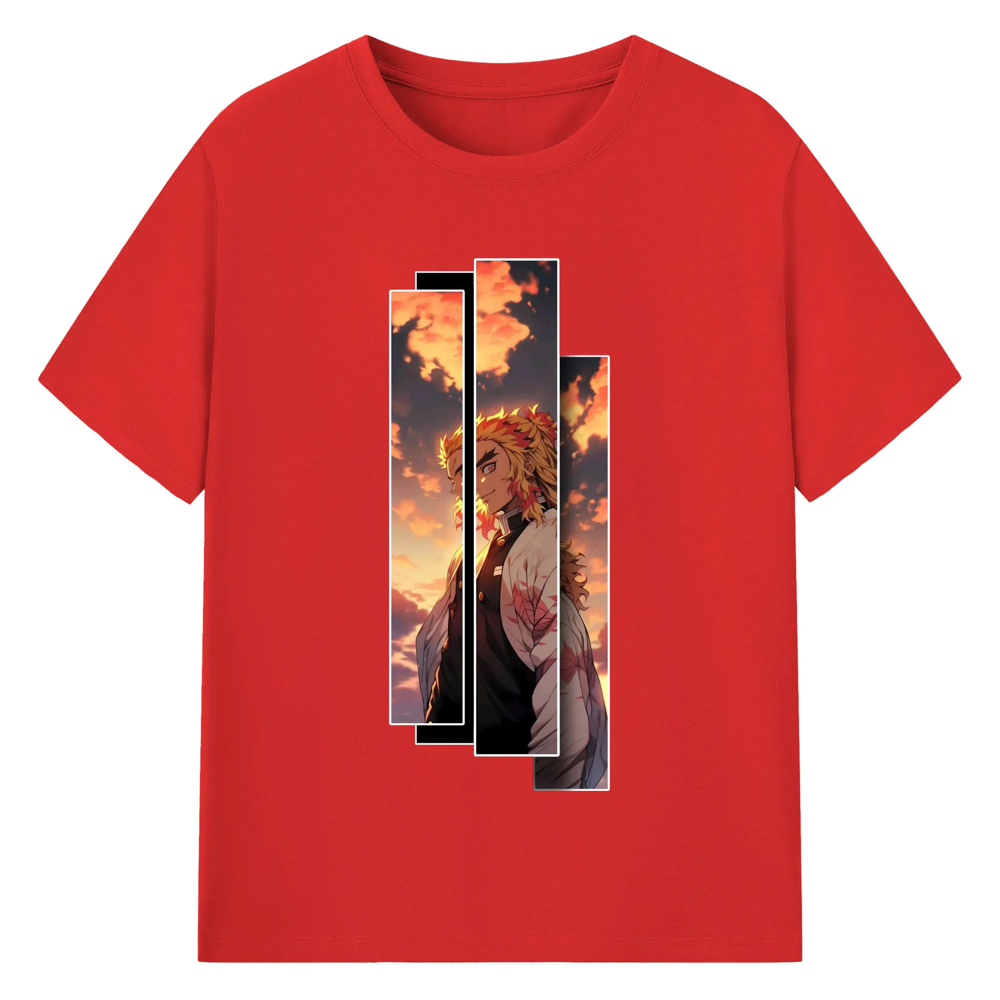 鬼滅の刃 無限列車編 煉獄杏寿郎 - 綿100% 半袖Tシャツ ・ フロントプリント ・ 快適 通気性 ・ 日常使い 散歩 スポーツ用
