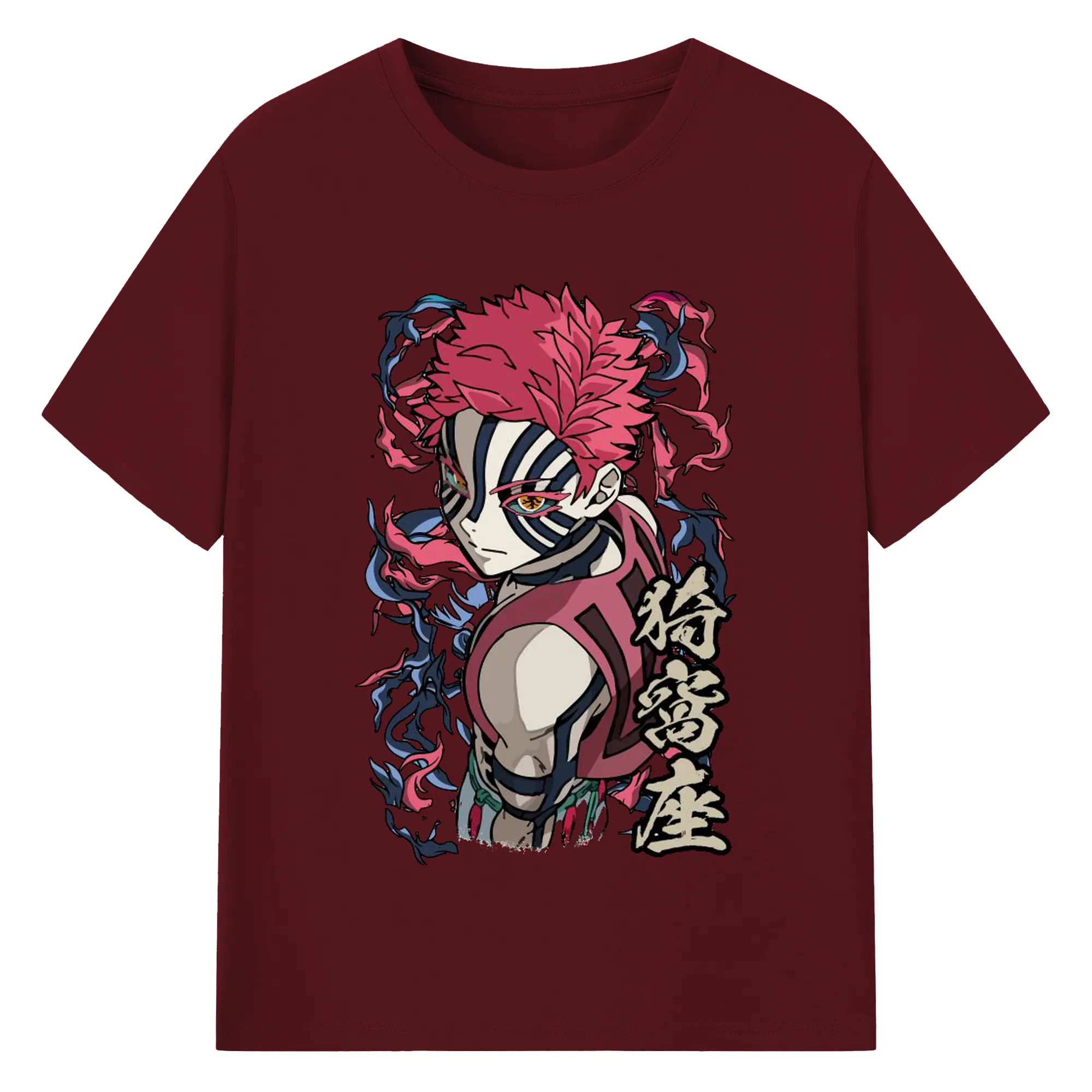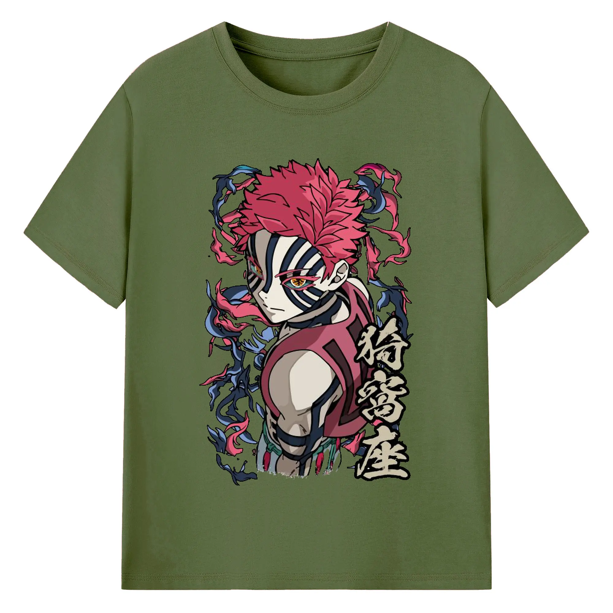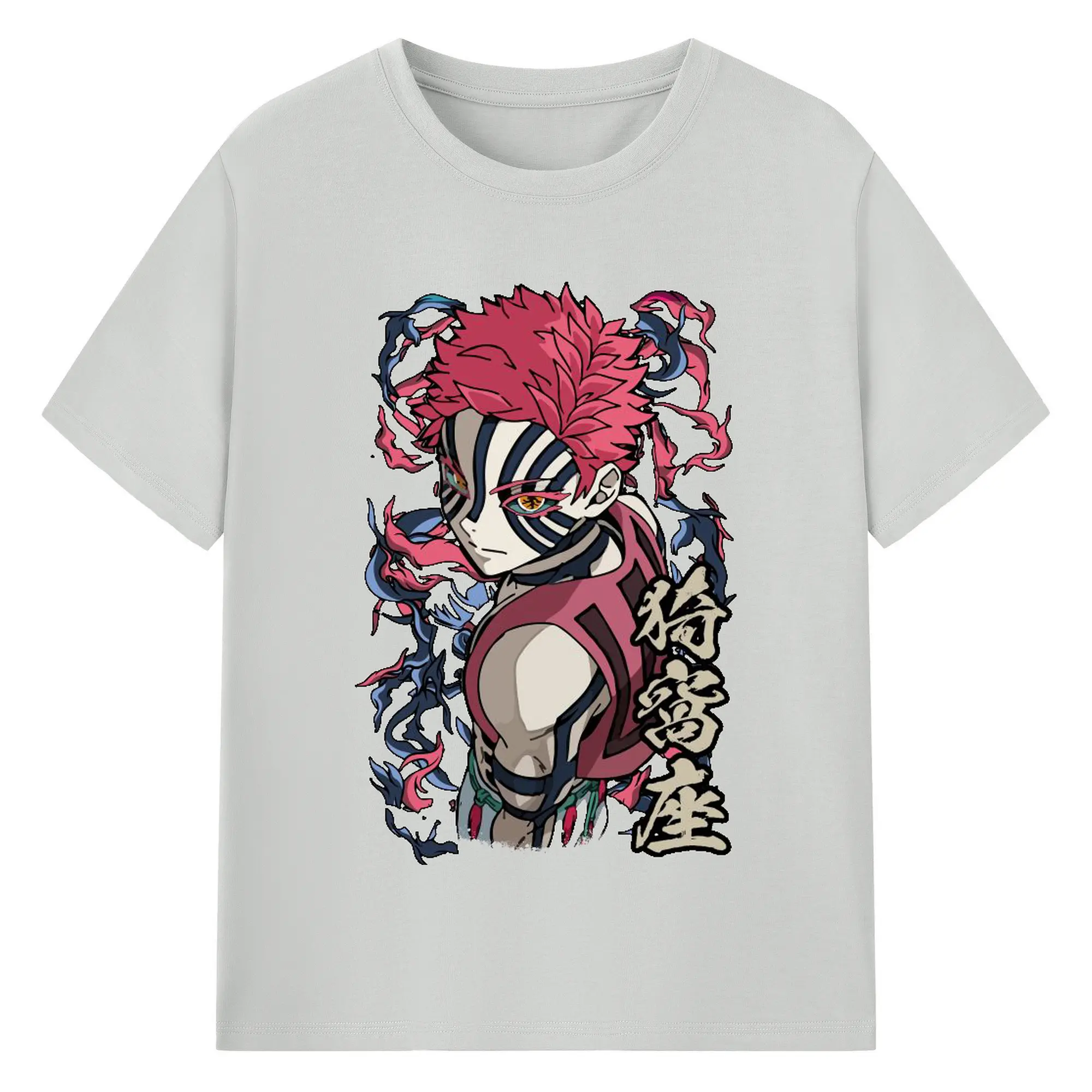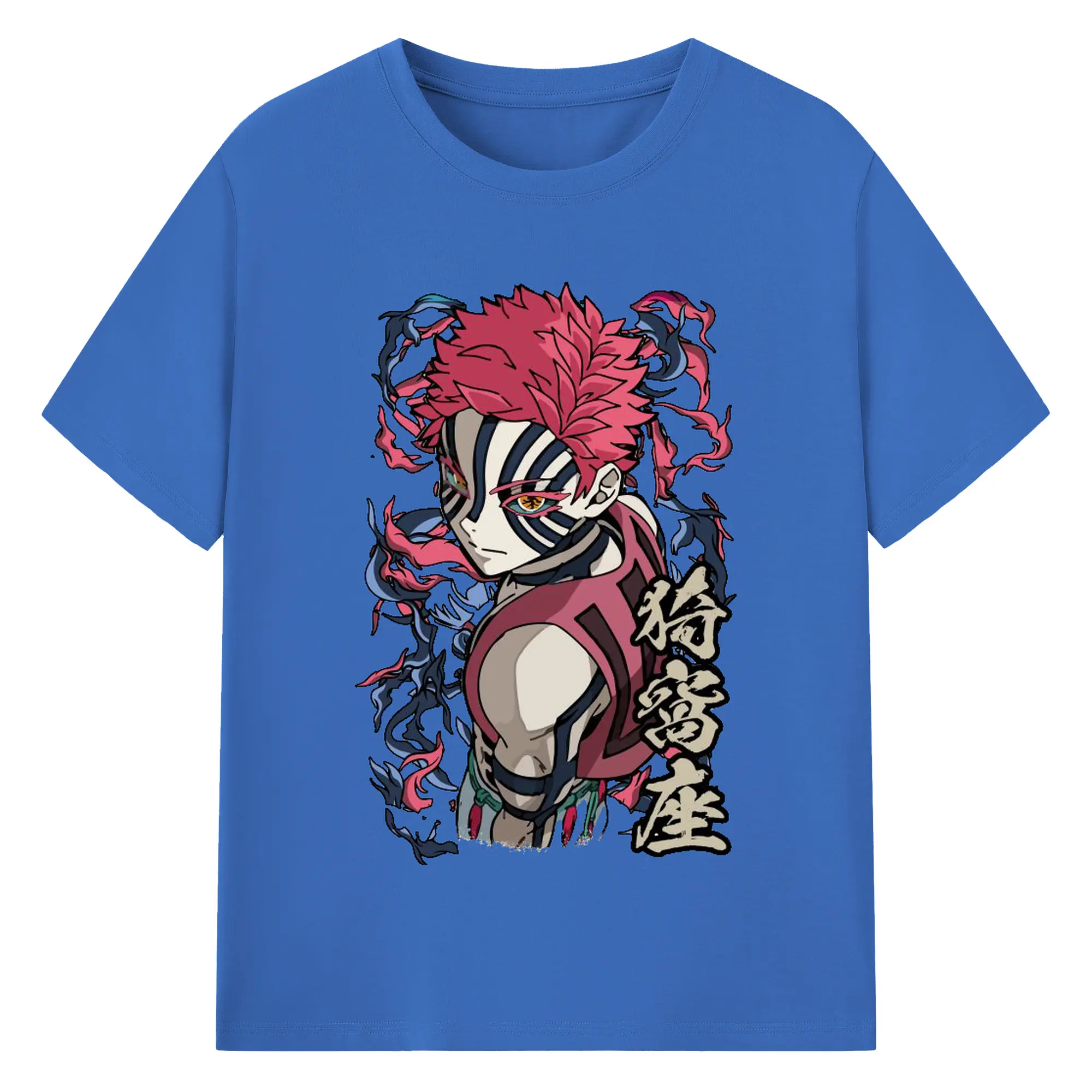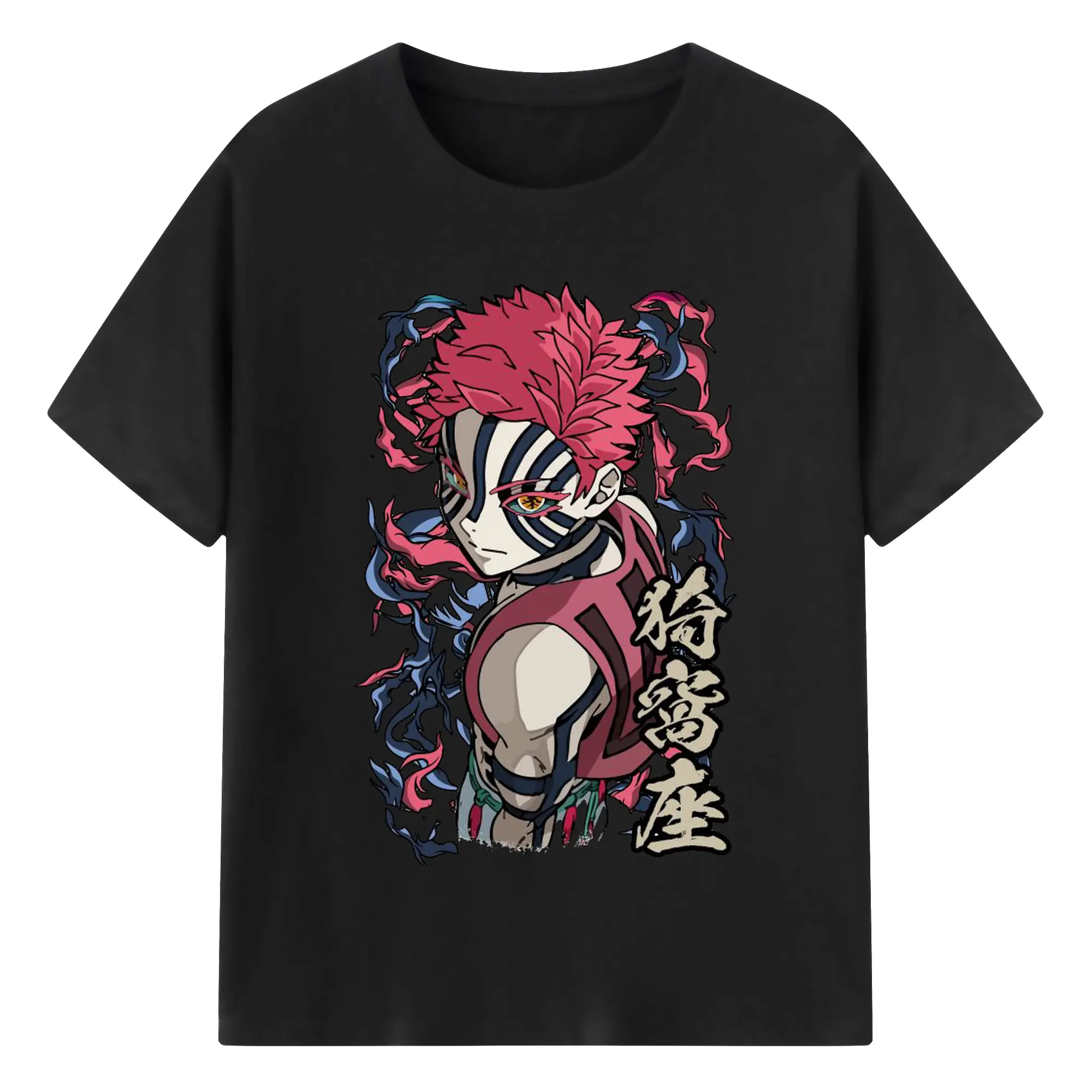 鬼滅の刃 無限列車編 十二鬼月 猗窩座 - 綿100% 半袖Tシャツ ・ フロントプリント ・ 快適 通気性 ・ 日常使い 散歩 スポーツ用
