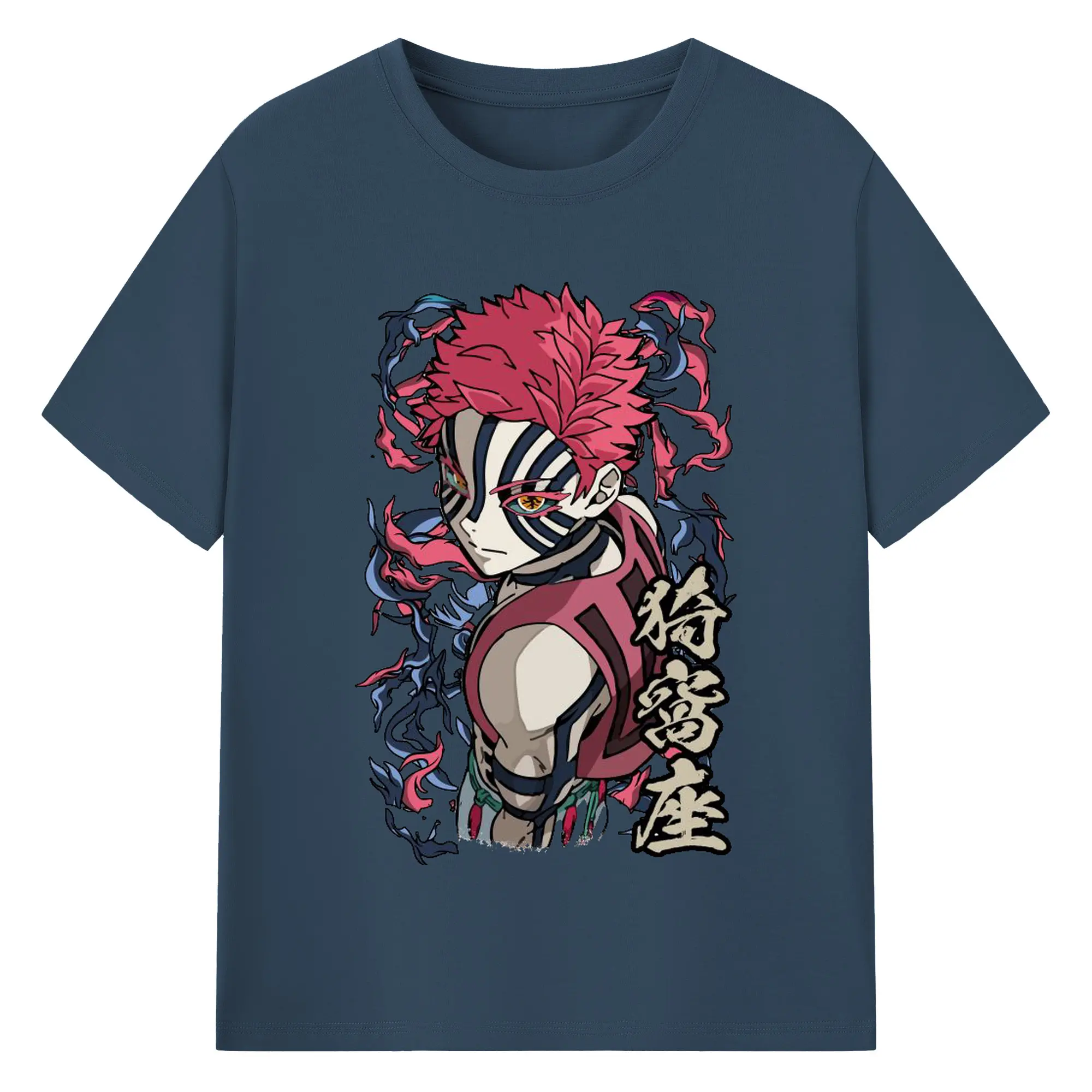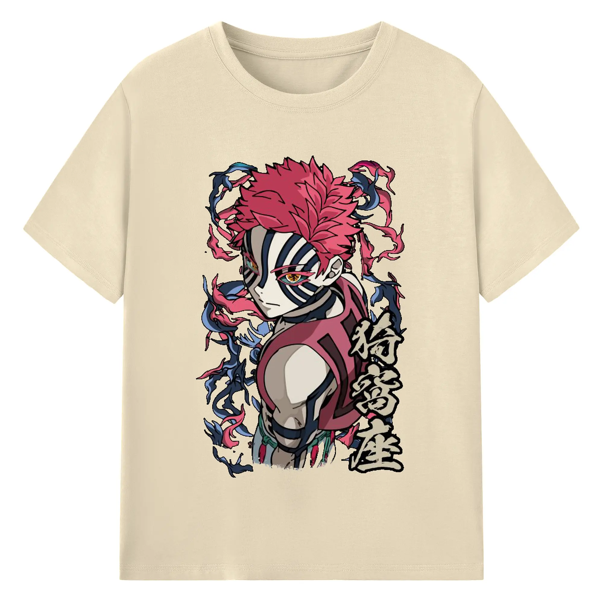 鬼滅の刃 無限列車編 十二鬼月 猗窩座 - 綿100% ヴィンテージ風 半袖Tシャツ ・ フロントプリント ・ 柔らか肌触り ・ 通気性 快適 ・ スポーツ カジュアル 外出用