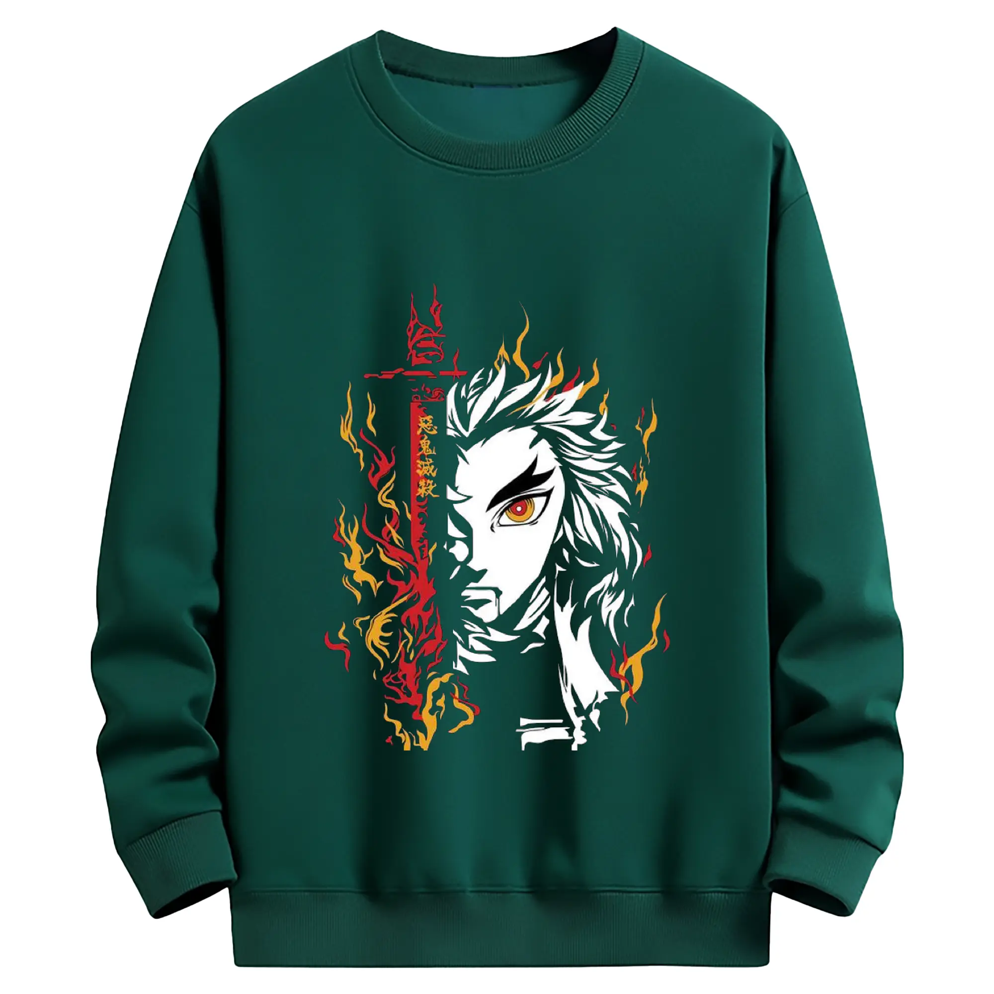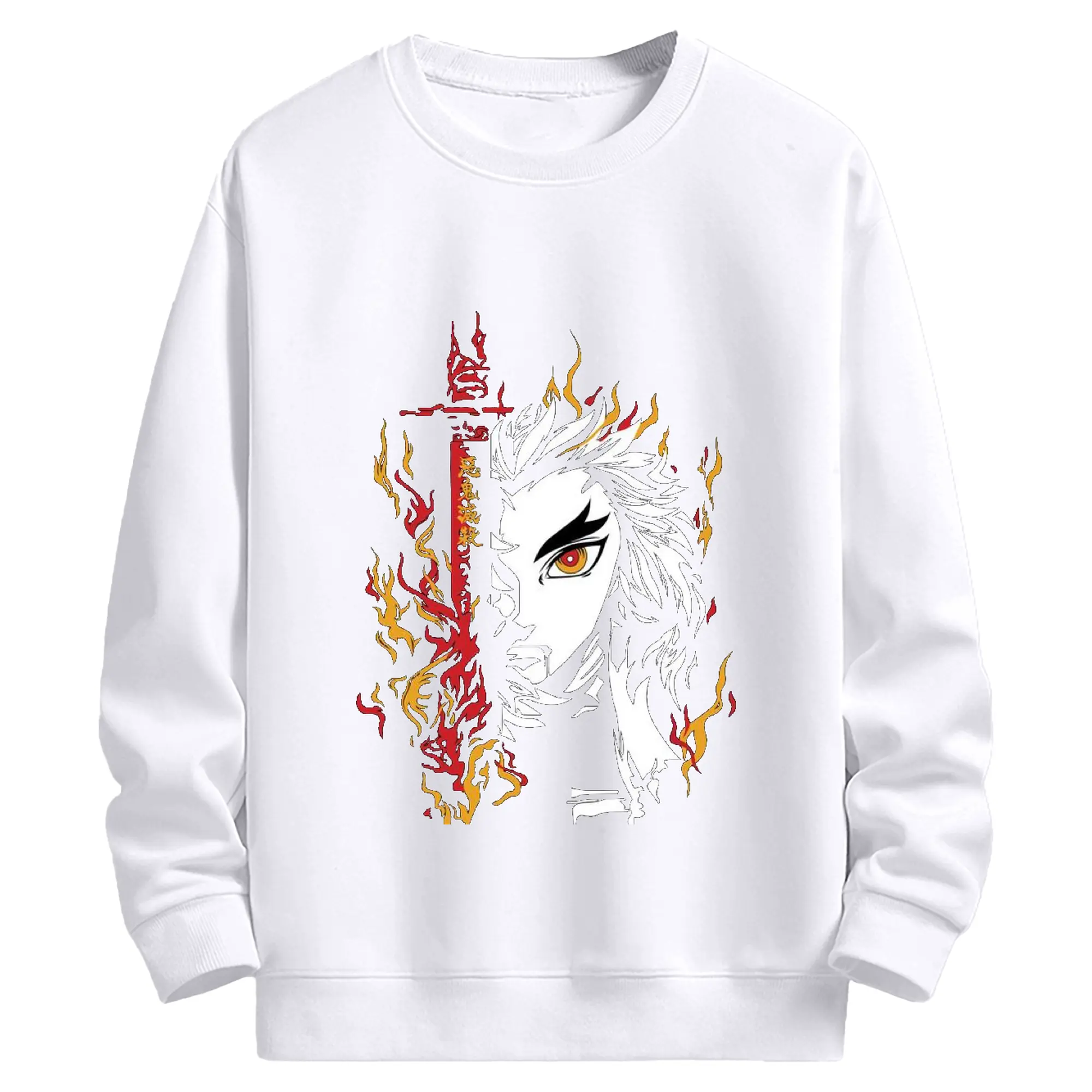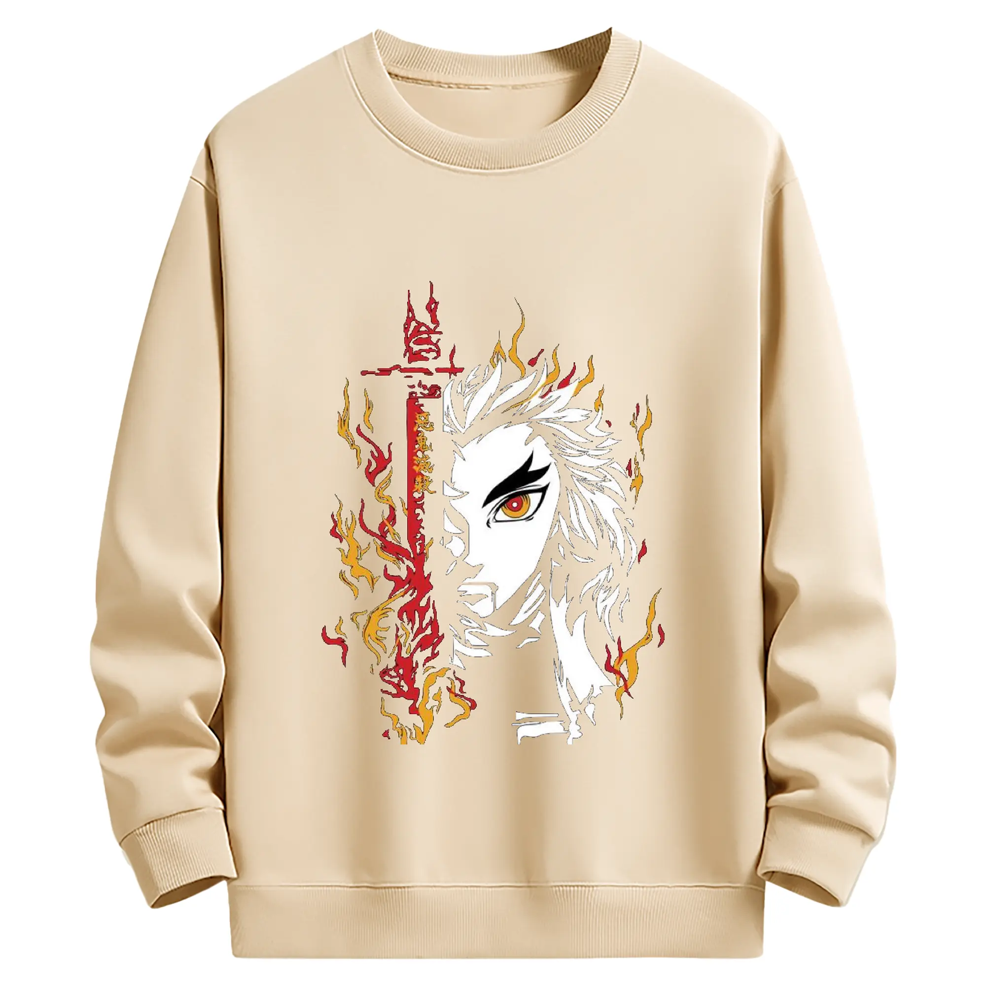 鬼滅の刃 無限列車編 煉獄杏寿郎 - 高品質 クルーネック スウェット ・ コットン59% ポリエステル41% ・ ユニセックス 長袖 トレーナー ・ カジュアル デイリー スポーツ 散歩用
