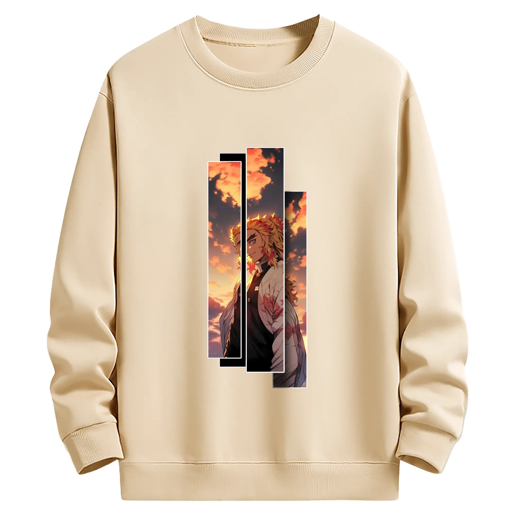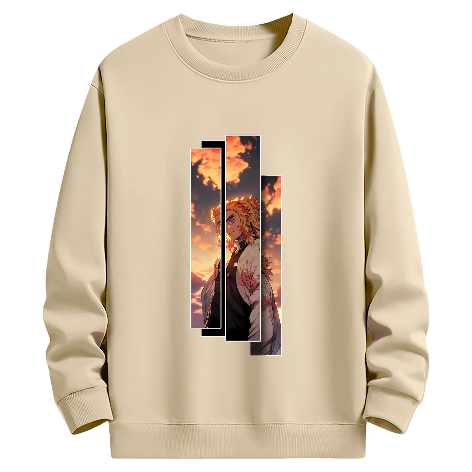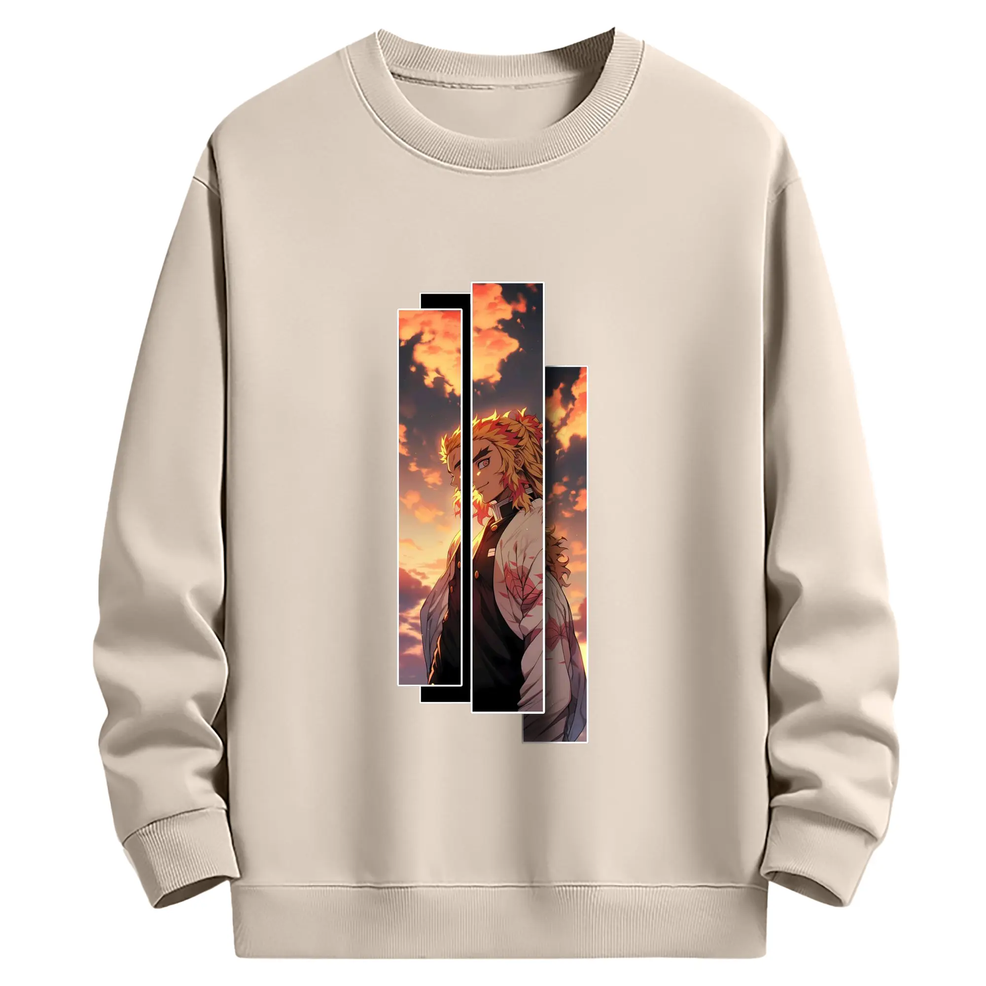 鬼滅の刃 無限列車編 煉獄杏寿郎 - 高品質 クルーネック スウェット ・ コットン59% ポリエステル41% ・ ユニセックス 長袖 トレーナー ・ カジュアル デイリー スポーツ 散歩用