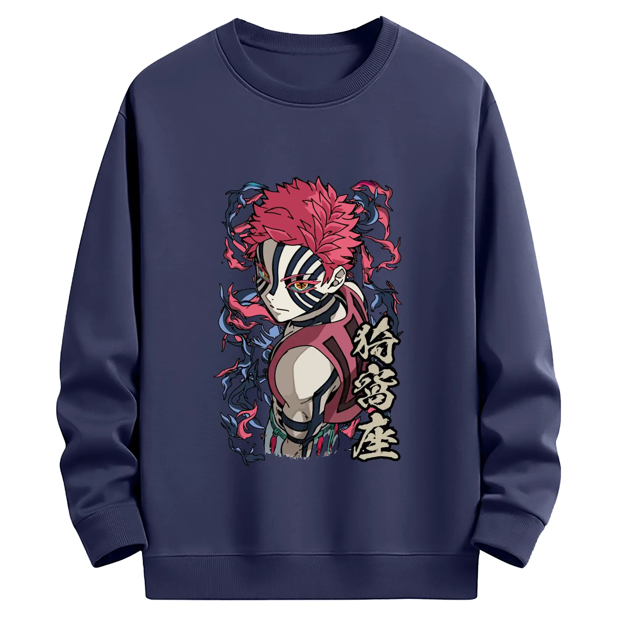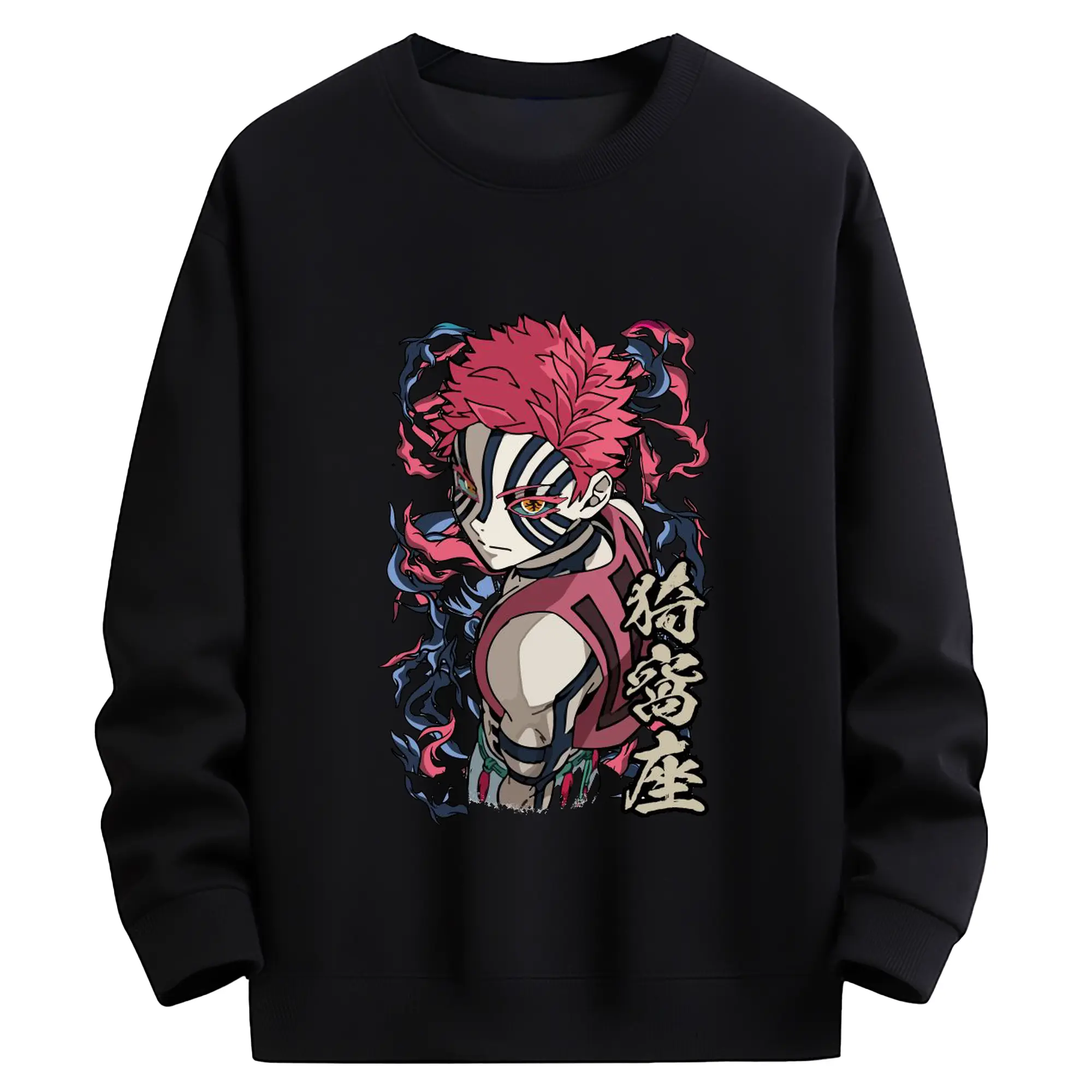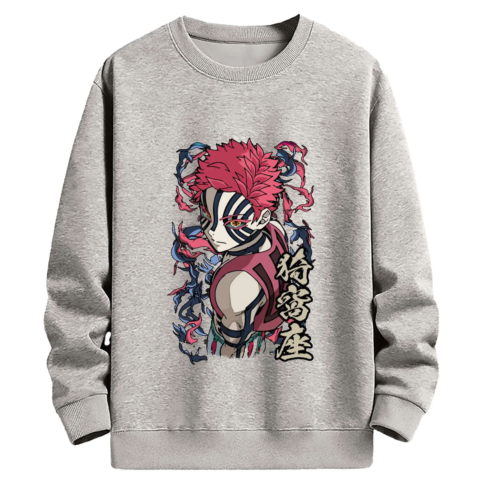 鬼滅の刃 無限列車編 十二鬼月 猗窩座 - 高品質 クルーネック スウェット ・ コットン59% ポリエステル41% ・ ユニセックス 長袖 トレーナー ・ カジュアル デイリー スポーツ 散歩用