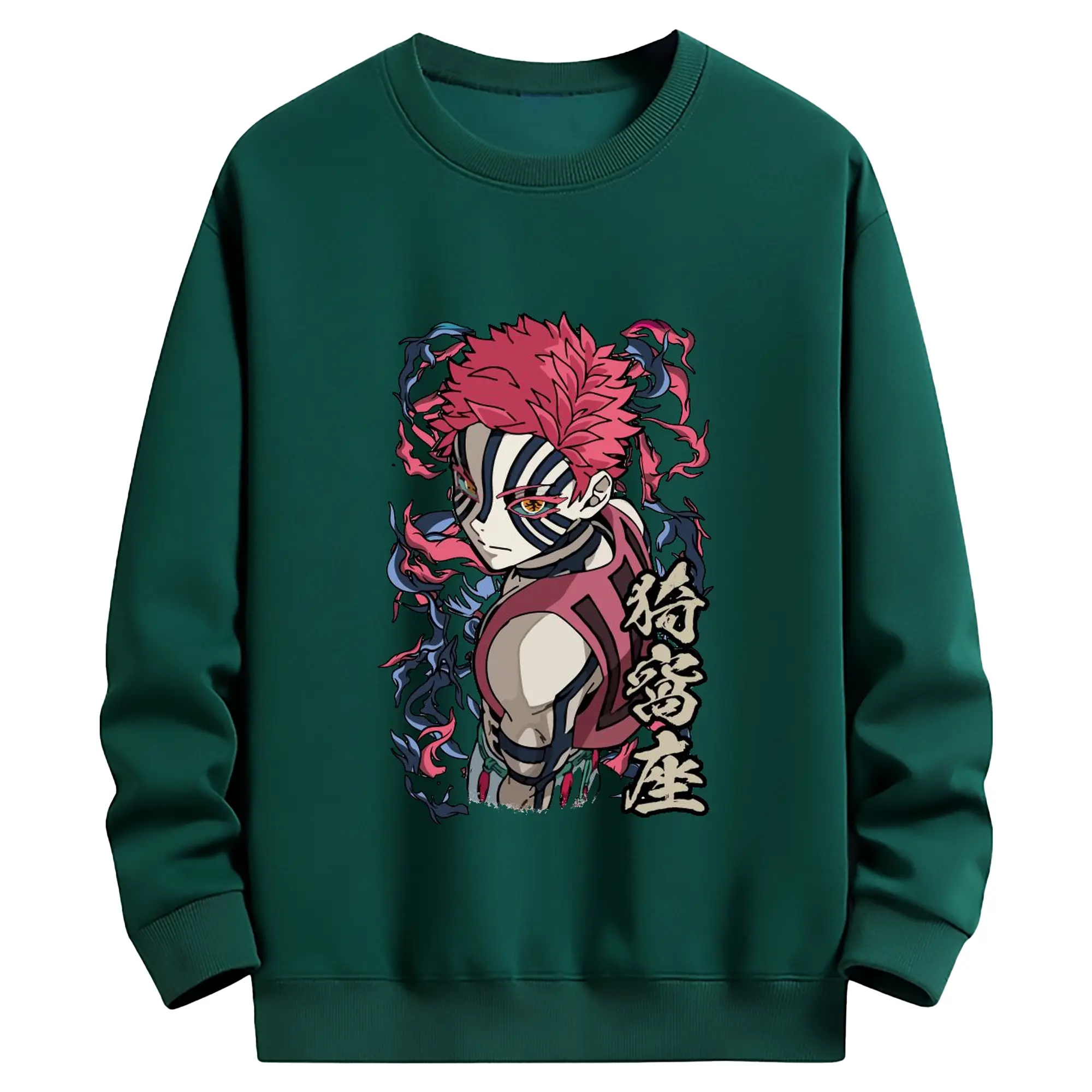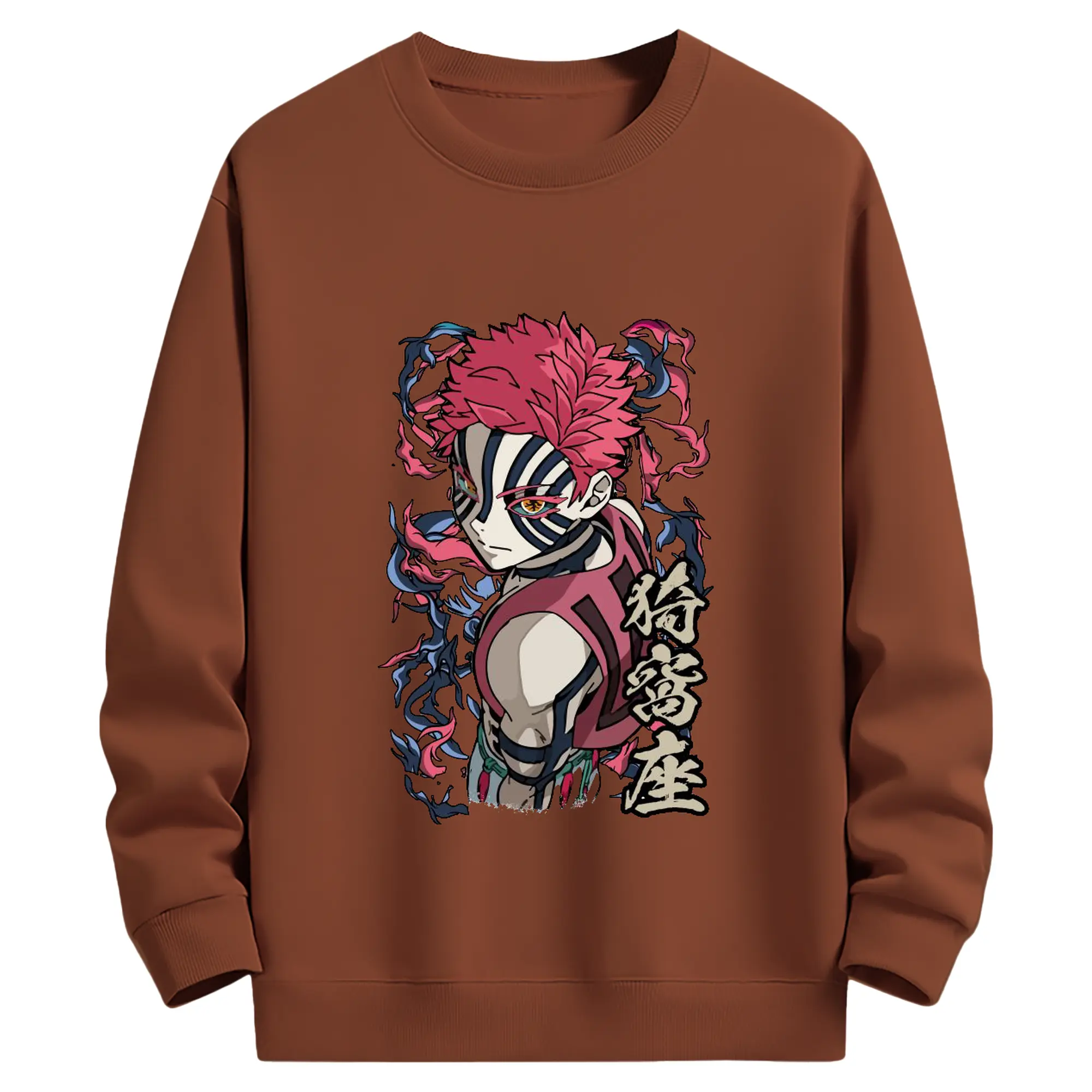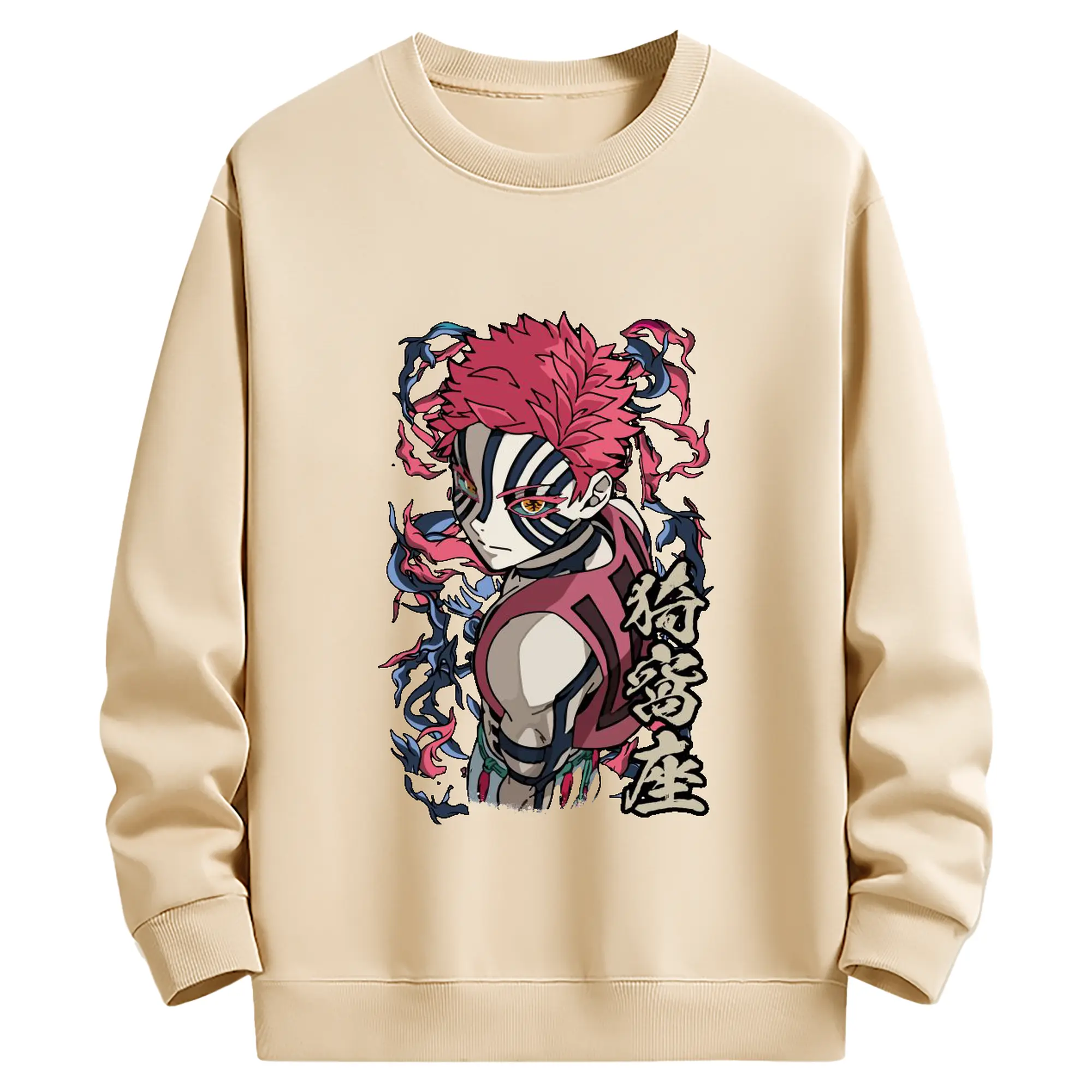 鬼滅の刃 無限列車編 十二鬼月 猗窩座 - 高品質 クルーネック スウェット ・ コットン59% ポリエステル41% ・ ユニセックス 長袖 トレーナー ・ カジュアル デイリー スポーツ 散歩用