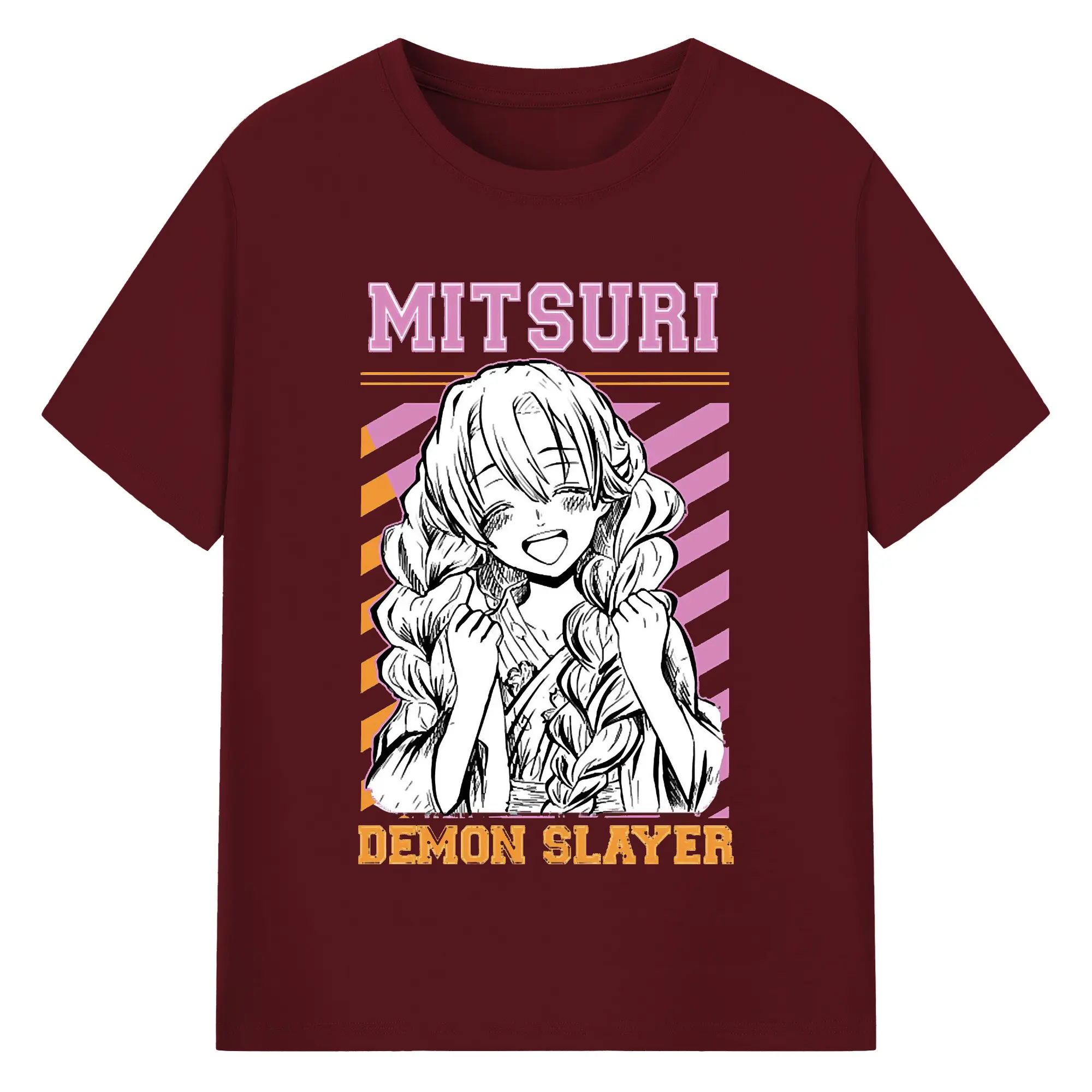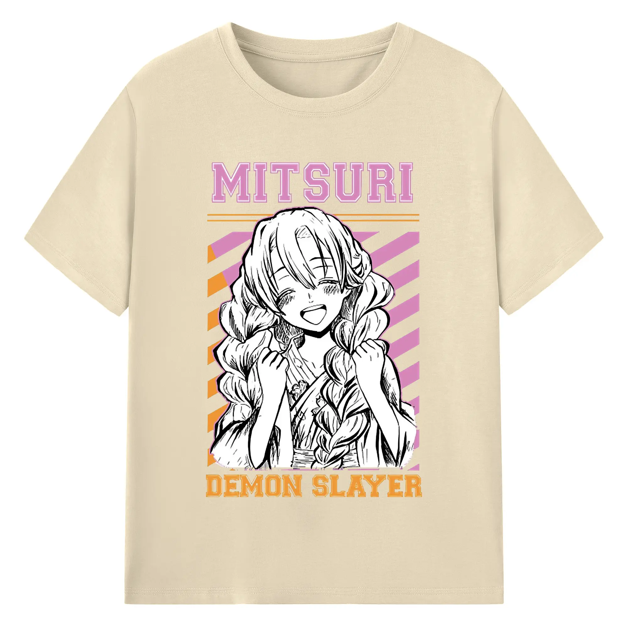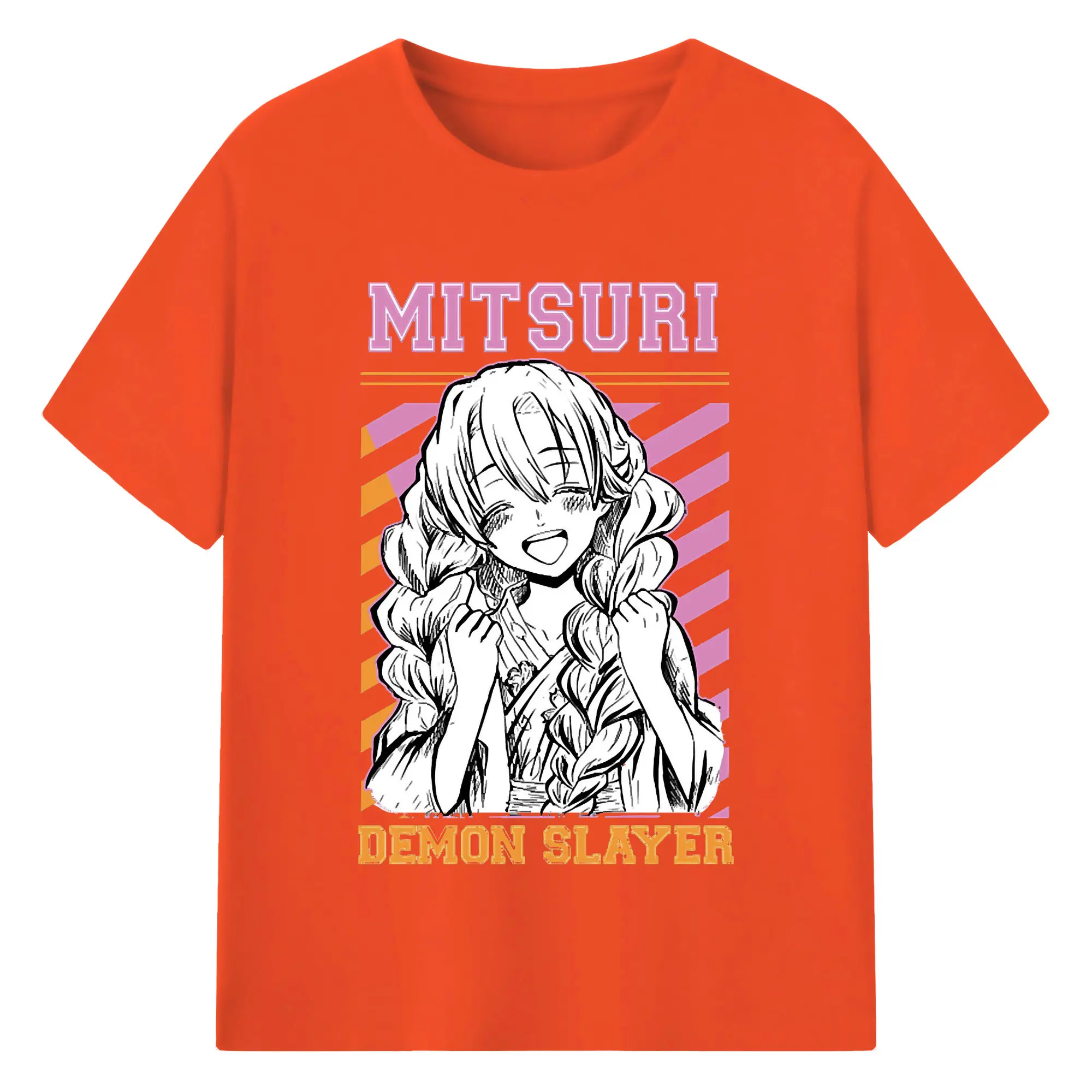 鬼滅の刃 甘露寺蜜璃 - 綿100% 半袖Tシャツ ・ フロントプリント ・ 快適 通気性 ・ 日常使い 散歩 スポーツ用