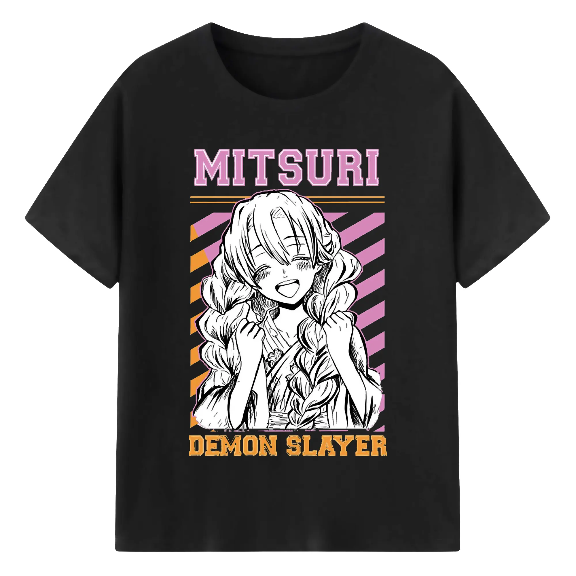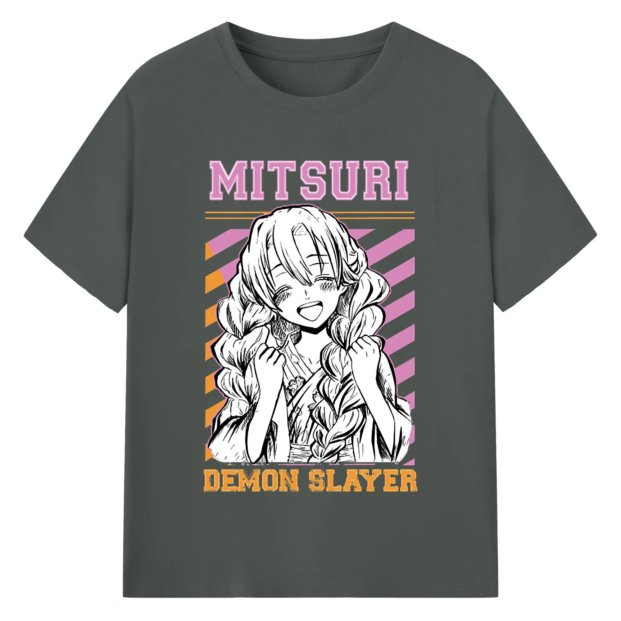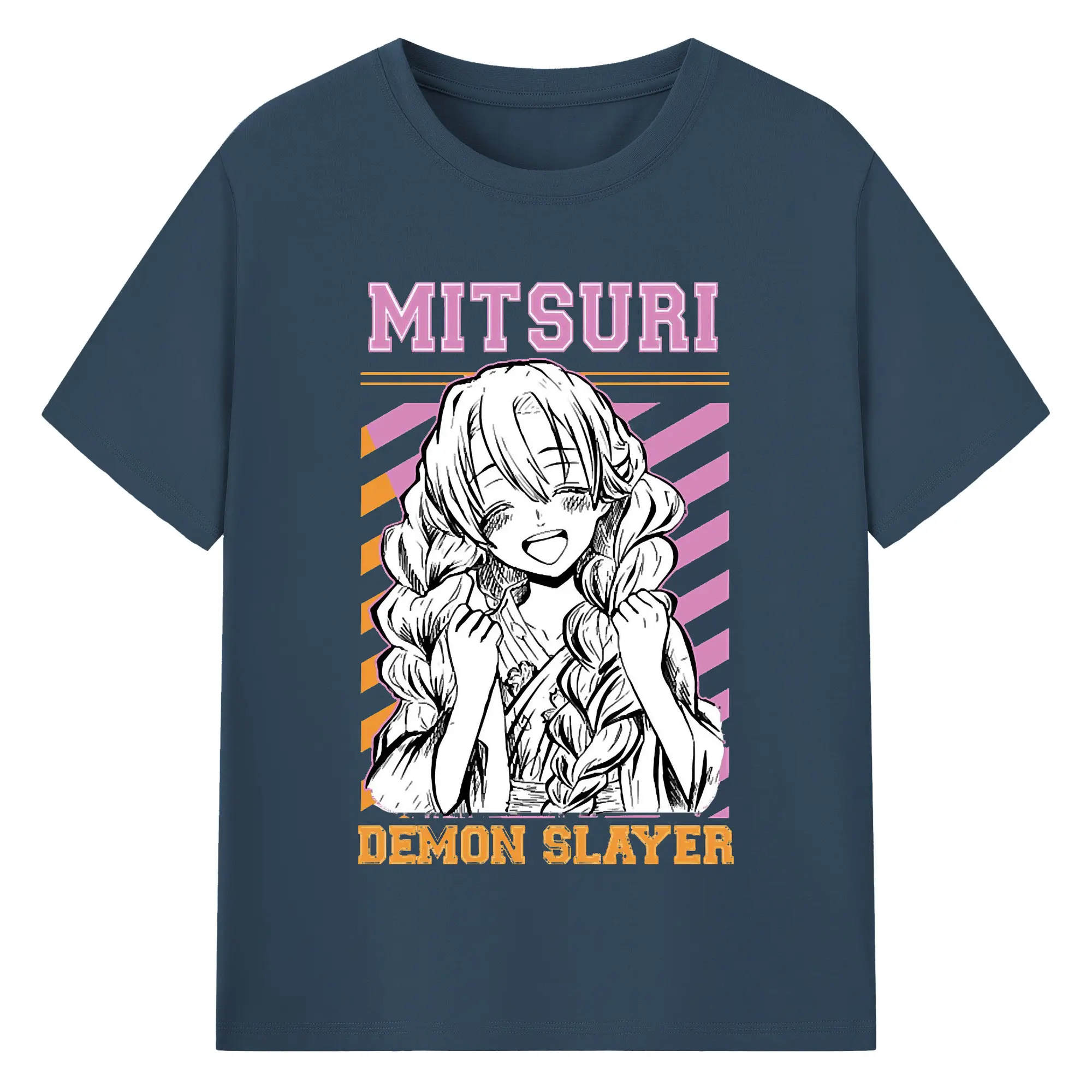 鬼滅の刃 甘露寺蜜璃 - 綿100% 半袖Tシャツ ・ フロントプリント ・ 快適 通気性 ・ 日常使い 散歩 スポーツ用