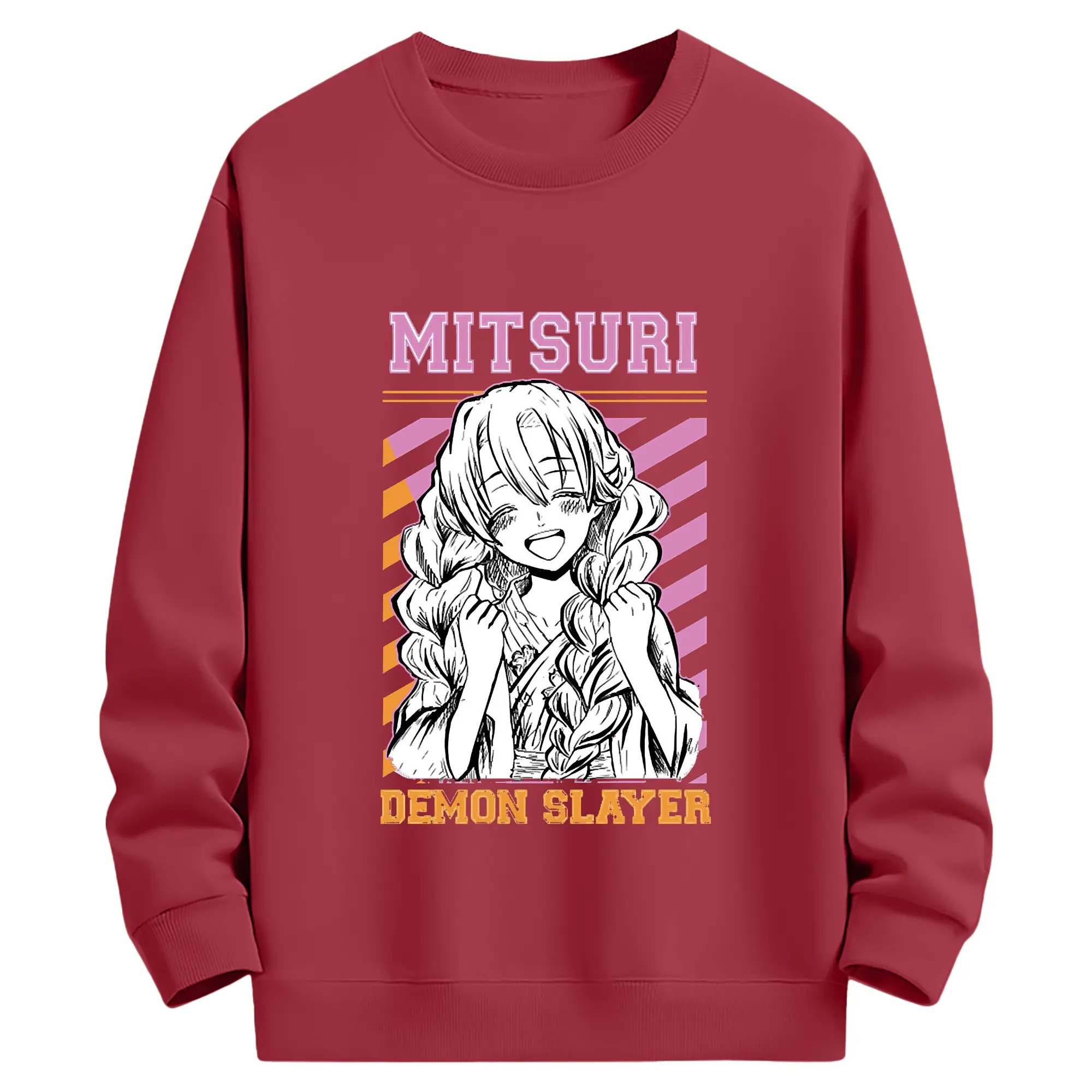 鬼滅の刃 甘露寺蜜璃 - 高品質 クルーネック スウェット ・ コットン59% ポリエステル41% ・ ユニセックス 長袖 トレーナー ・ カジュアル デイリー スポーツ 散歩用
