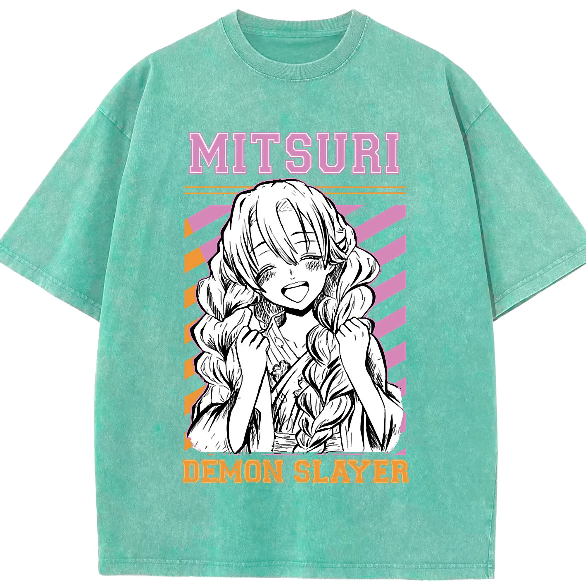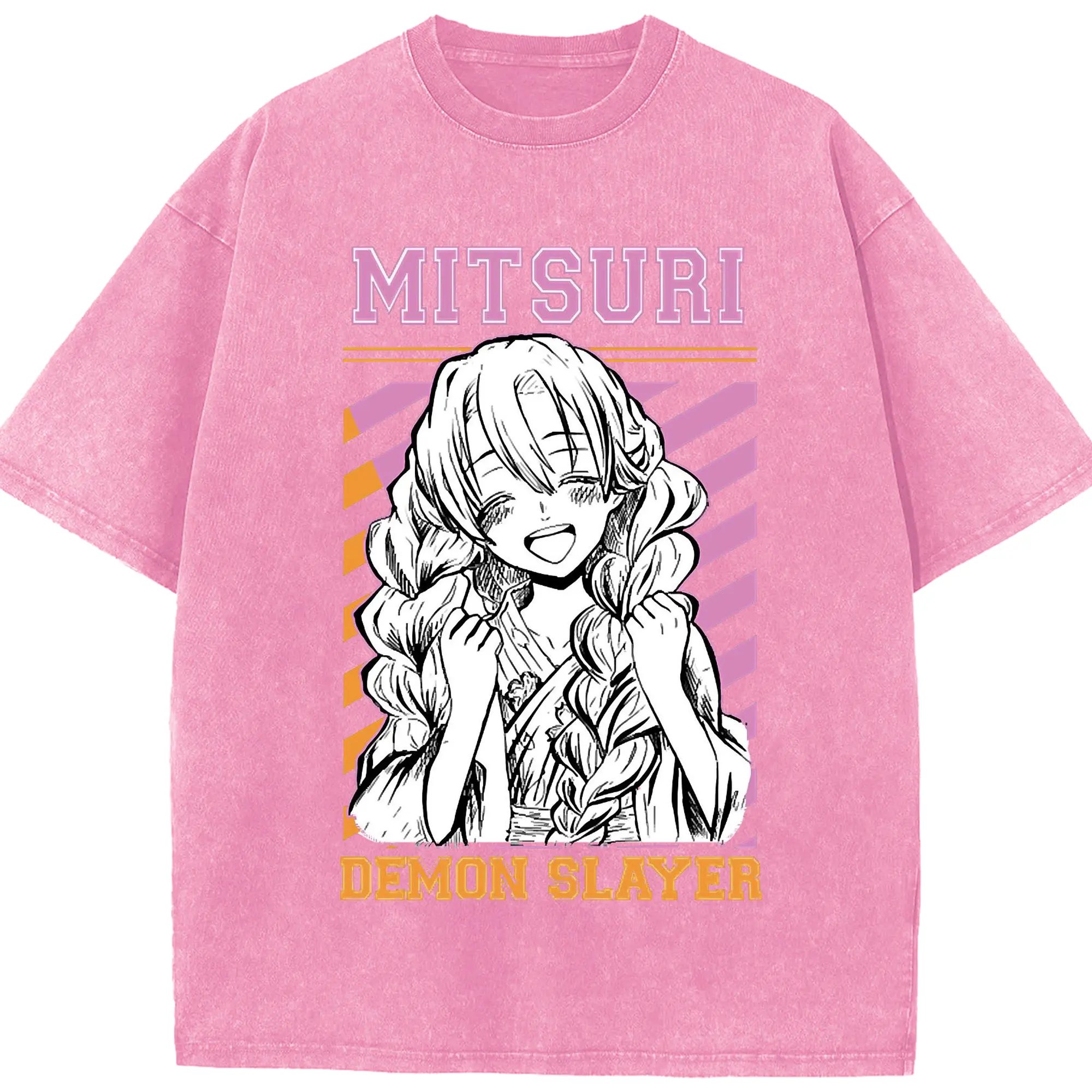 鬼滅の刃 甘露寺蜜璃 - 綿100% ヴィンテージ風 半袖Tシャツ ・ フロントプリント ・ 柔らか肌触り ・ 通気性 快適 ・ スポーツ カジュアル 外出用